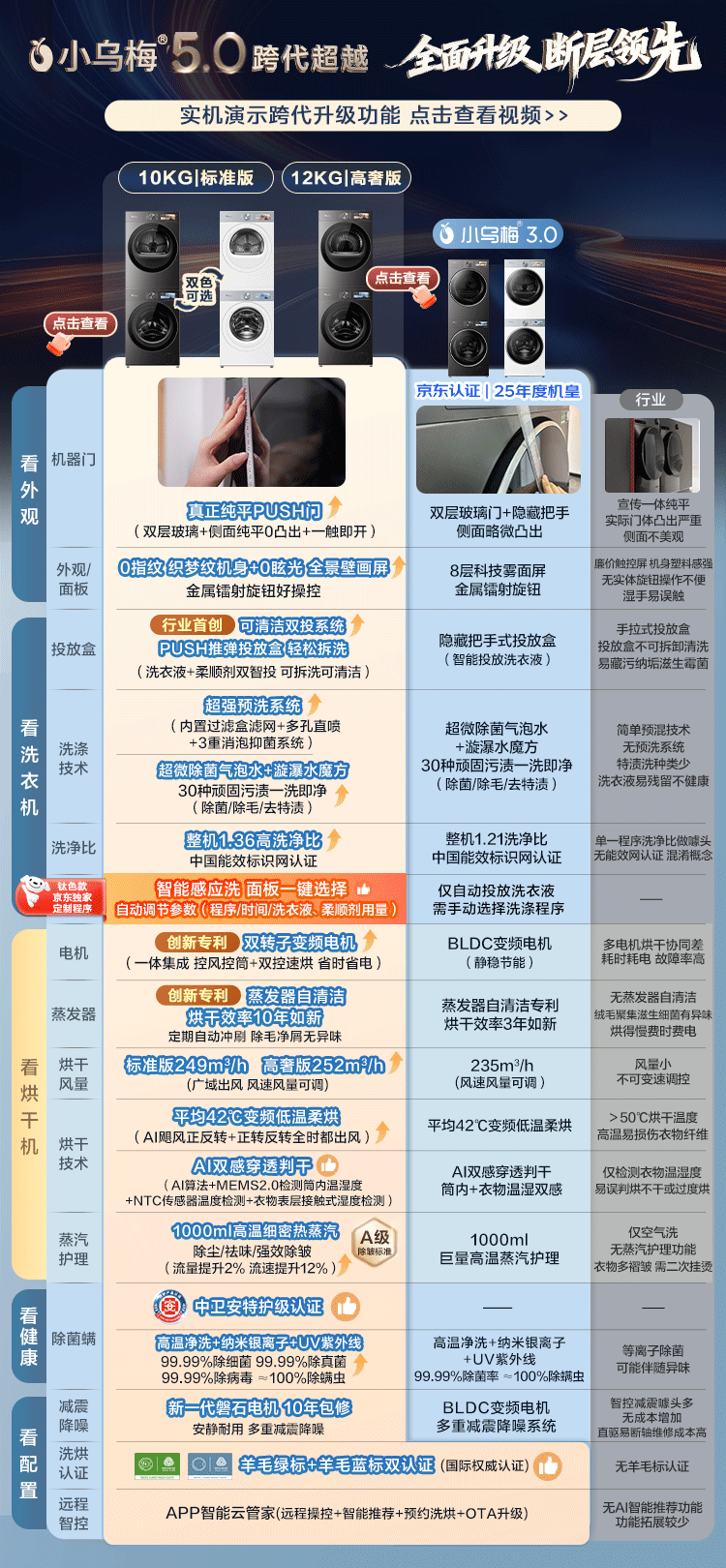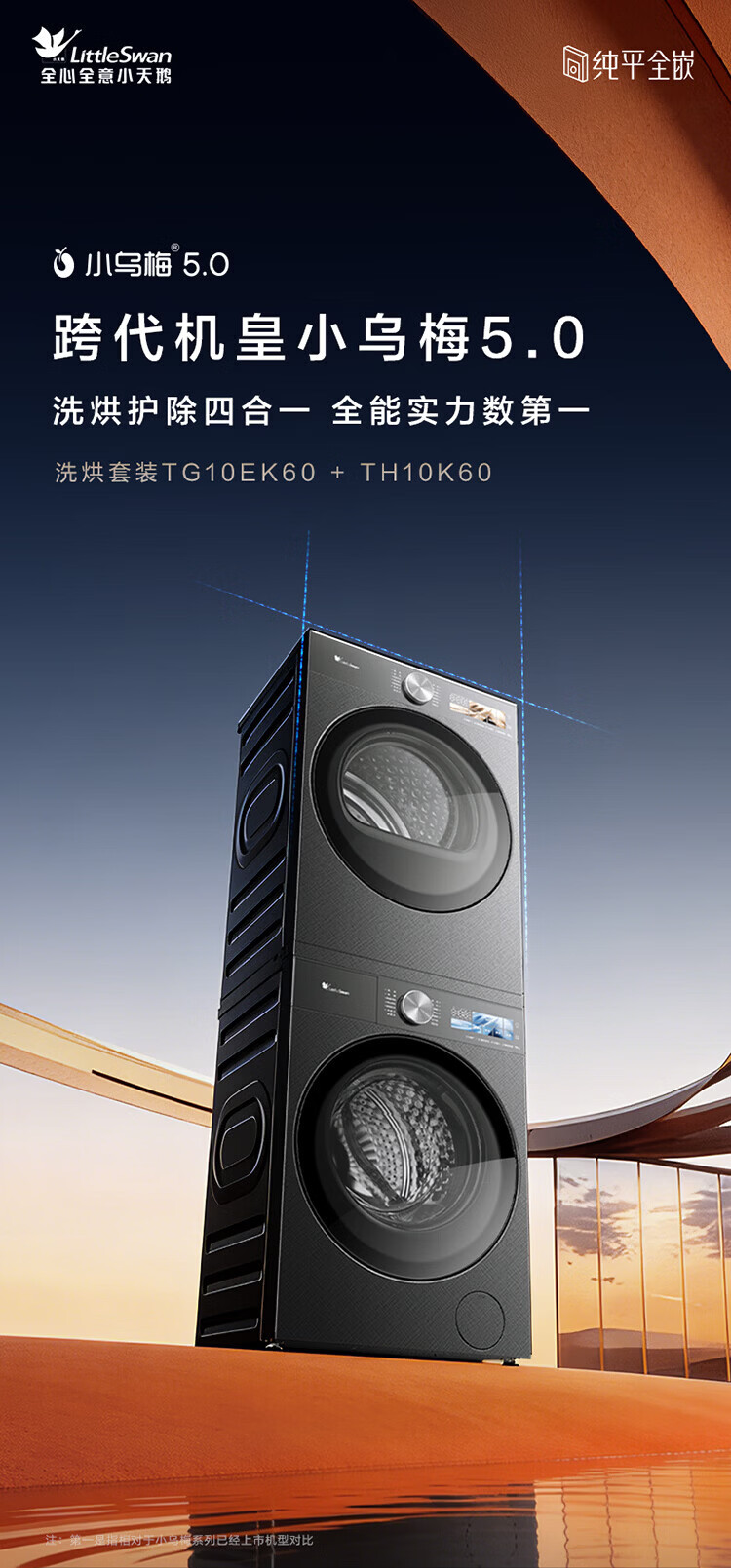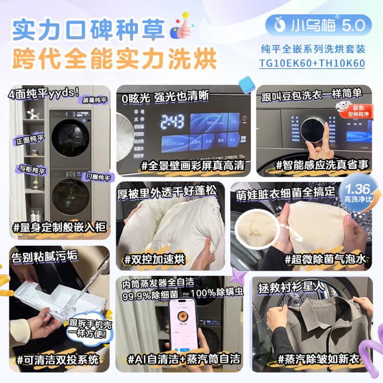 小天鹅(LittleSwan)小乌梅5.0 AWE同款跨代机皇洗烘套装10KG滚筒洗衣机+10KG热泵烘干机大容量纯平全嵌超微气泡水魔方1.36洗净比 TG10EK60+TH10K60