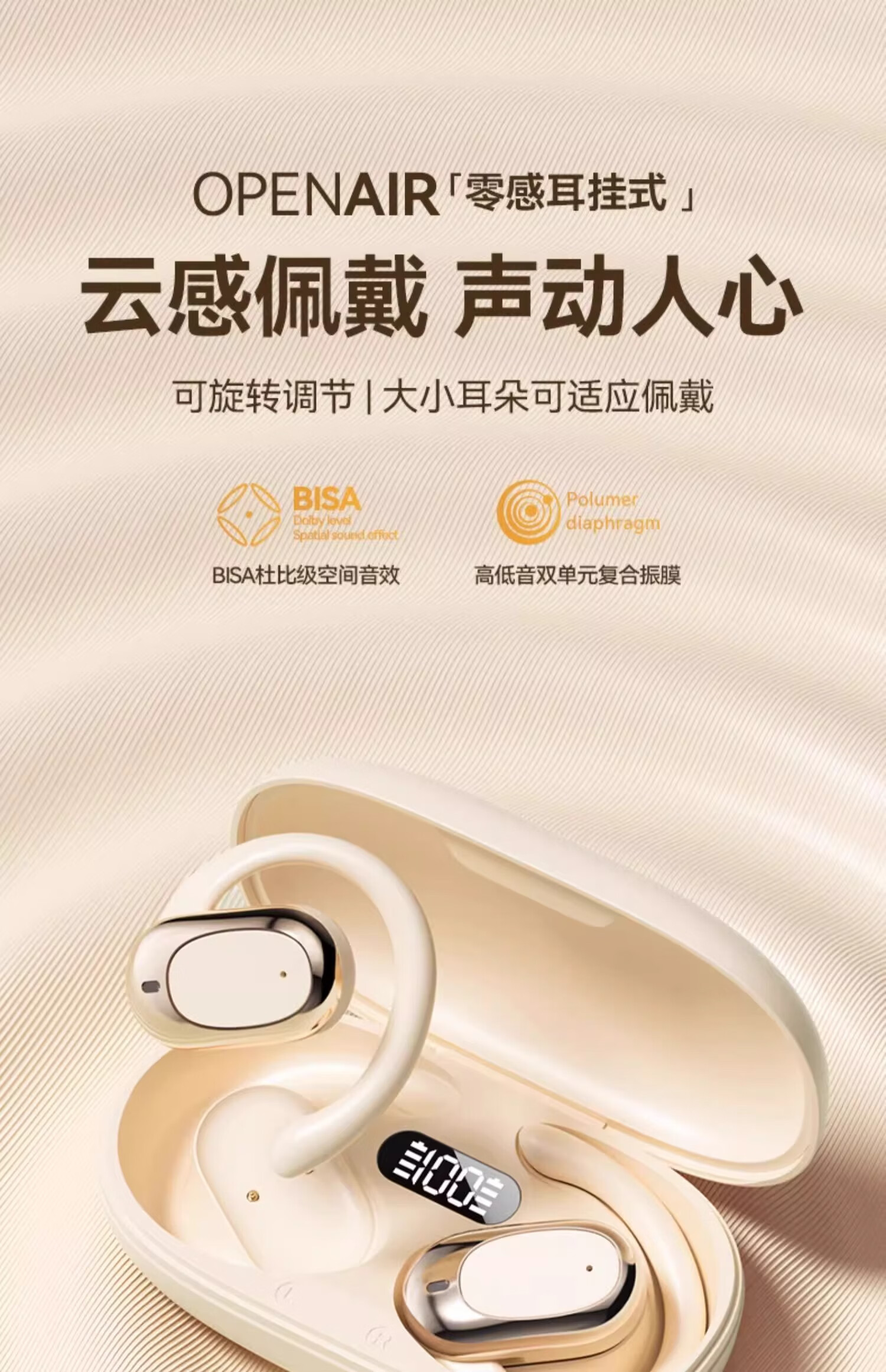 萨勒芬妮【柏林之声丨顶配新款】蓝牙耳机骨传导概念挂耳式无线开放式不入耳运动降噪超长续航适用苹果华为 【云感肤】开放不漏音丨久戴不痛 【9D杜比音效丨CVC通话降噪】
