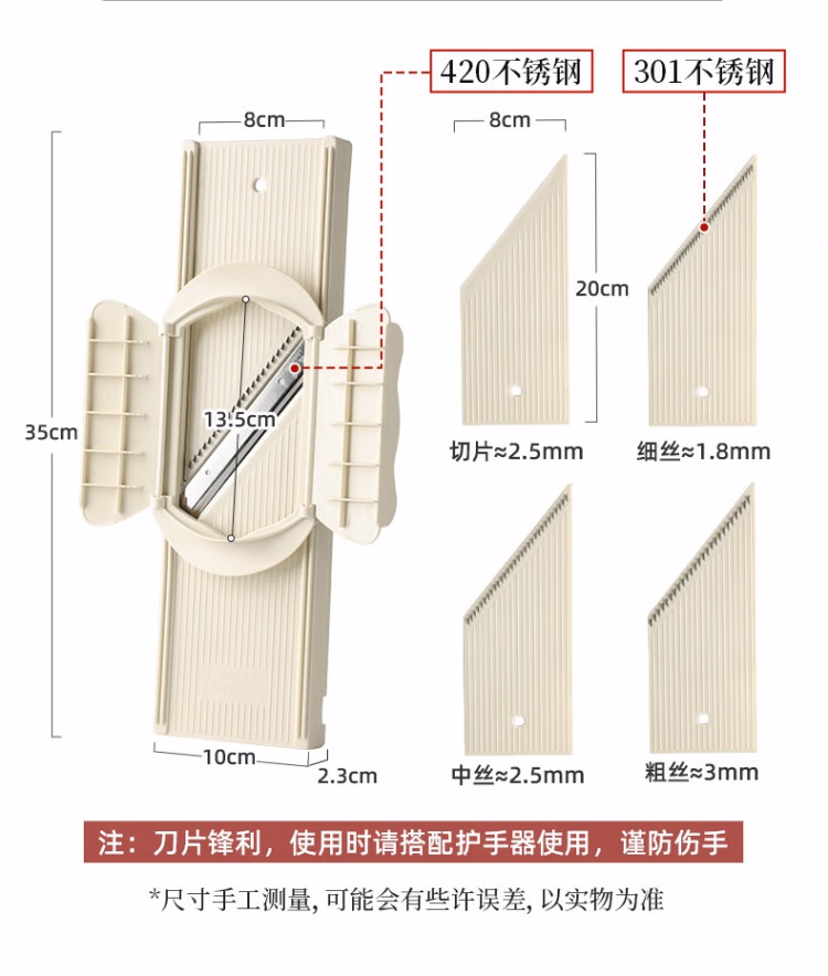TYZAYR日本擦丝器切菜刨丝家用土豆片萝卜厨房不伤手多功能新款刮丝神器 【2功能】粗丝+切片+护手器