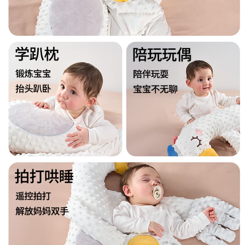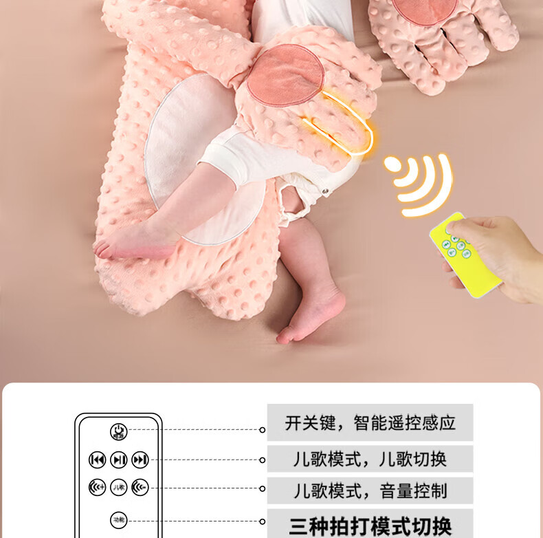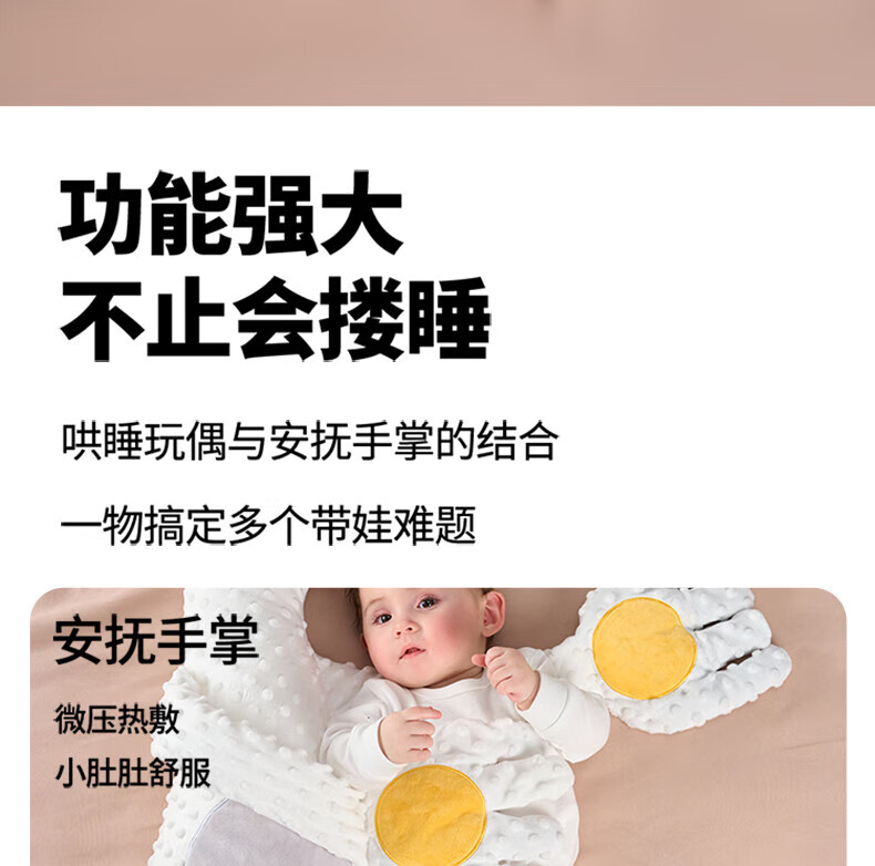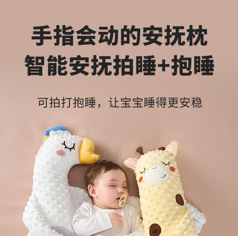 贝肽斯枕头安抚手掌哄睡神器哄娃拍睡婴儿防惊跳抱睡拍打安抚枕头 大白鹅 【智能拍打款-热敷暖腹】