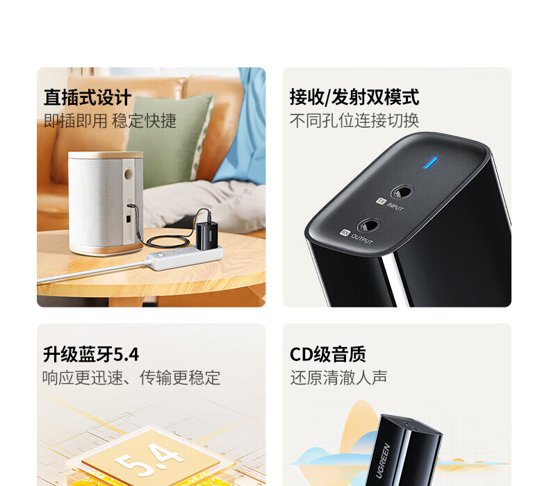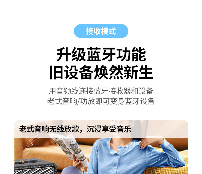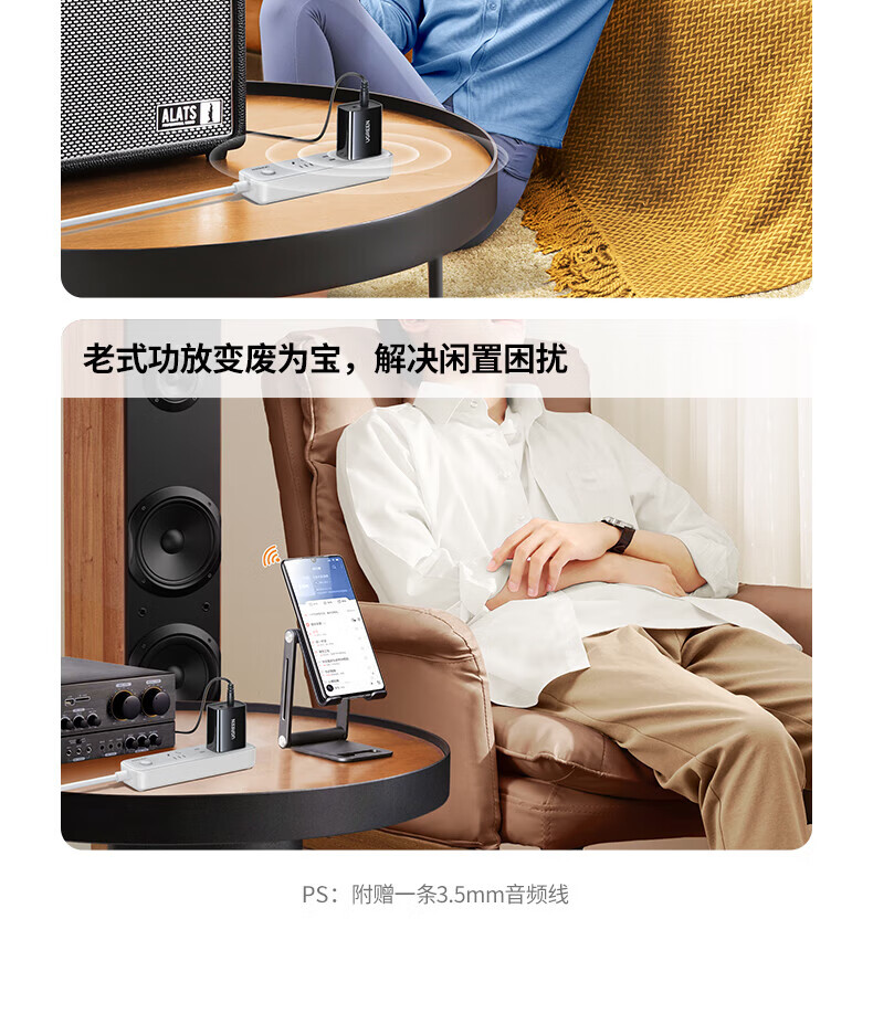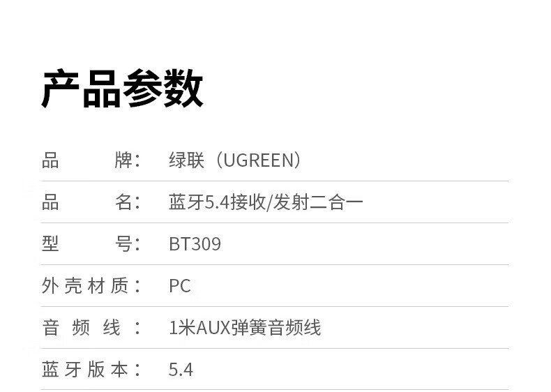 绿联 蓝牙接收器5.3版3.5mm蓝牙音频适配器音箱响AUX接老式功放耳机无线转接台式电脑笔记本音频发射器 蓝牙接收器【蓝牙5.3】25204