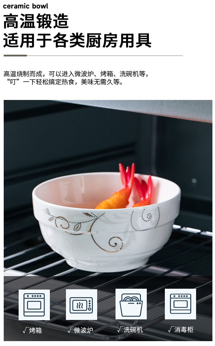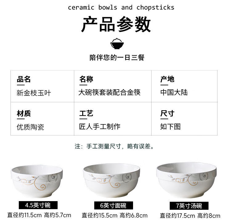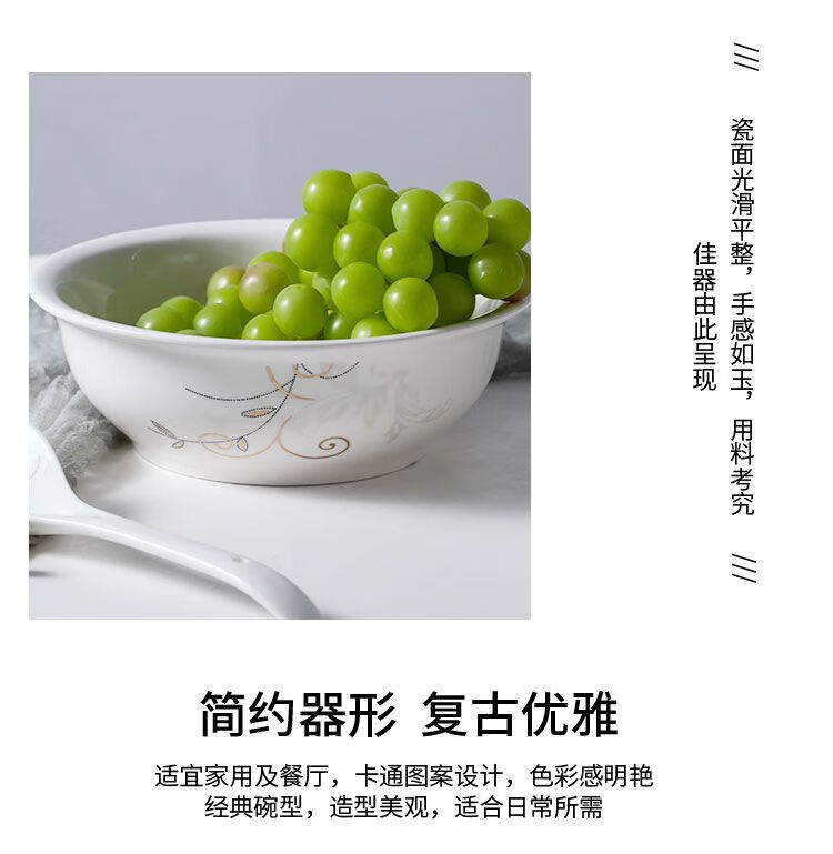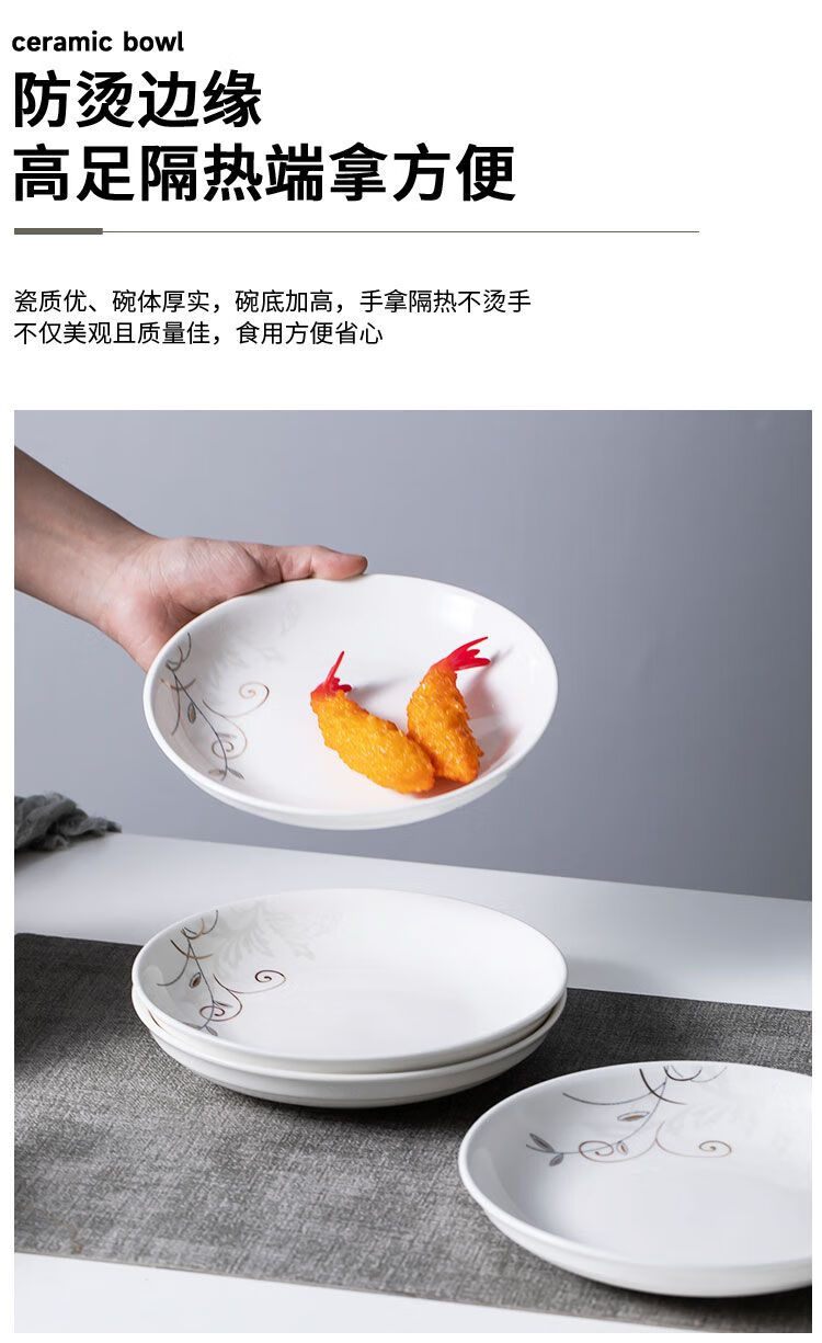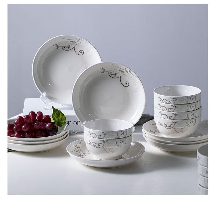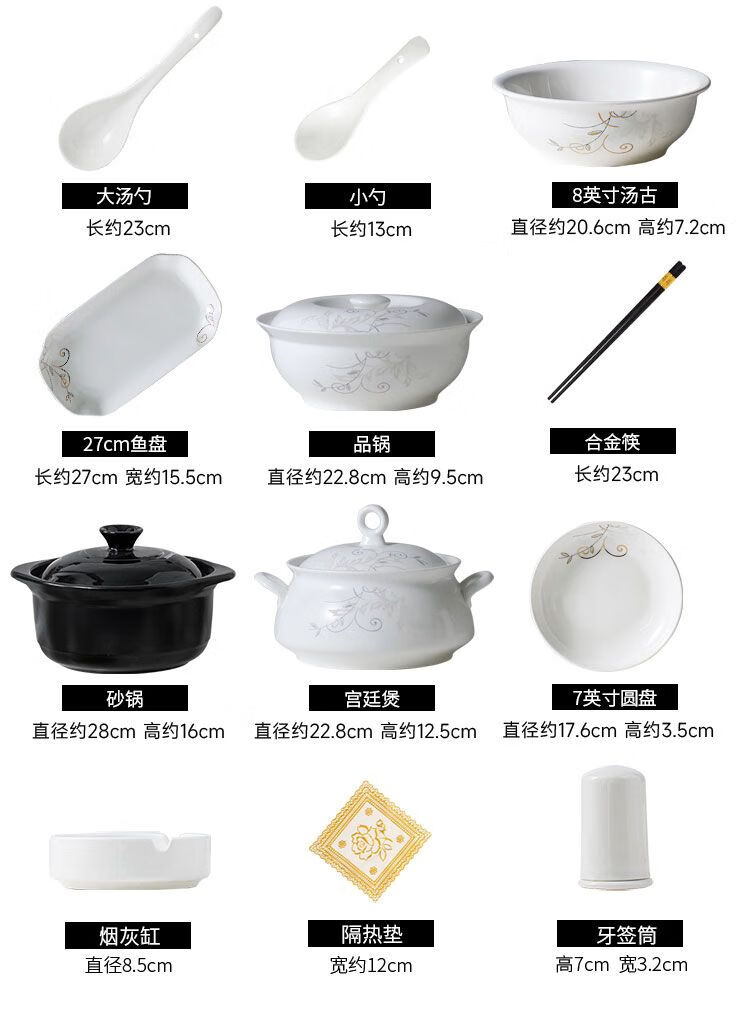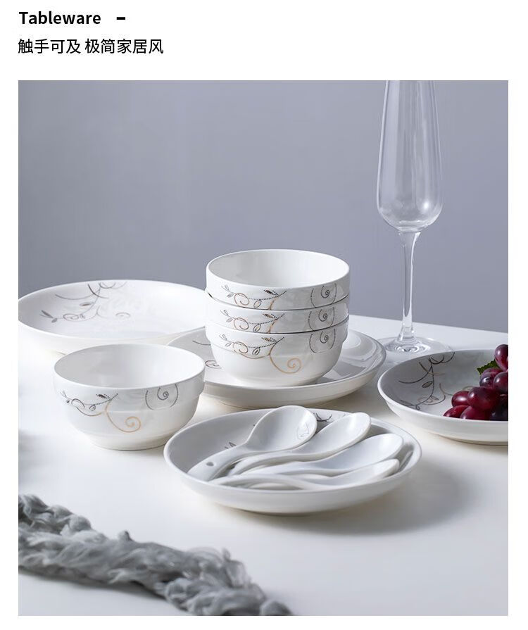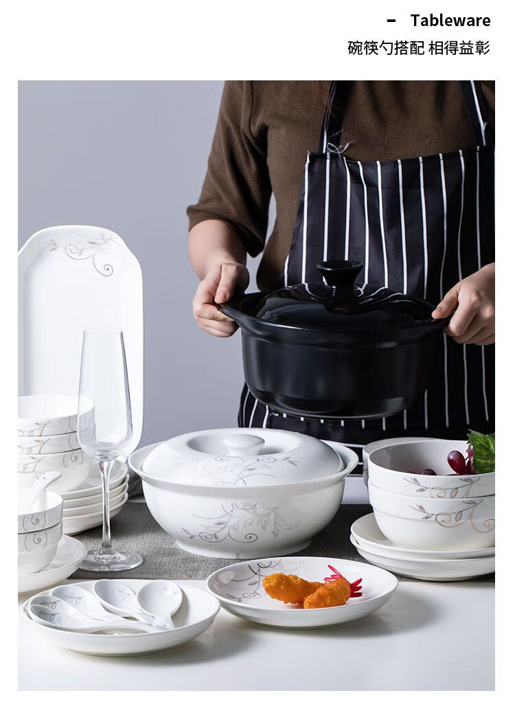 咏夏家用碗碟新款10人组合创意大套装陶瓷餐具饭碗面碗盘子汤碗可微波 金枝50件配合金筷