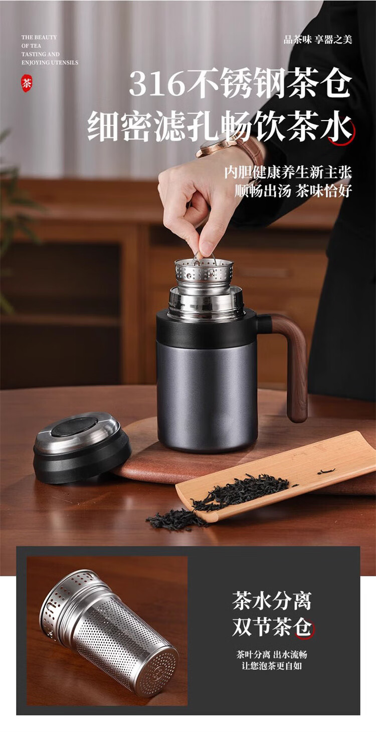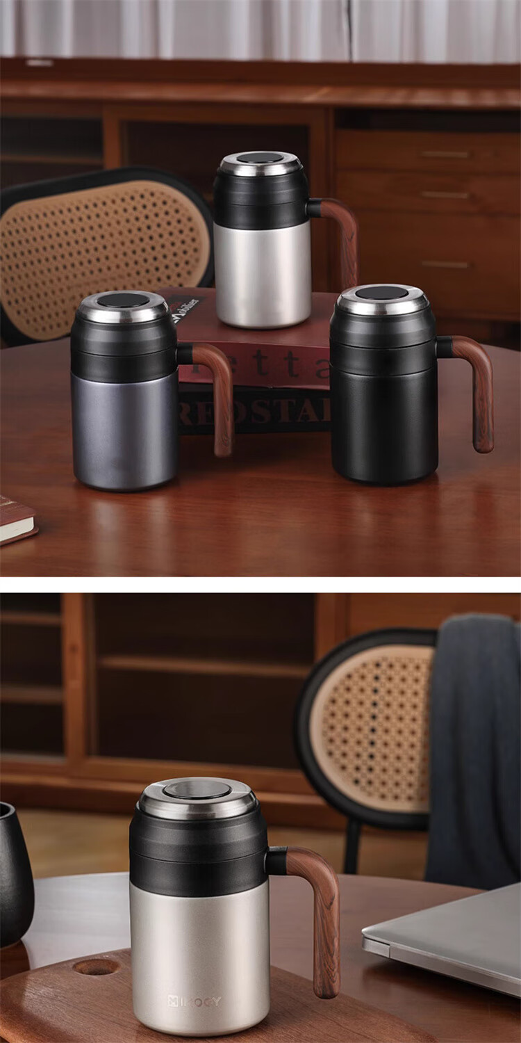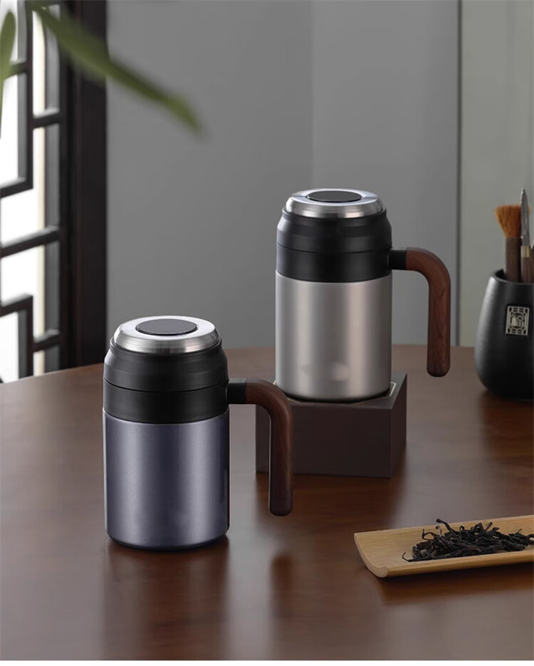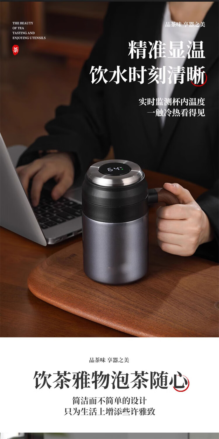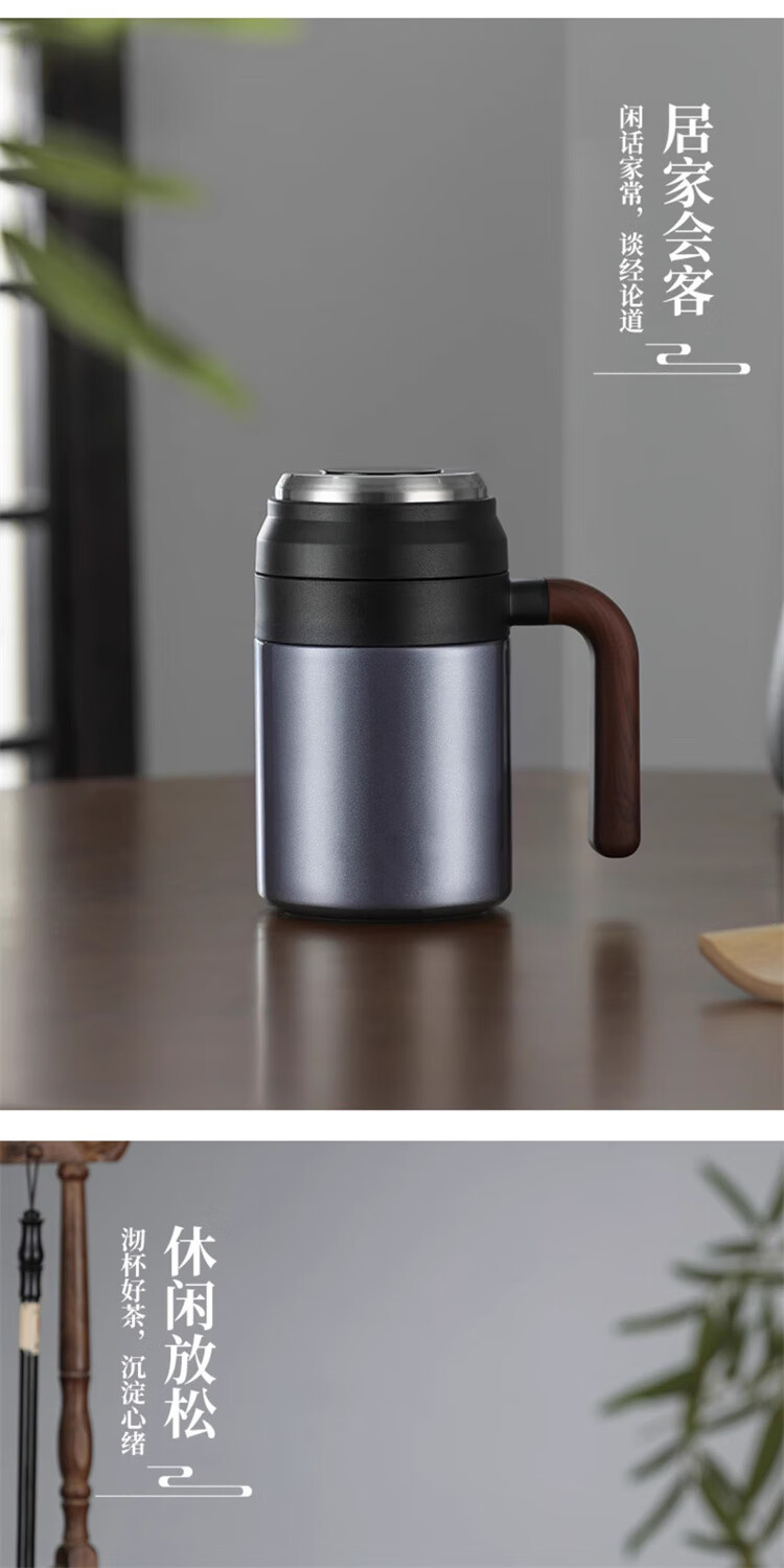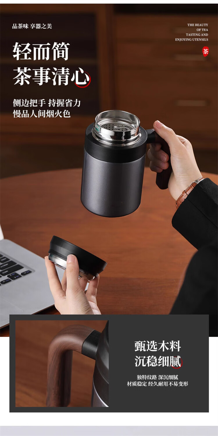 筏芯德国高档保温杯男款带手柄高端礼物送礼焖茶泡茶杯子办公室水杯 复古灰520ML