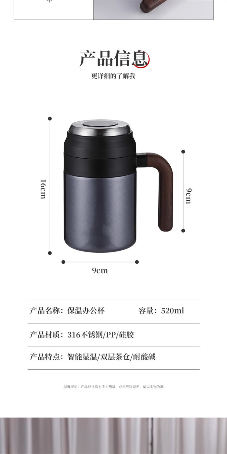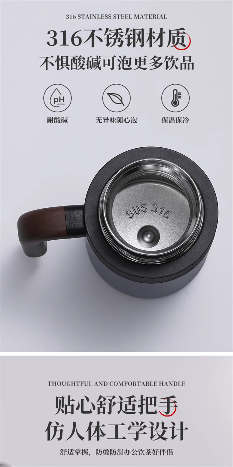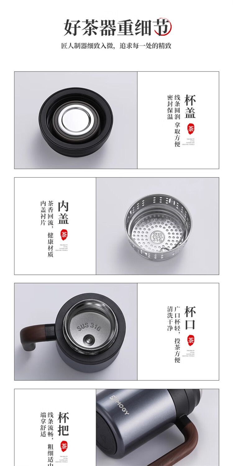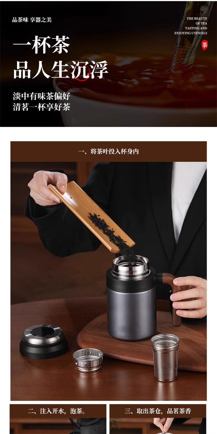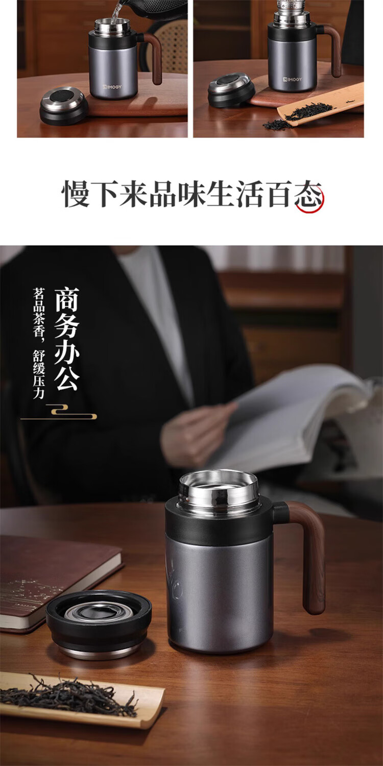 筏芯德国高档保温杯男款带手柄高端礼物送礼焖茶泡茶杯子办公室水杯 复古灰520ML