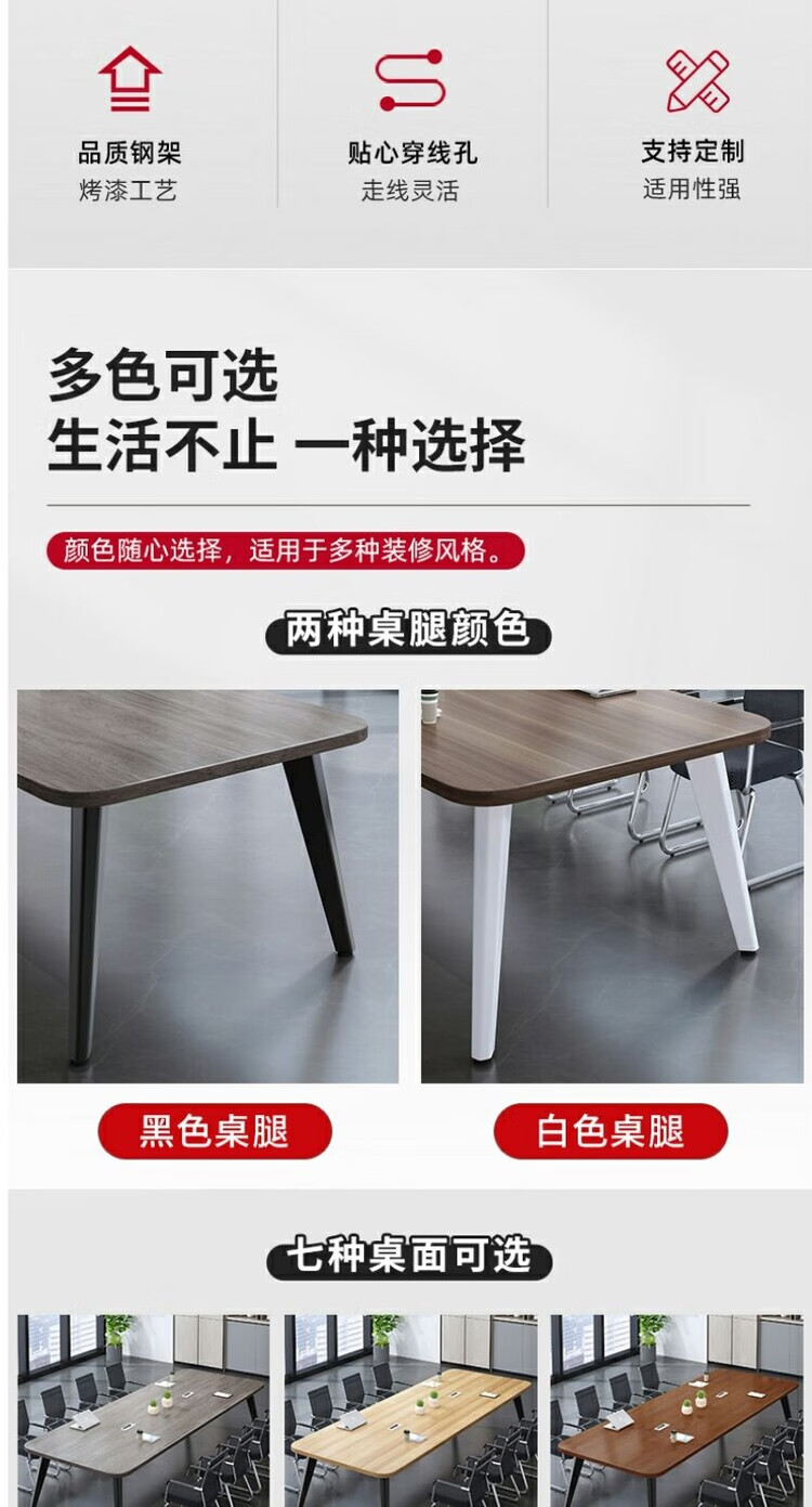 迈途森会议桌长桌简约现代小型会议室培训桌简易工作台长条办公桌椅组合 长120*宽60【颜色备注】