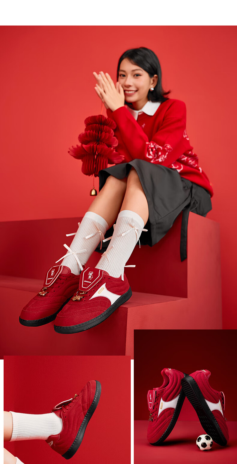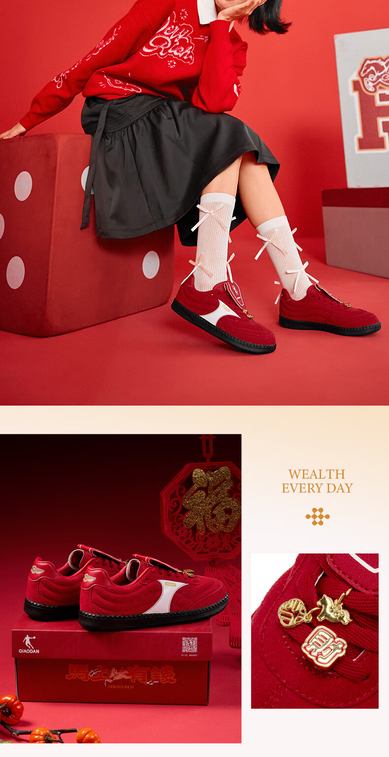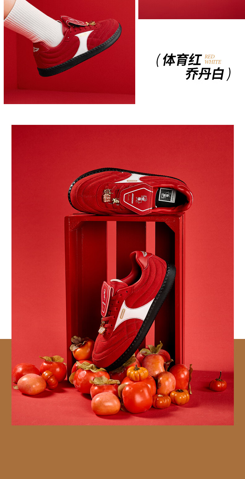 乔丹女板鞋薄底足训鞋新年款红色德训鞋休闲本命年运动鞋年货
