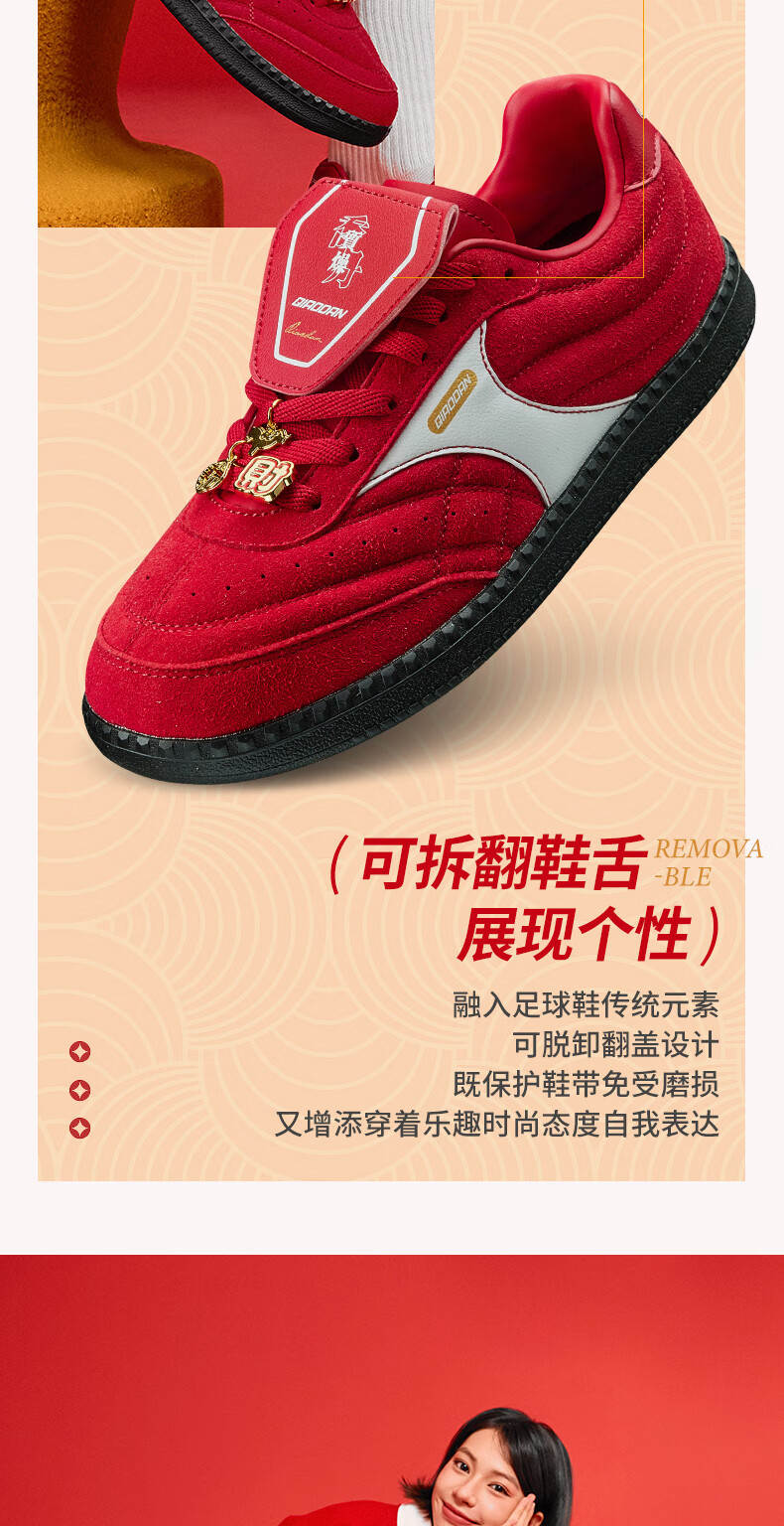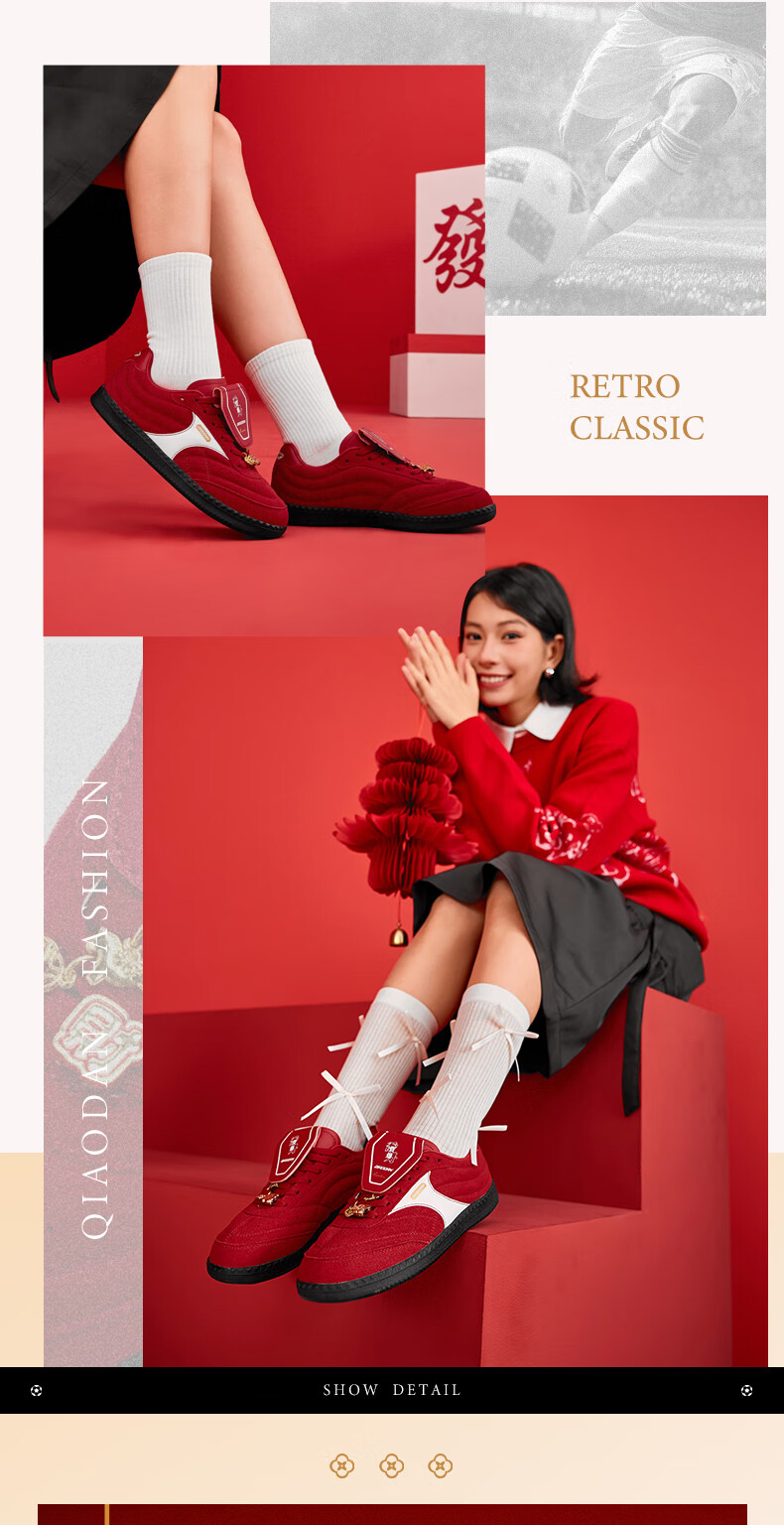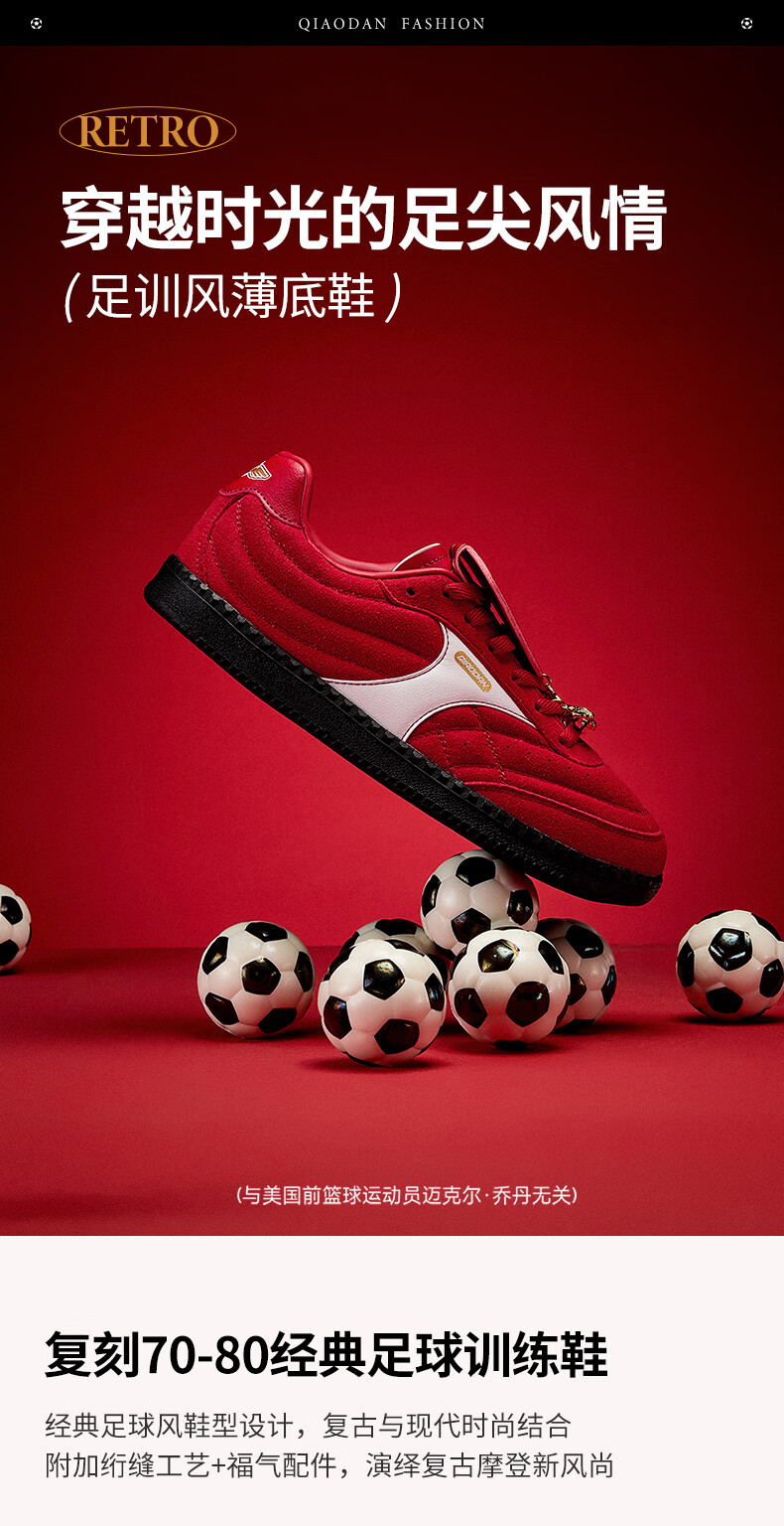 乔丹女板鞋薄底足训鞋新年款红色德训鞋休闲本命年运动鞋年货