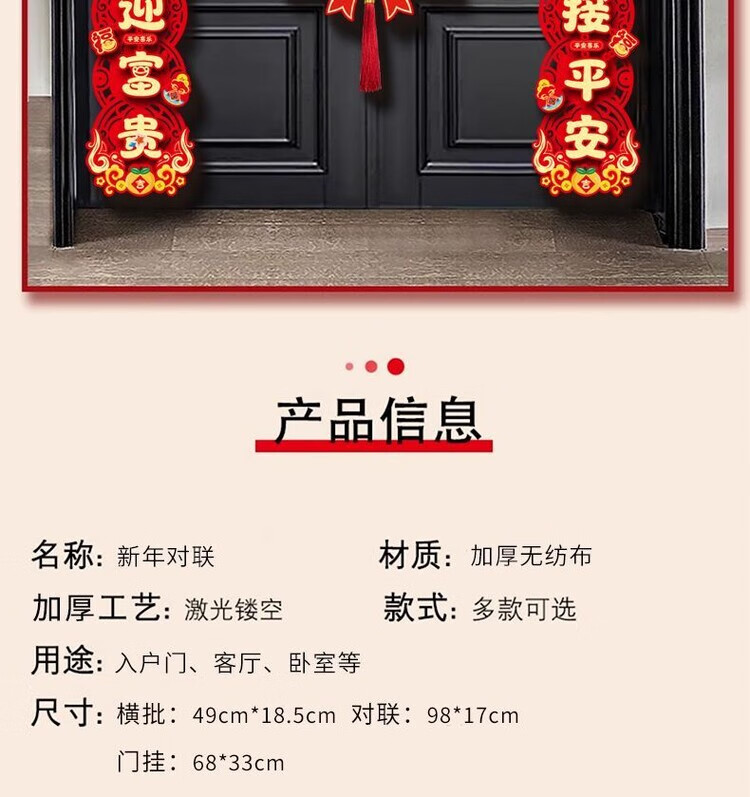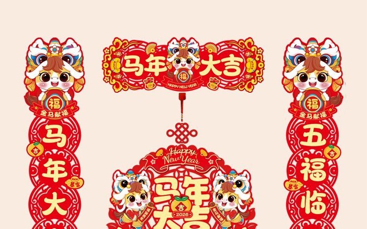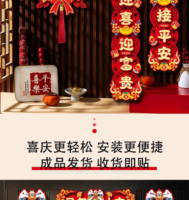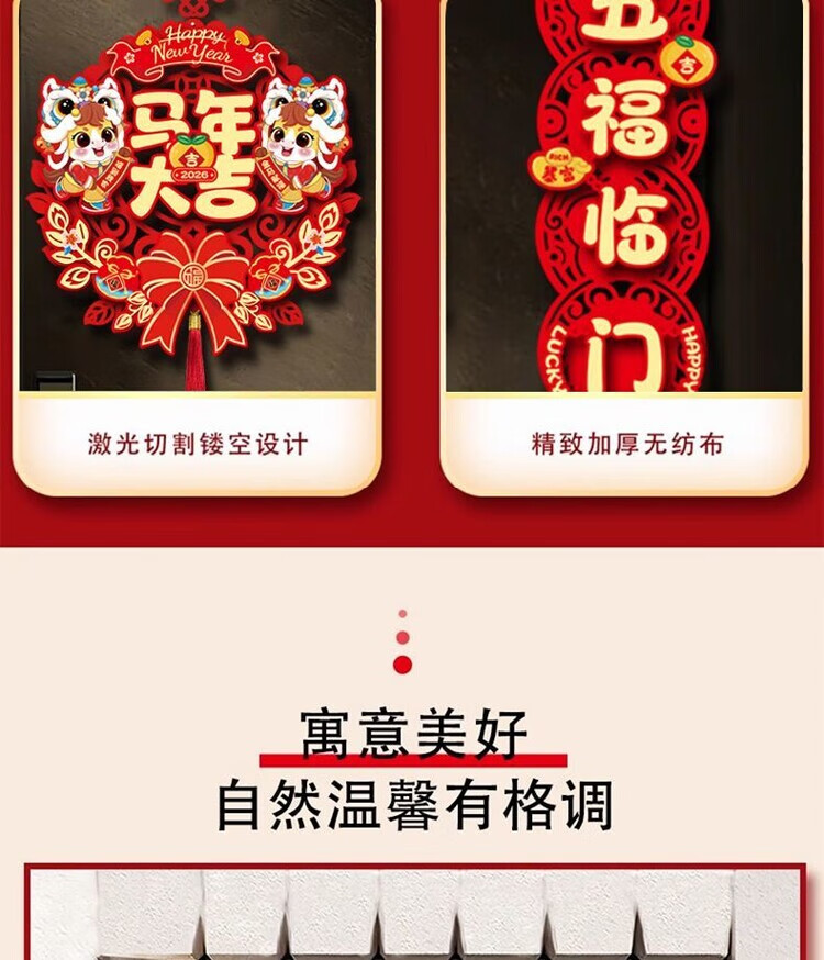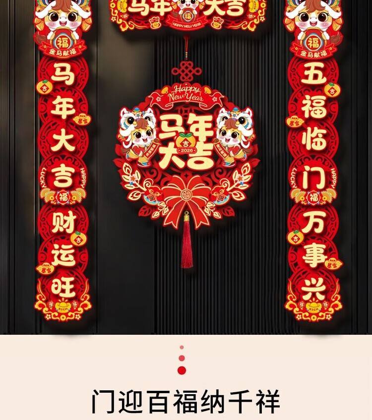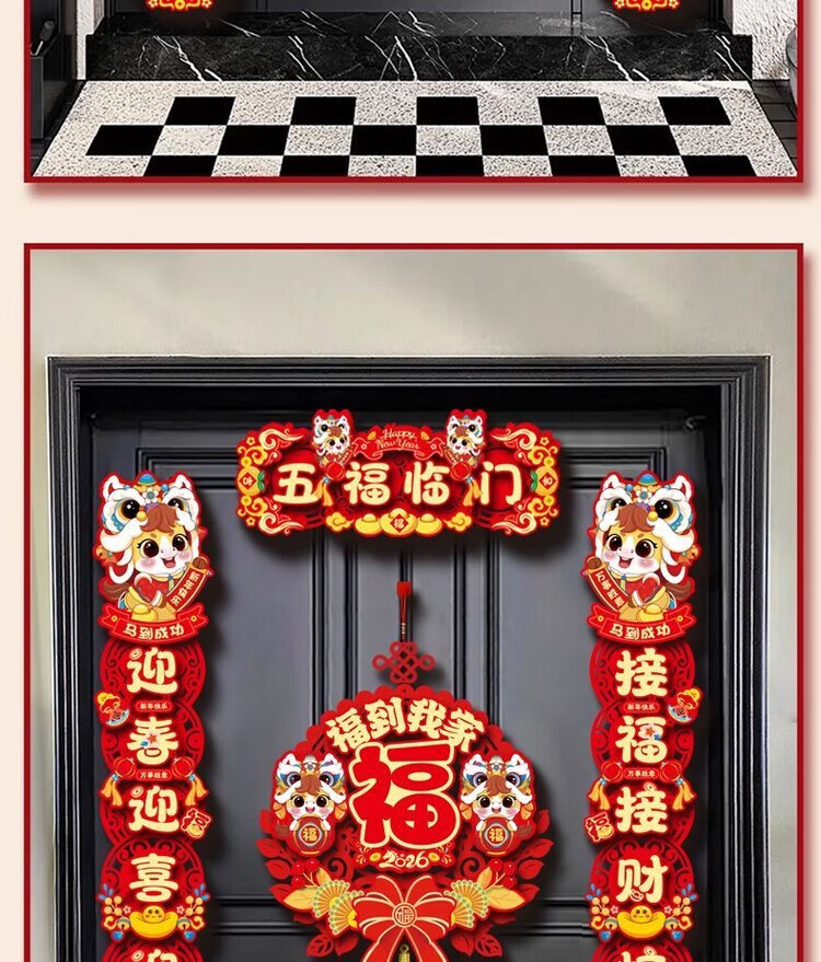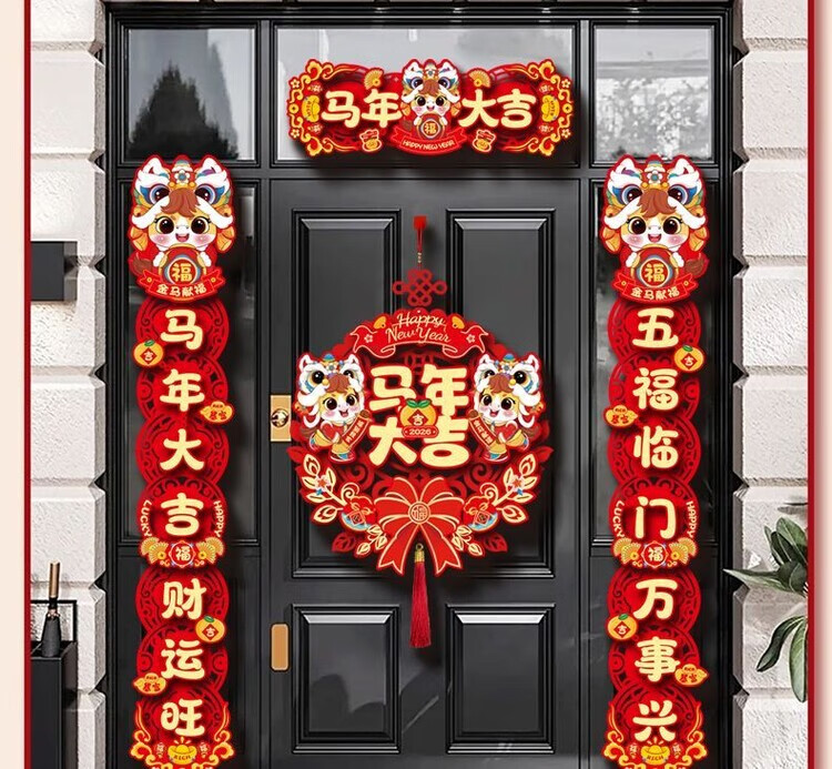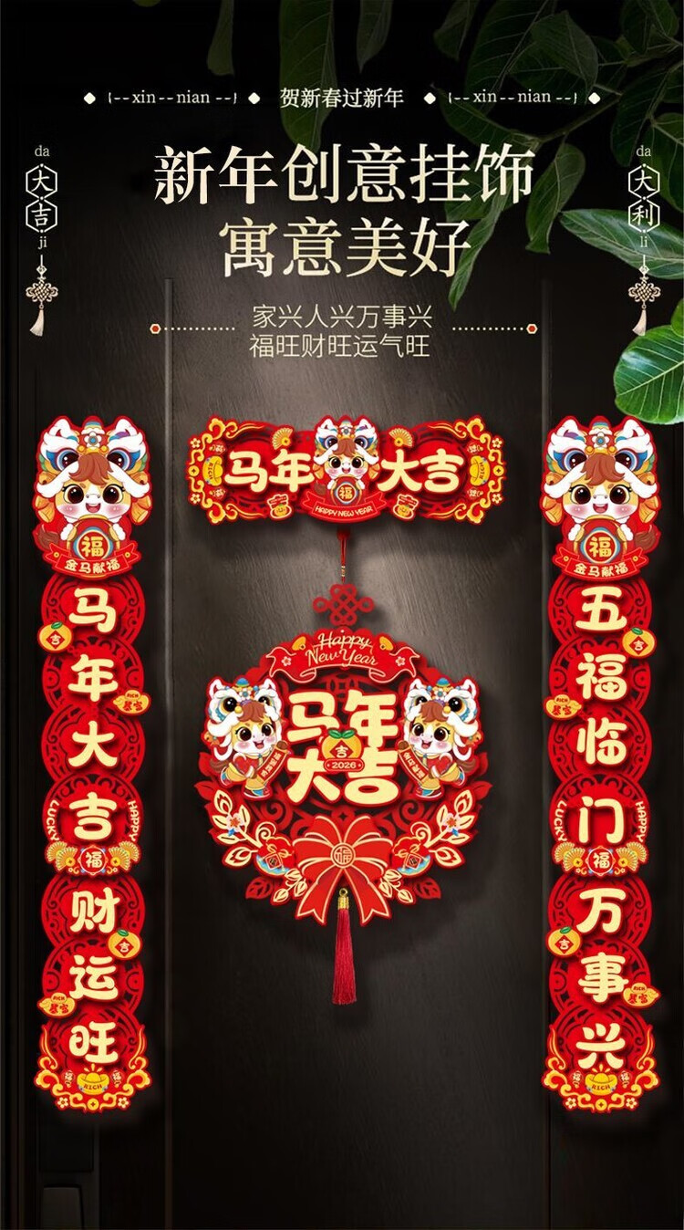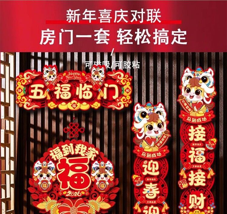OYKTN磁吸对联2026马年新年春联家用春节过年福字门贴元旦布置装饰用品 五福临门对联+福到我家挂件 组装