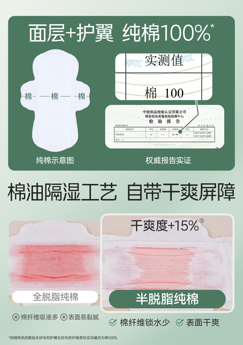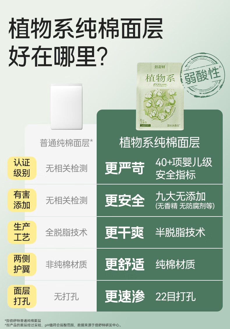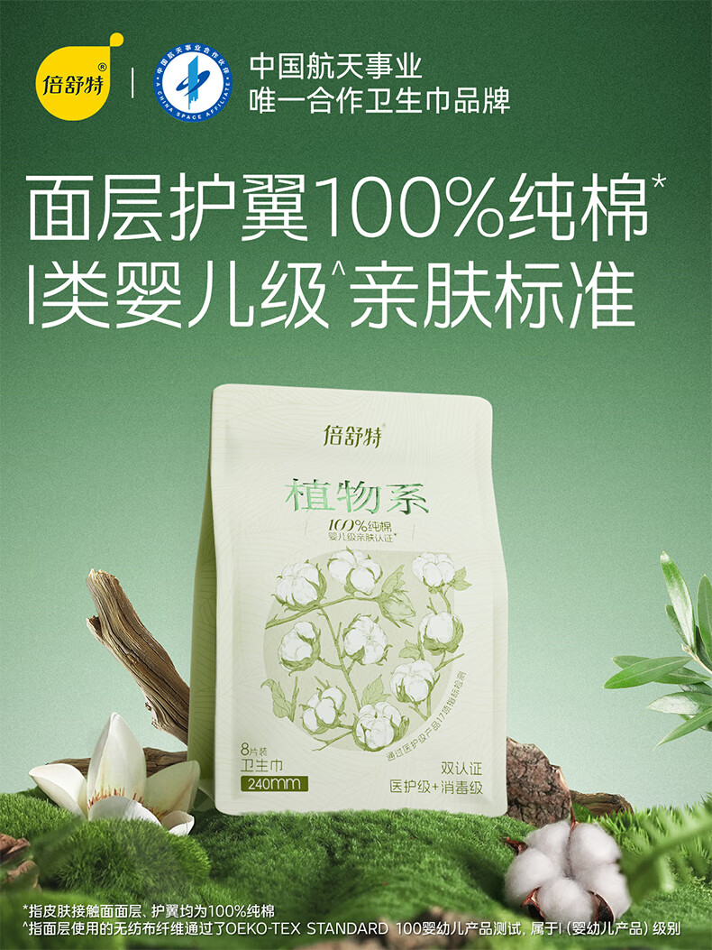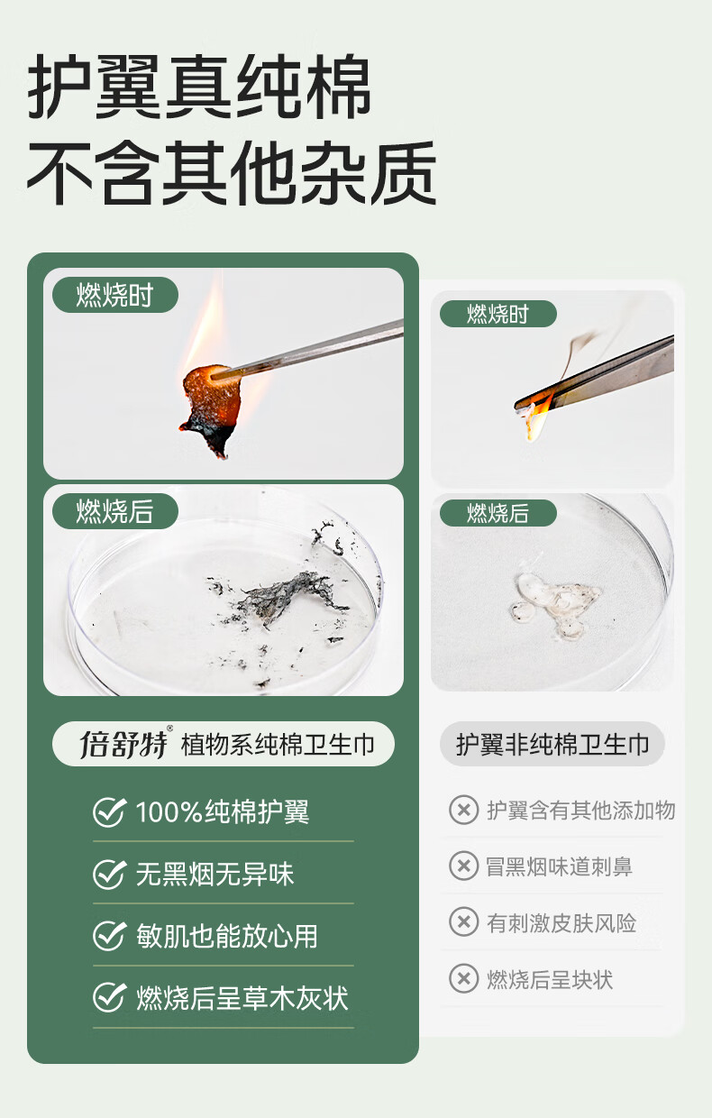 倍舒特植物系极薄消毒级纯棉日夜用卫生巾组合62片 京东自营全棉姨妈巾
