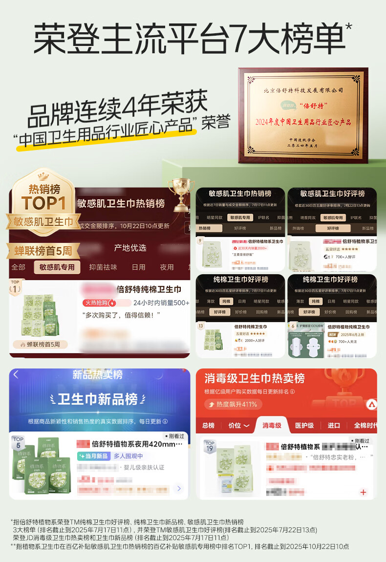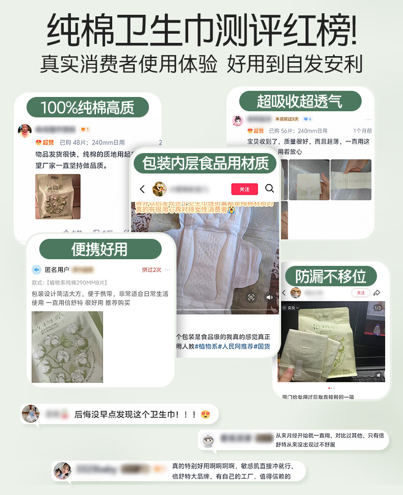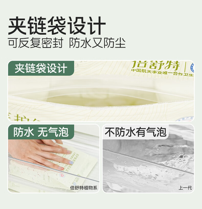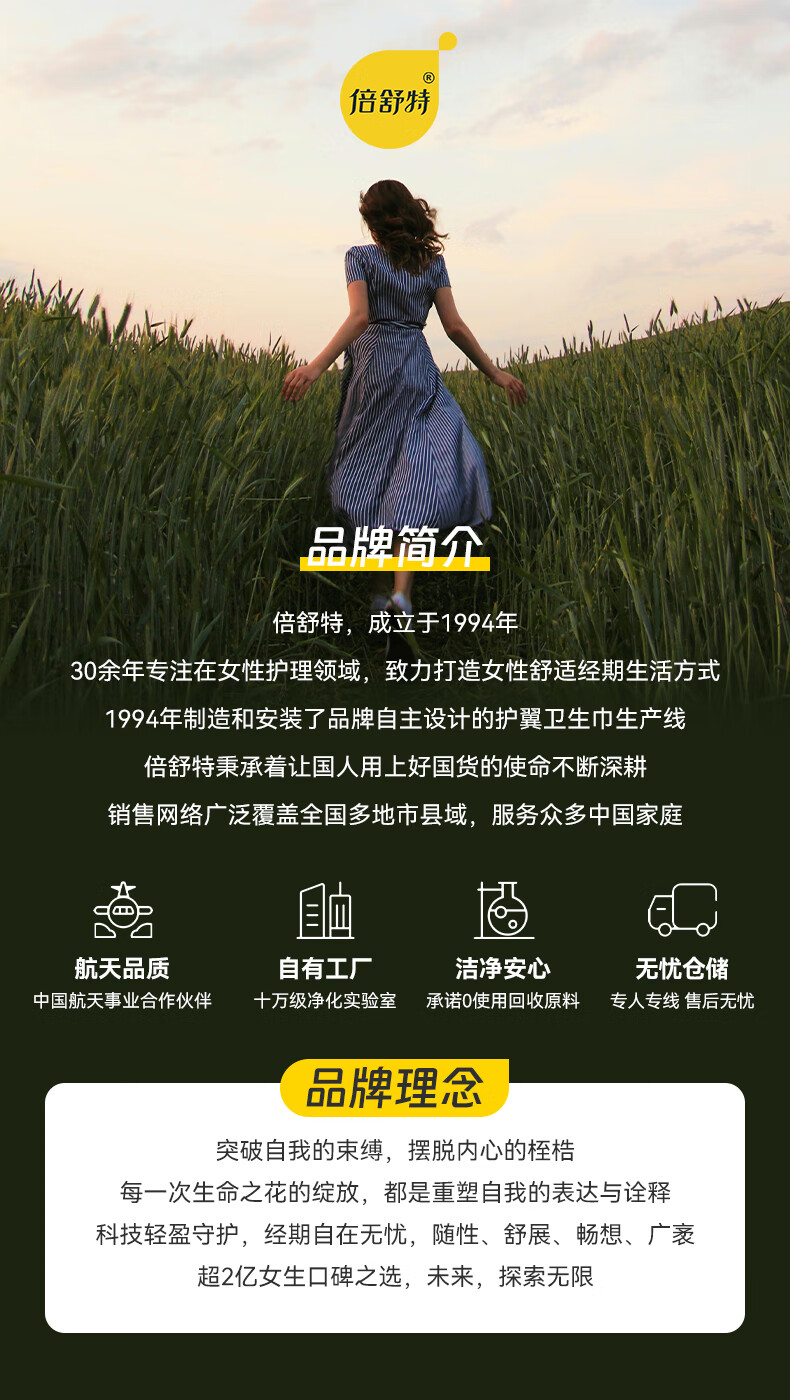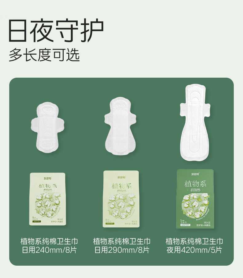 倍舒特植物系极薄消毒级纯棉日夜用卫生巾组合62片 京东自营全棉姨妈巾
