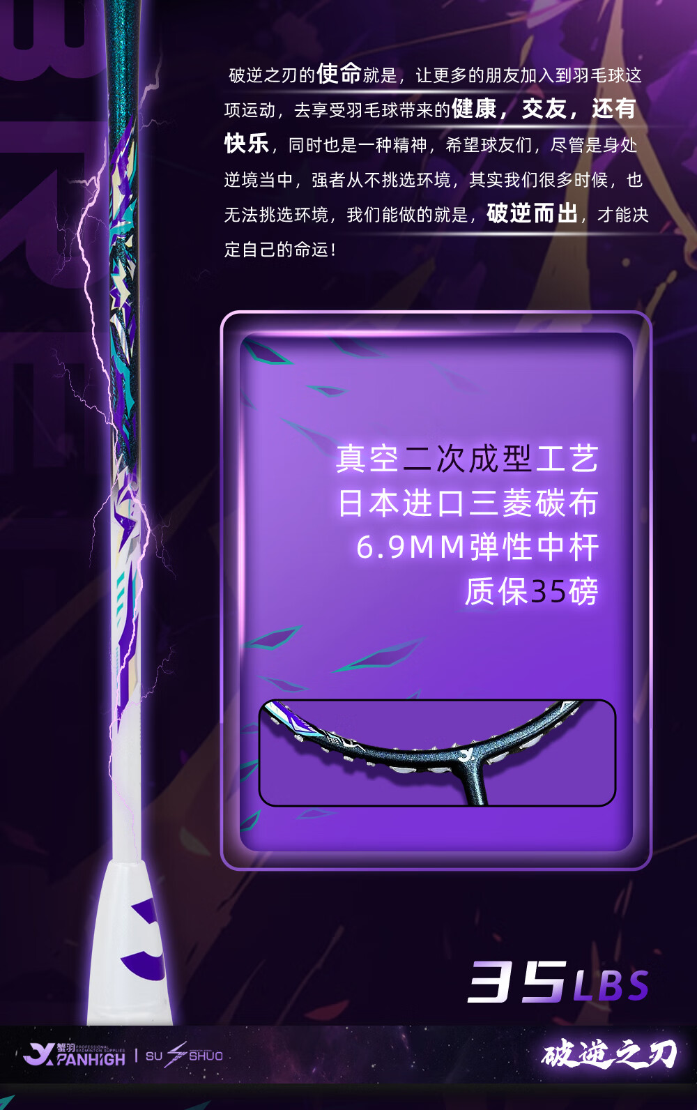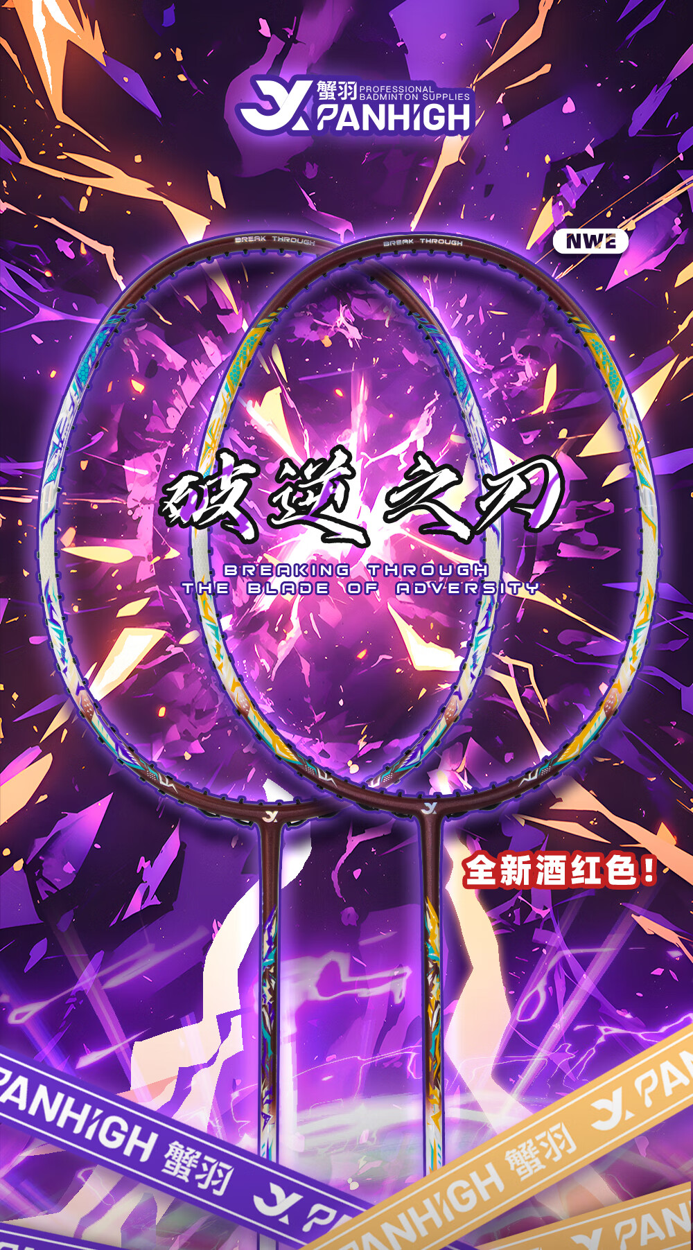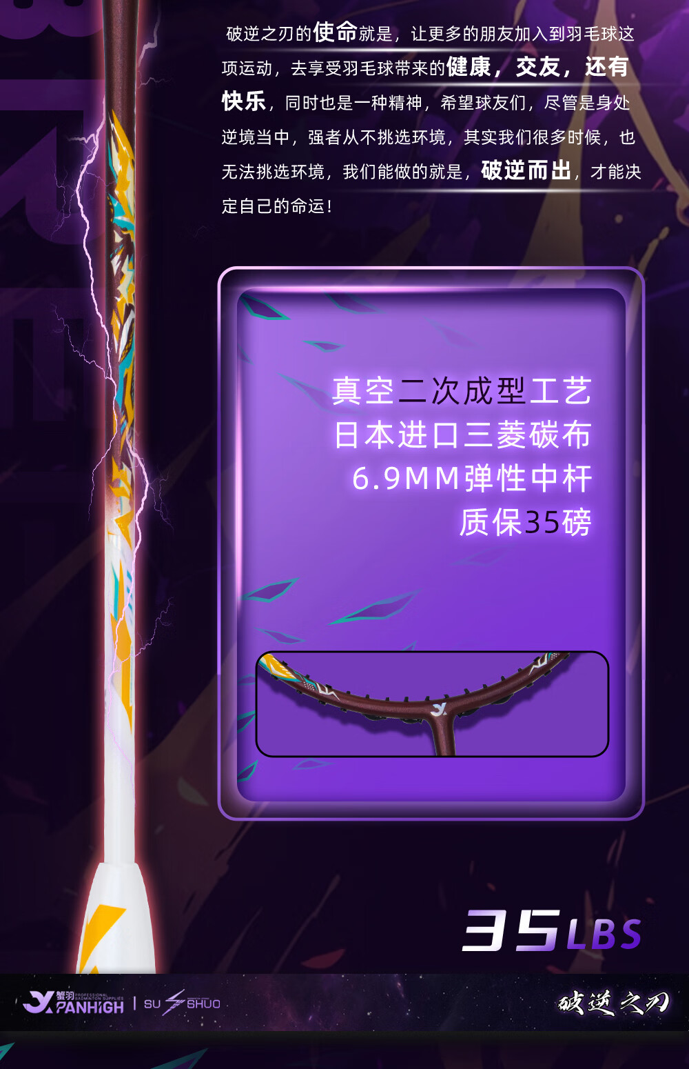 蟹羽羽毛球拍破逆之刃超轻全碳素纤维双面双色无心研磨中杆专业训练拍 破逆之刃-橙丨紫【青线】3球1胶 28磅(蕞强王者)