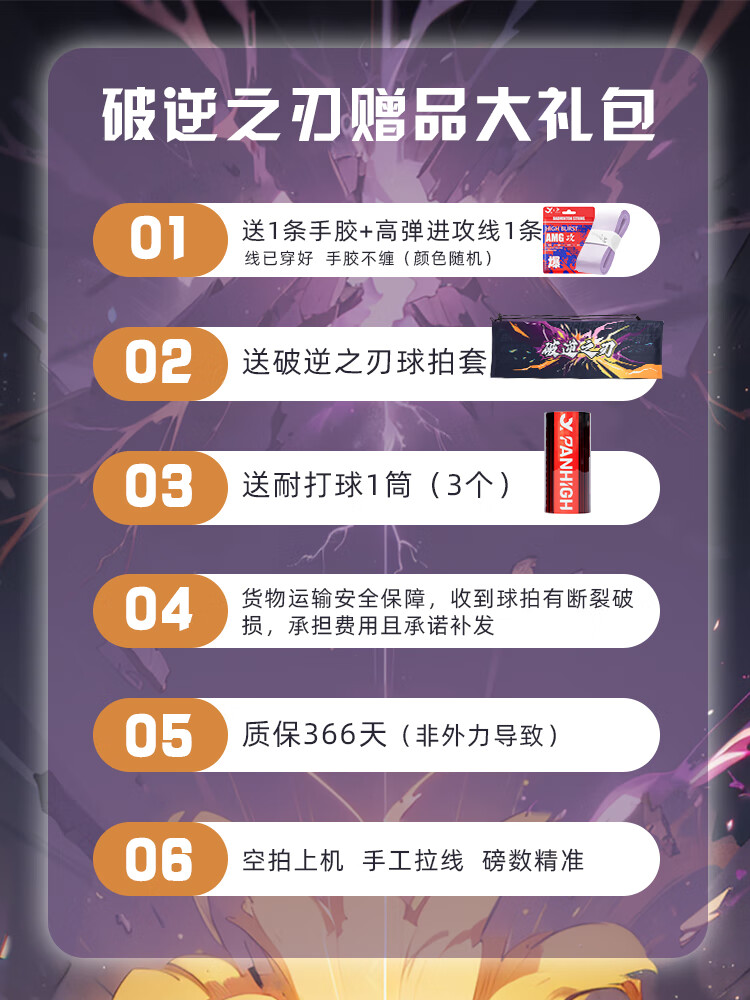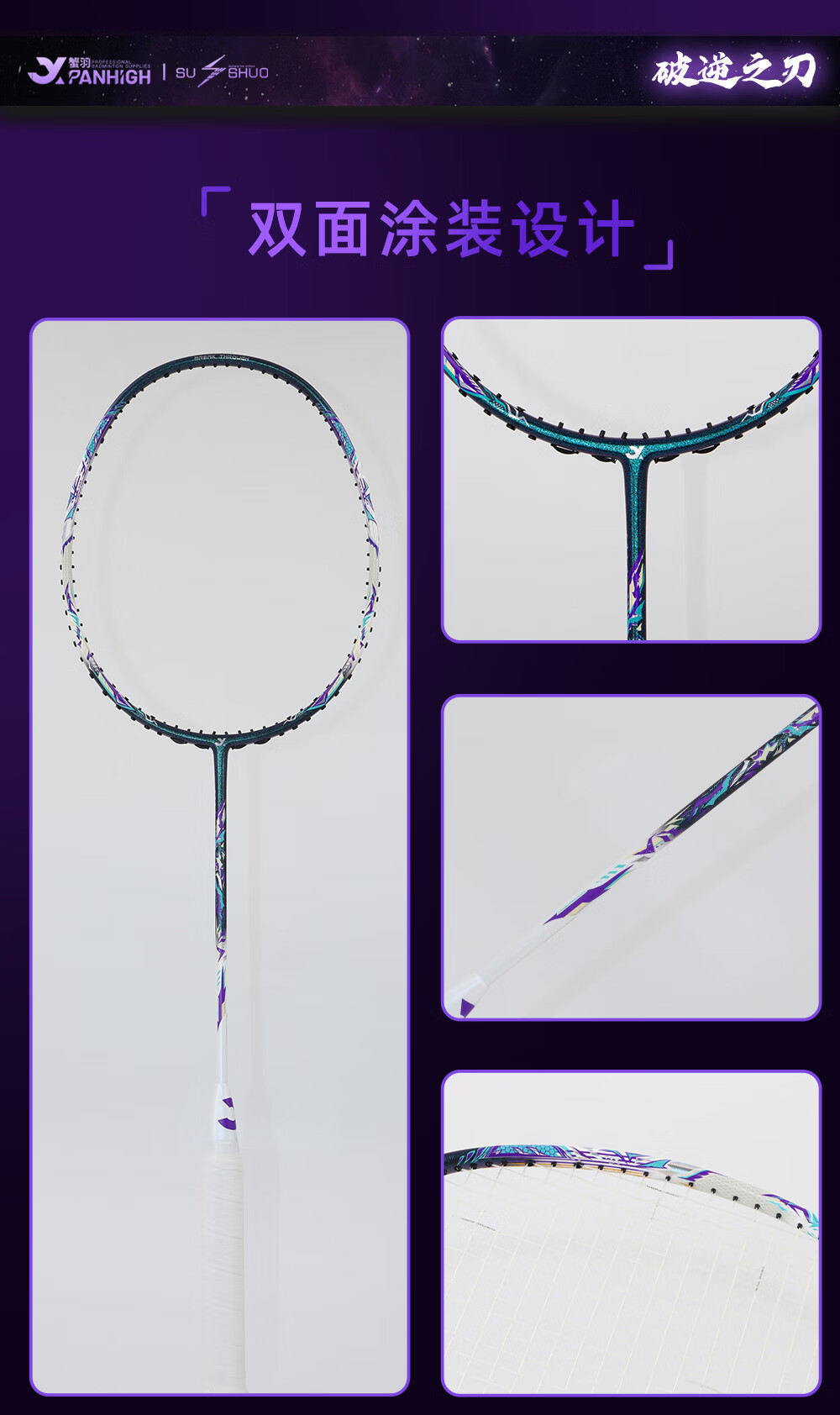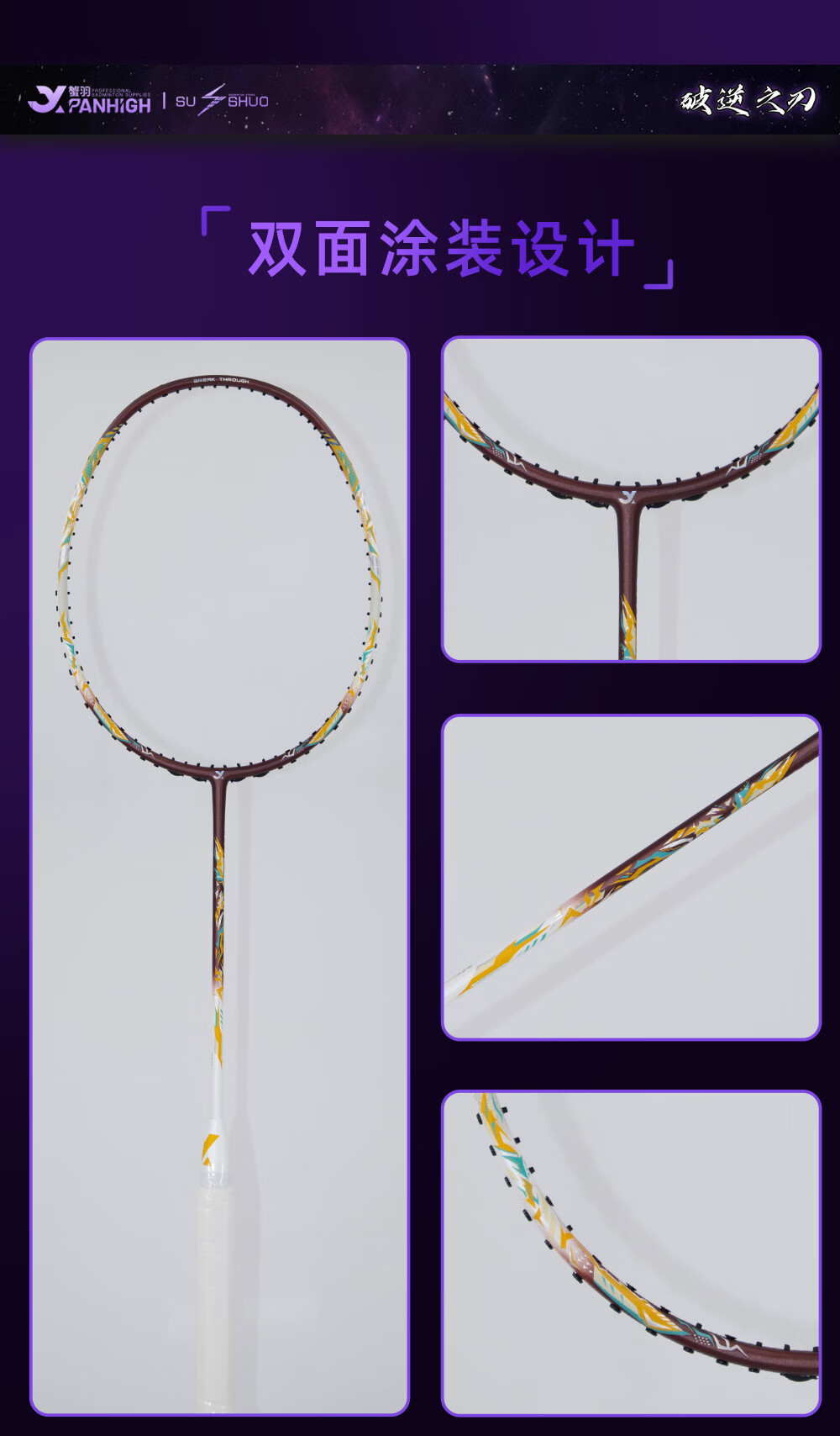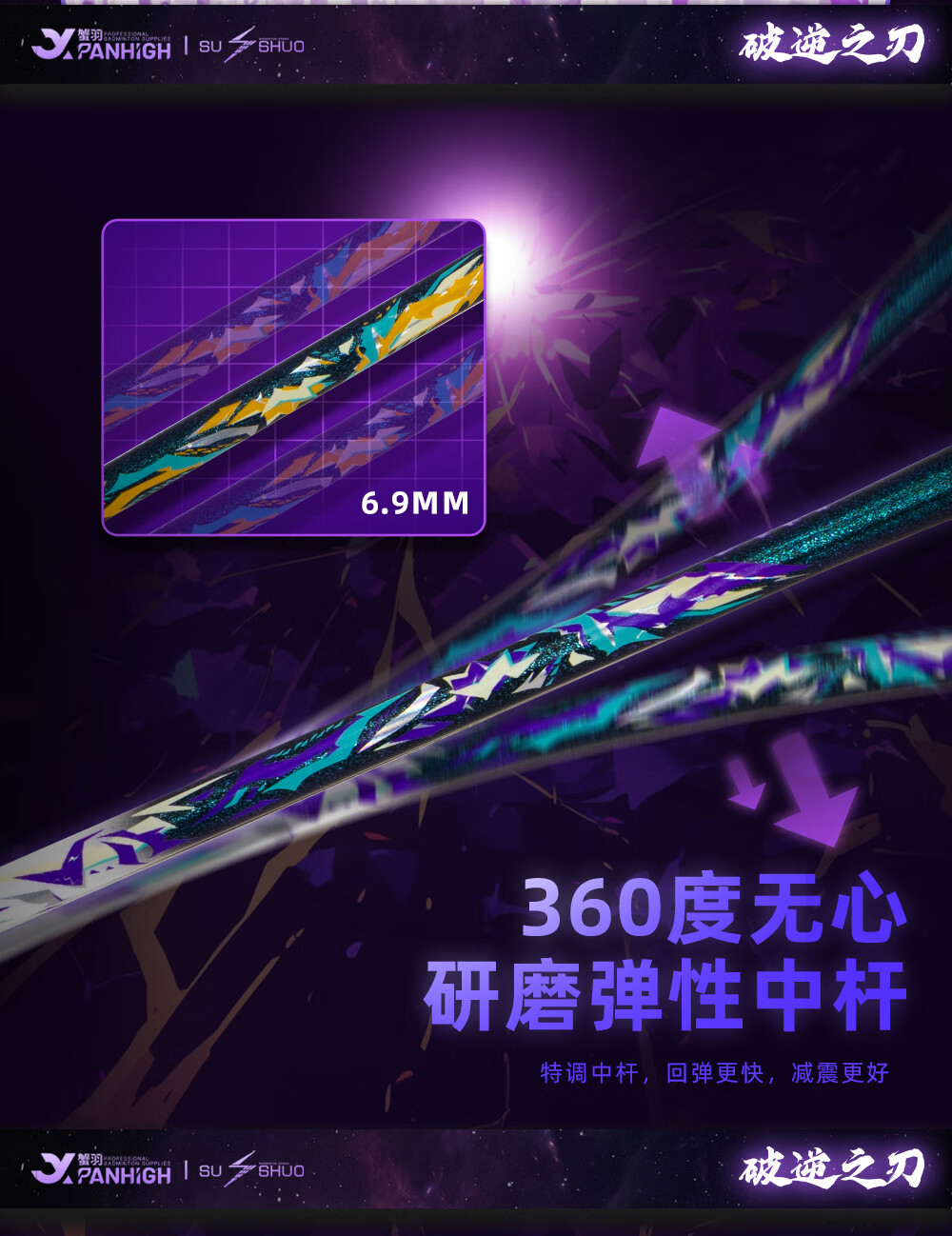 蟹羽羽毛球拍破逆之刃超轻全碳素纤维双面双色无心研磨中杆专业训练拍 破逆之刃-橙丨紫【青线】3球1胶 28磅(蕞强王者)