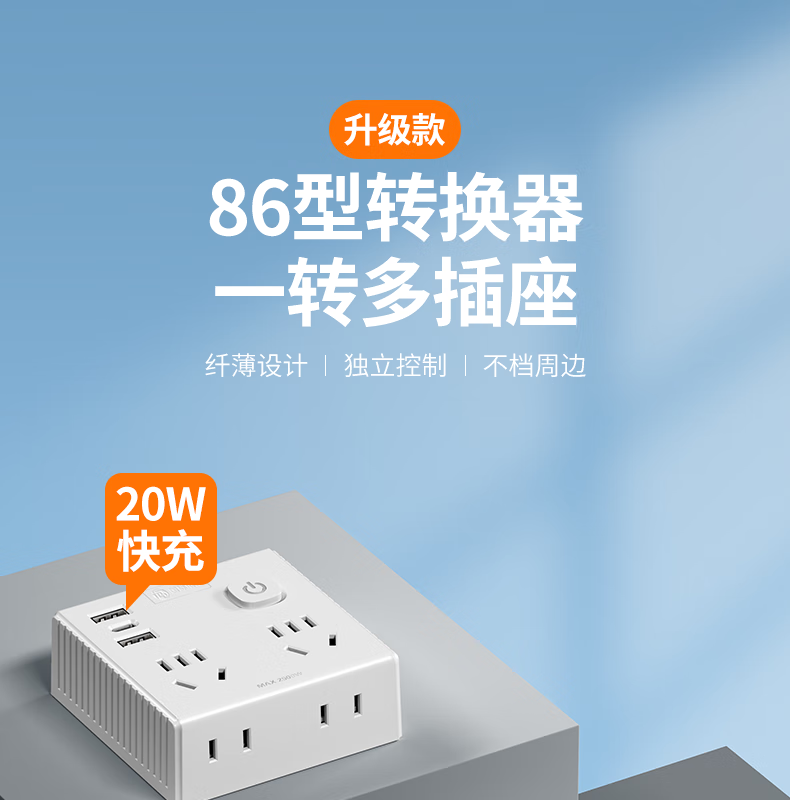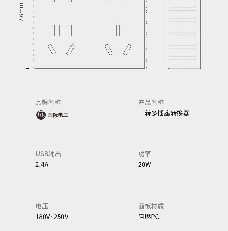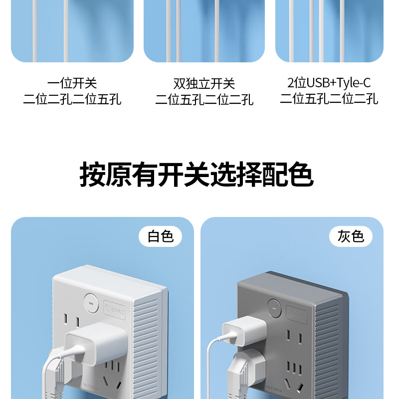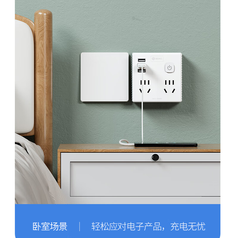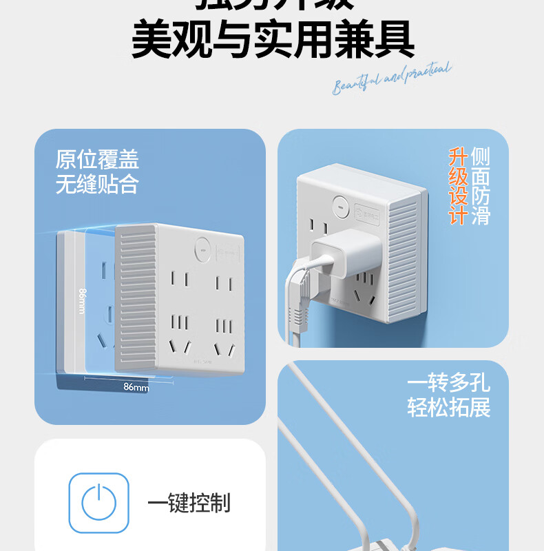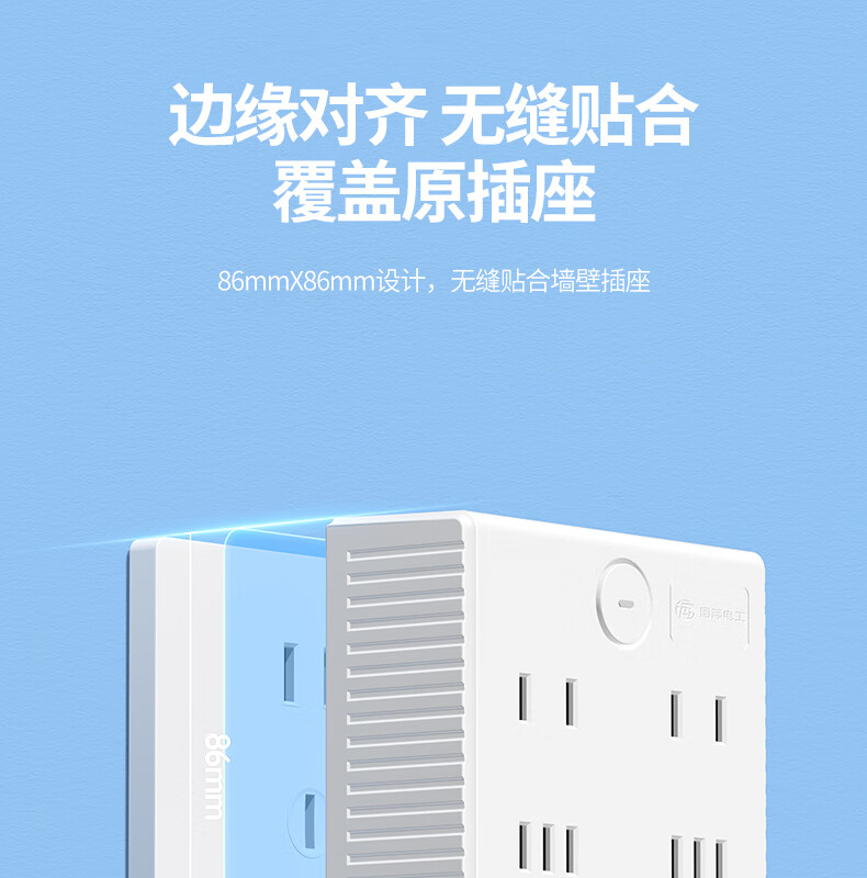 国际电工86型无线拓展插座转换器一转多一转六电源插头超薄多功能扩展家用 星空灰1转4 86型【分控】