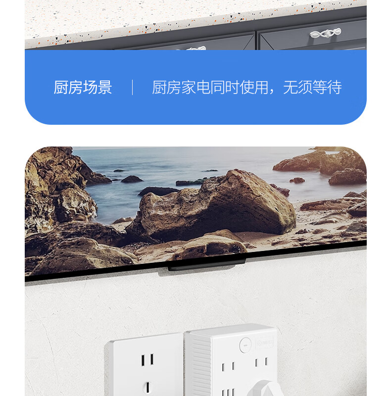 国际电工厨房轨道插座可移动排插壁挂式电力导轨插座快充一体明装轨道插板 【USB快充一体】50厘米+4个五孔适配器(蓝灯)