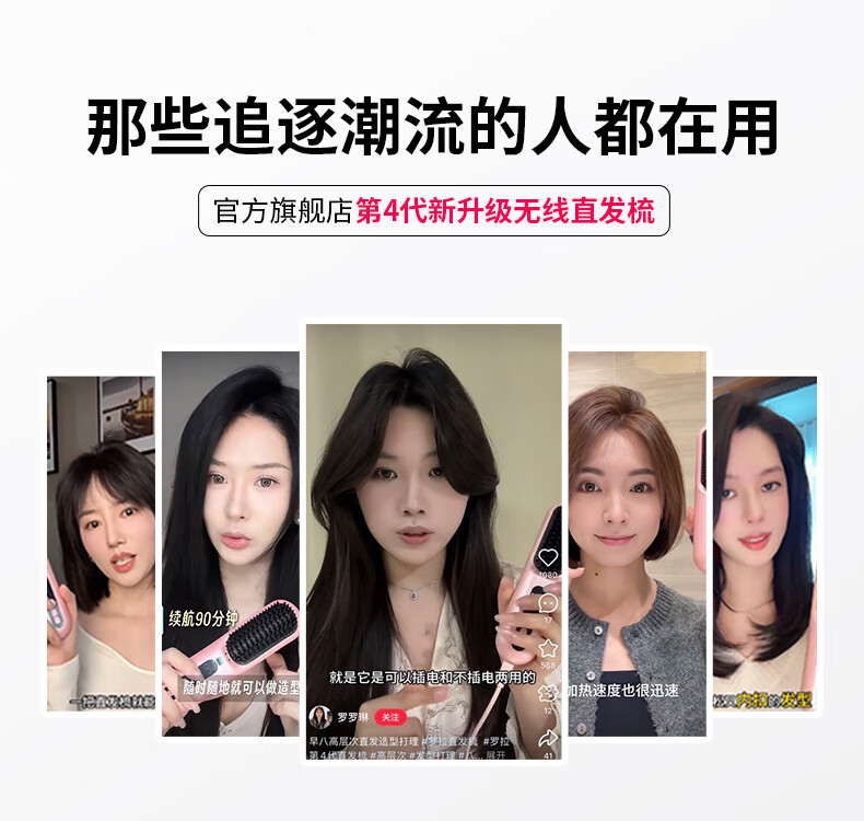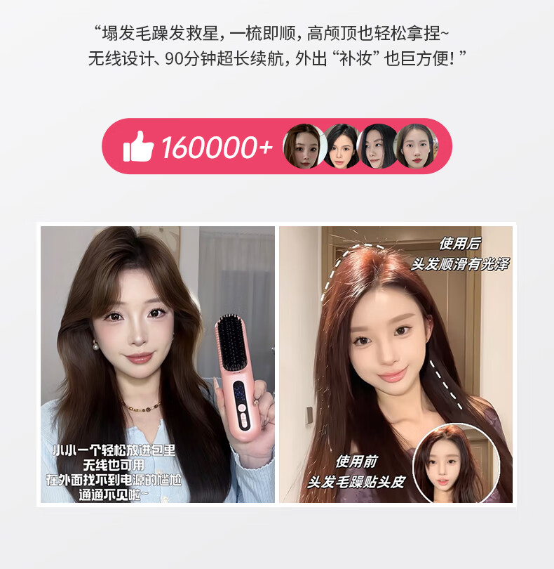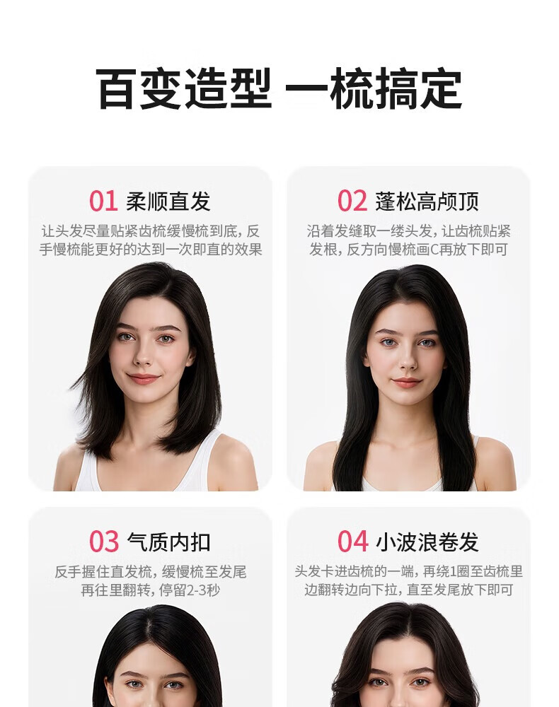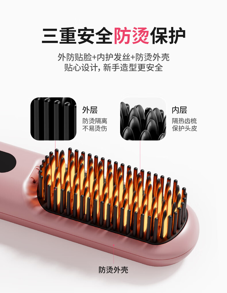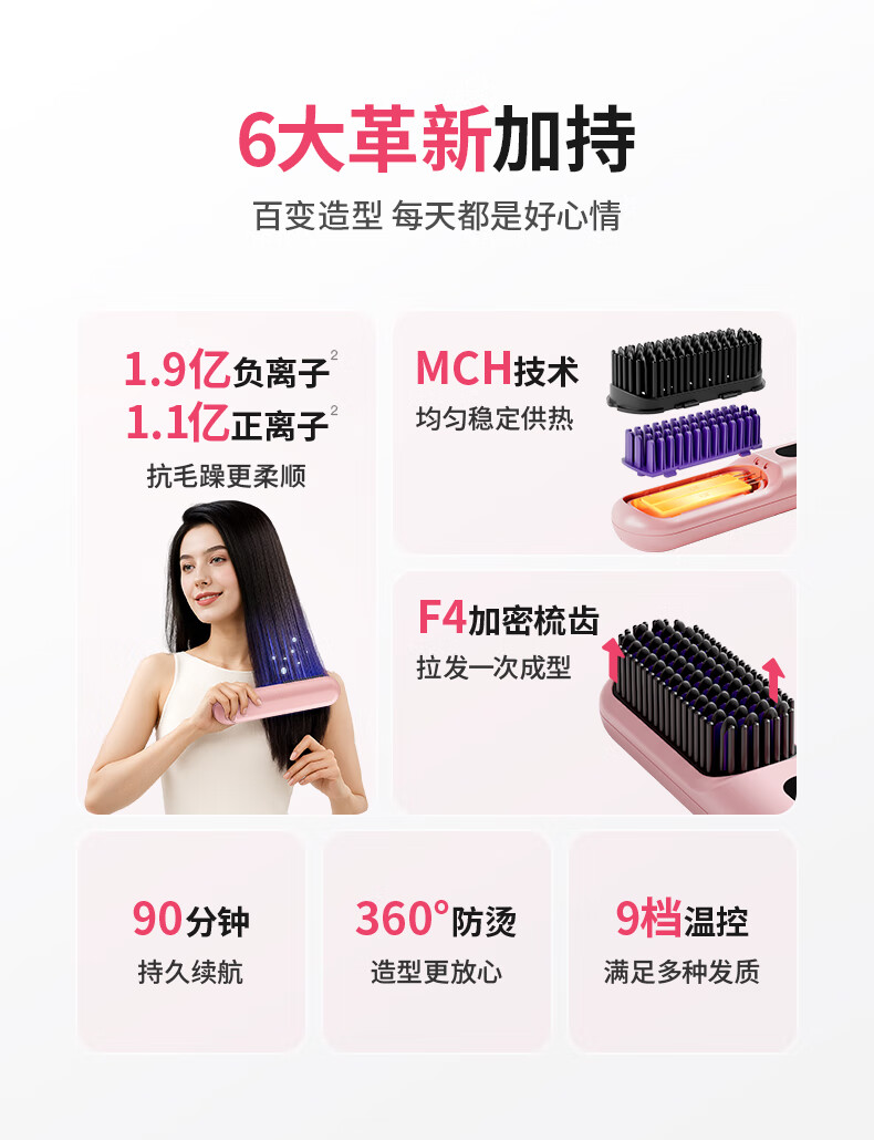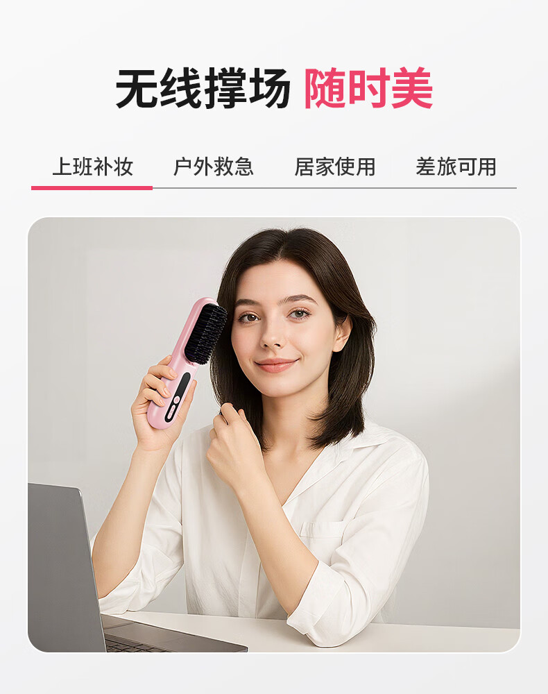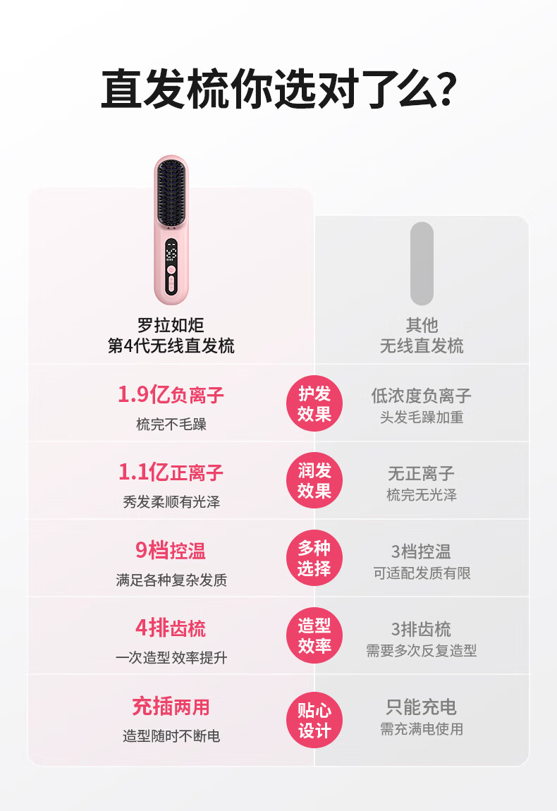 罗拉如炬【圣诞礼物】第4代无线直发梳负离子不伤发便携卷直两用蓬松梳高颅顶持久造型梳送女友节日送礼 【升级4代无线款】3亿正负离子养护