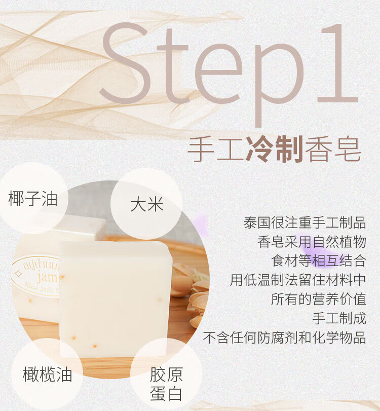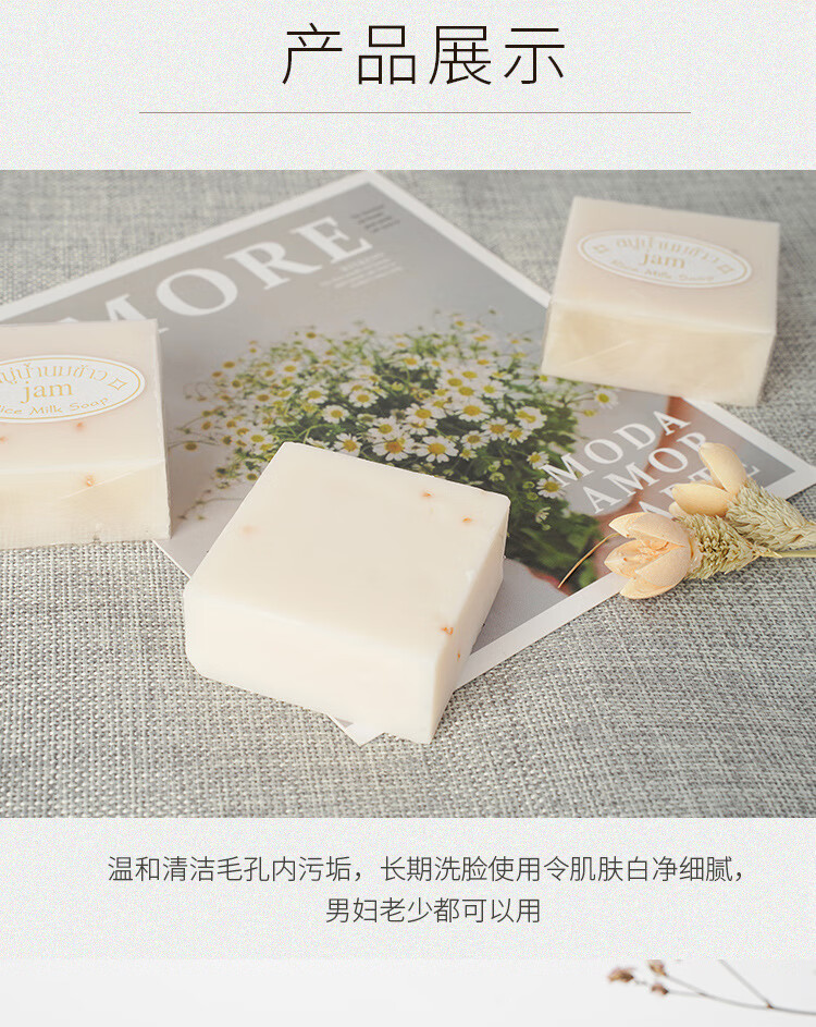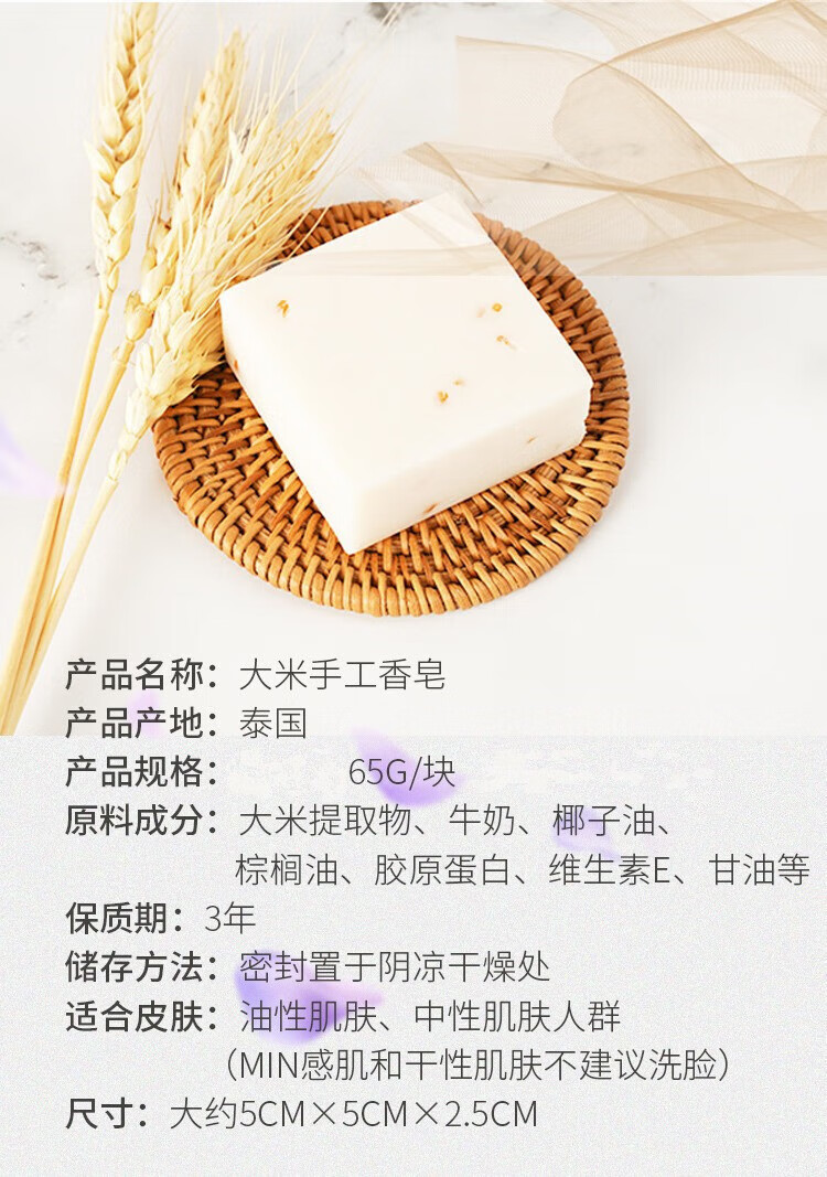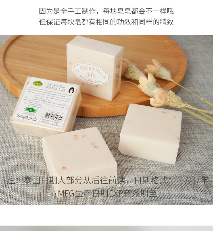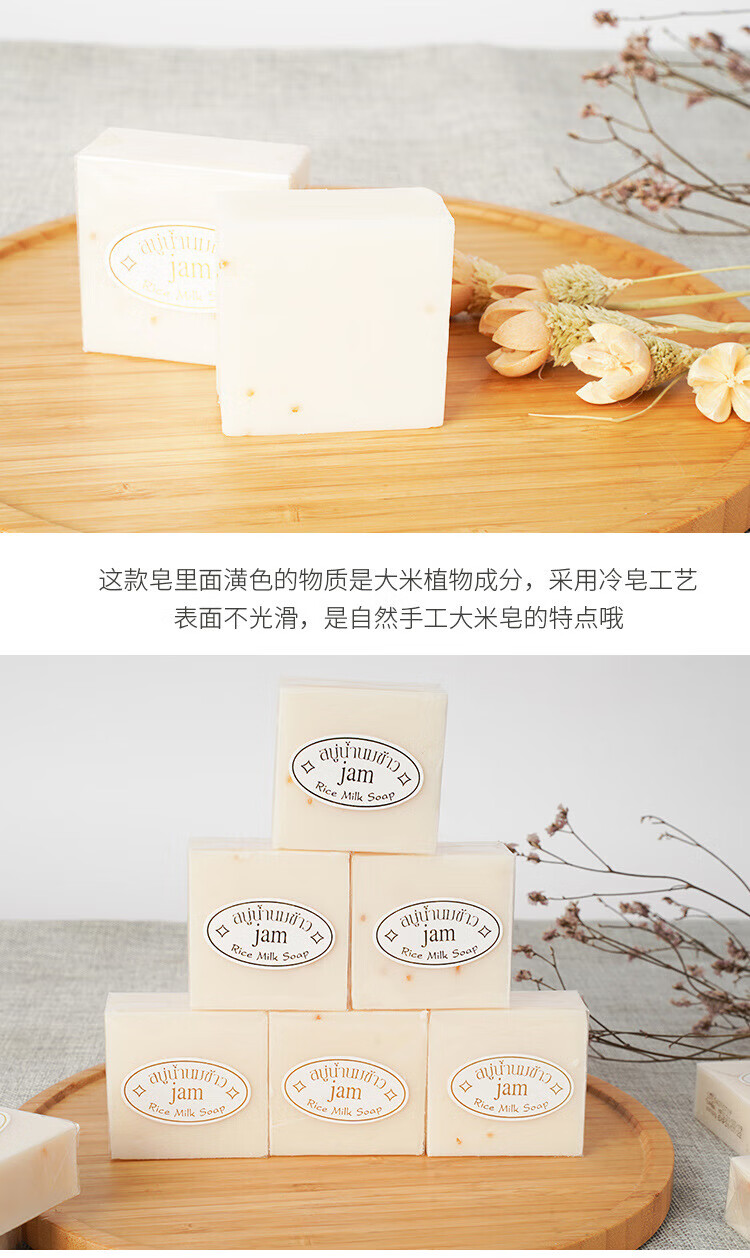 Jam泰国jam大米皂香皂手工皂米浆天然香米洁面皂洗手洗脸沐浴清洁 JA JAM大米皂65g/块【6块装】
