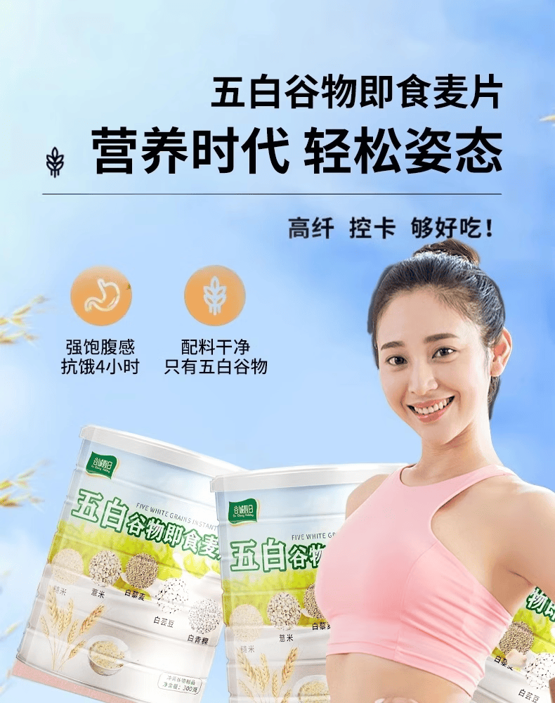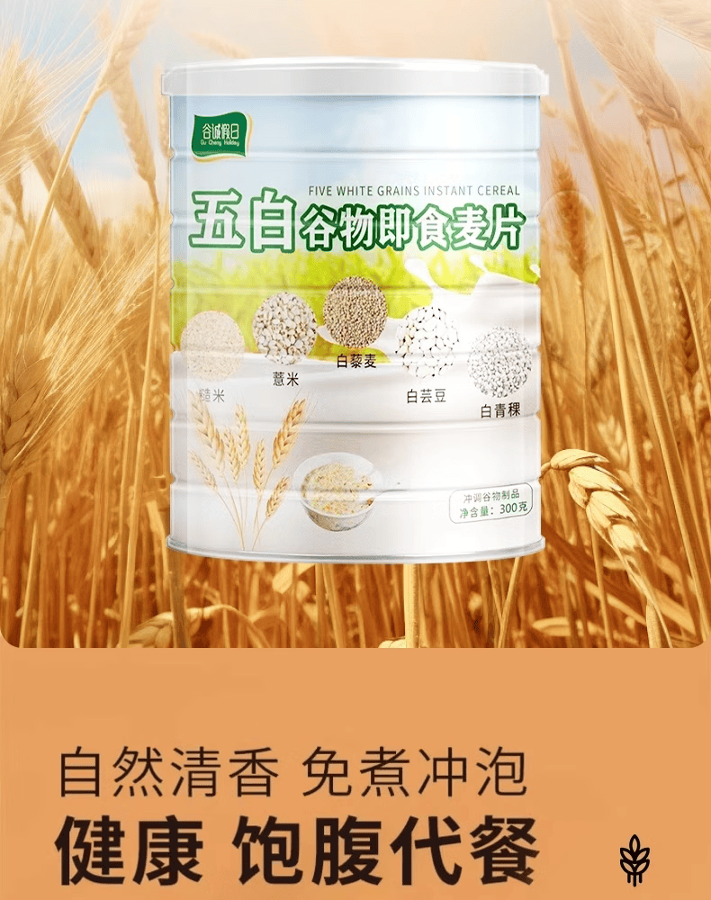 谷诚假日五白谷物即食麦片搭减肥燕麦片无糖降控血糖薏米白青稞芸豆膳食病 【注意:3罐及以上】赠送杯勺一套【勿拍】 京官方东店自旗舰营正品