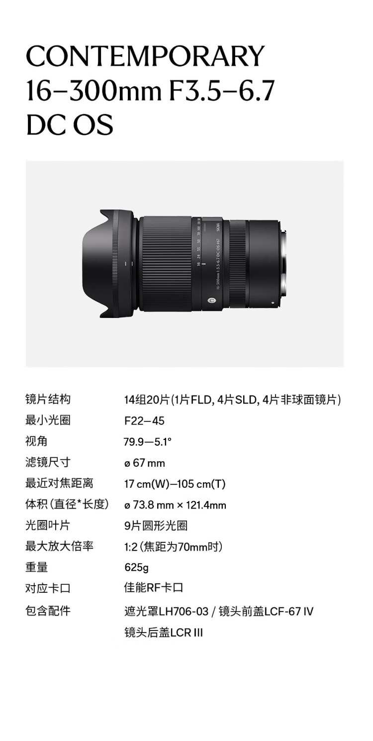 适马(SIGMA)16-300mm f3.5-6.7 DC OS |Contemporary 半画幅 远摄变焦镜头 旅游风光人像(RF卡口)
