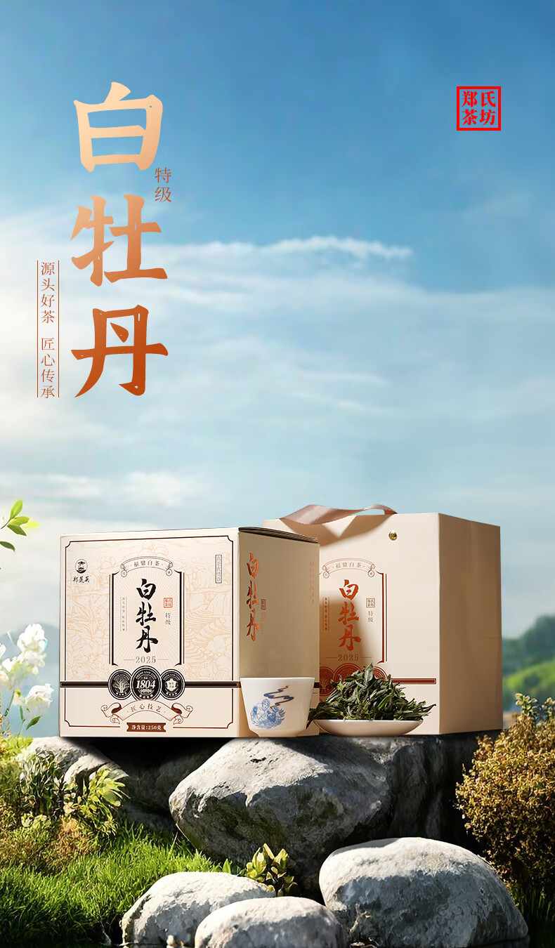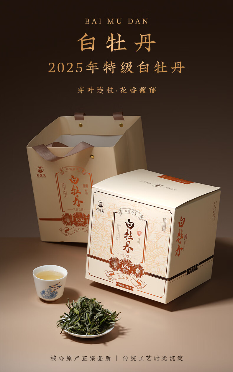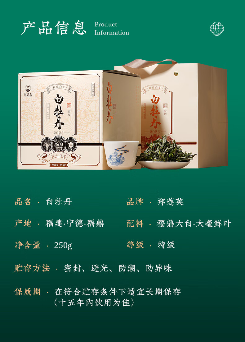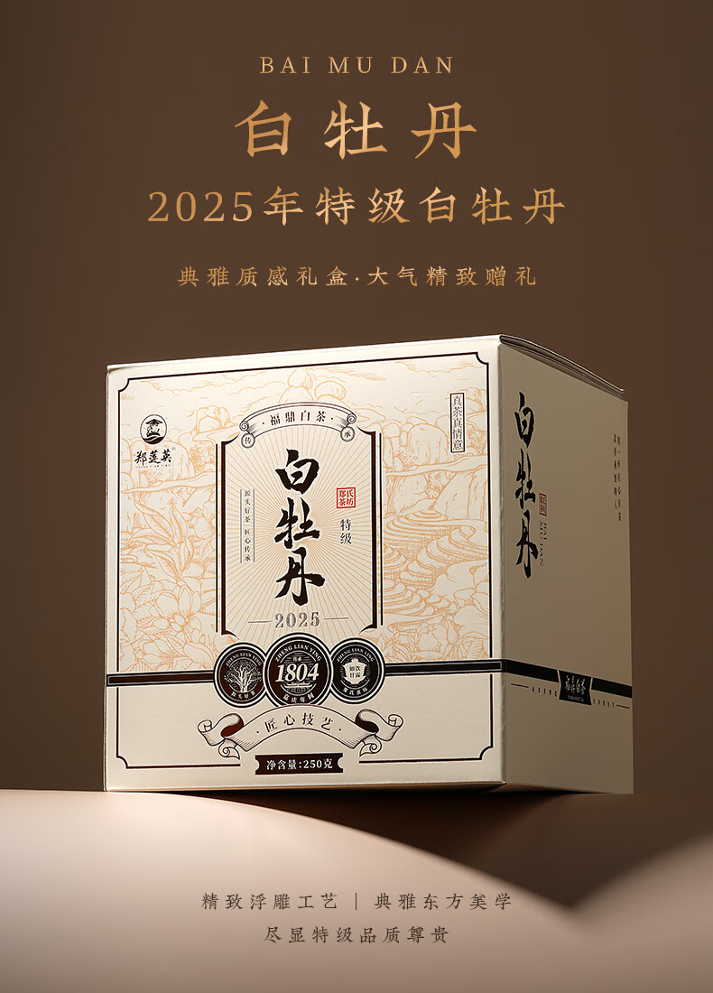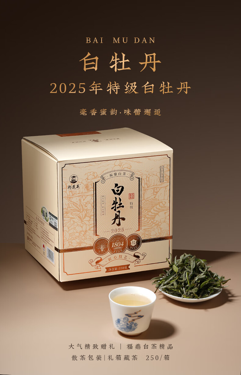 郑莲英茶叶2025年特级白牡丹福鼎白茶老白茶散茶节日送礼礼盒礼物250g