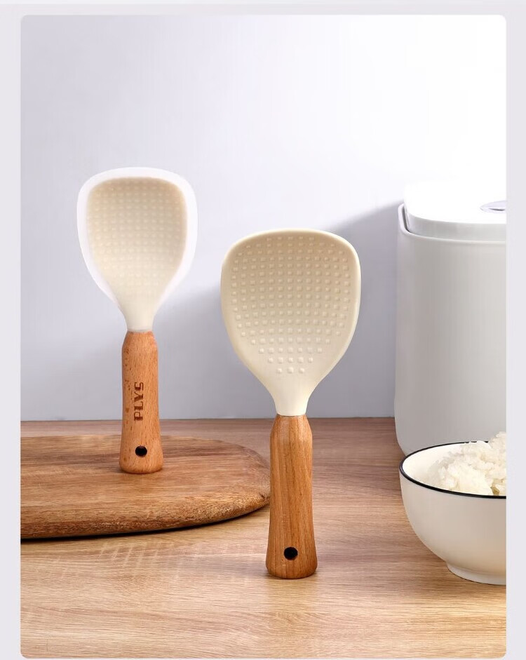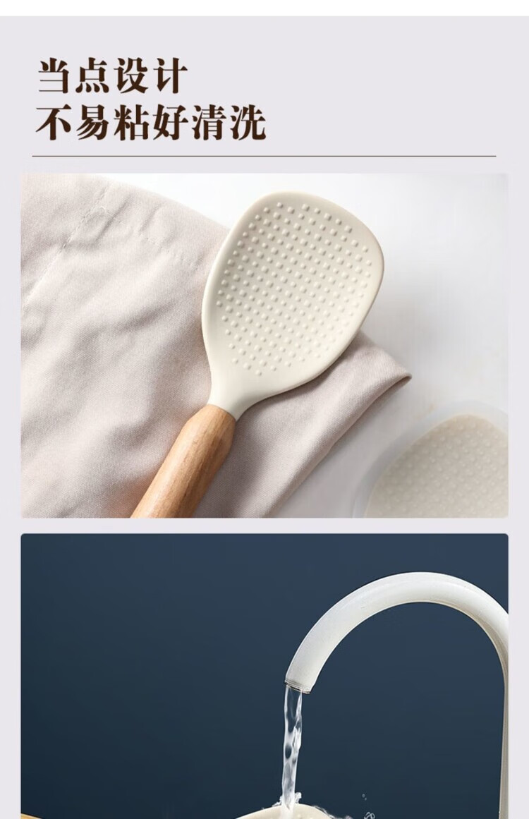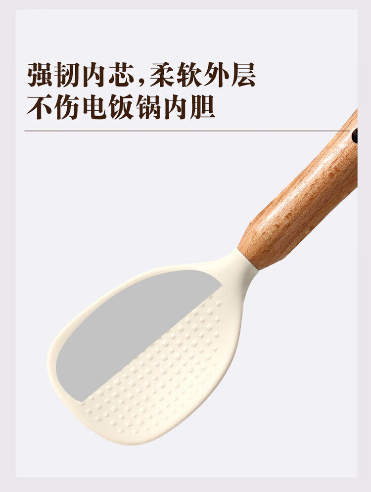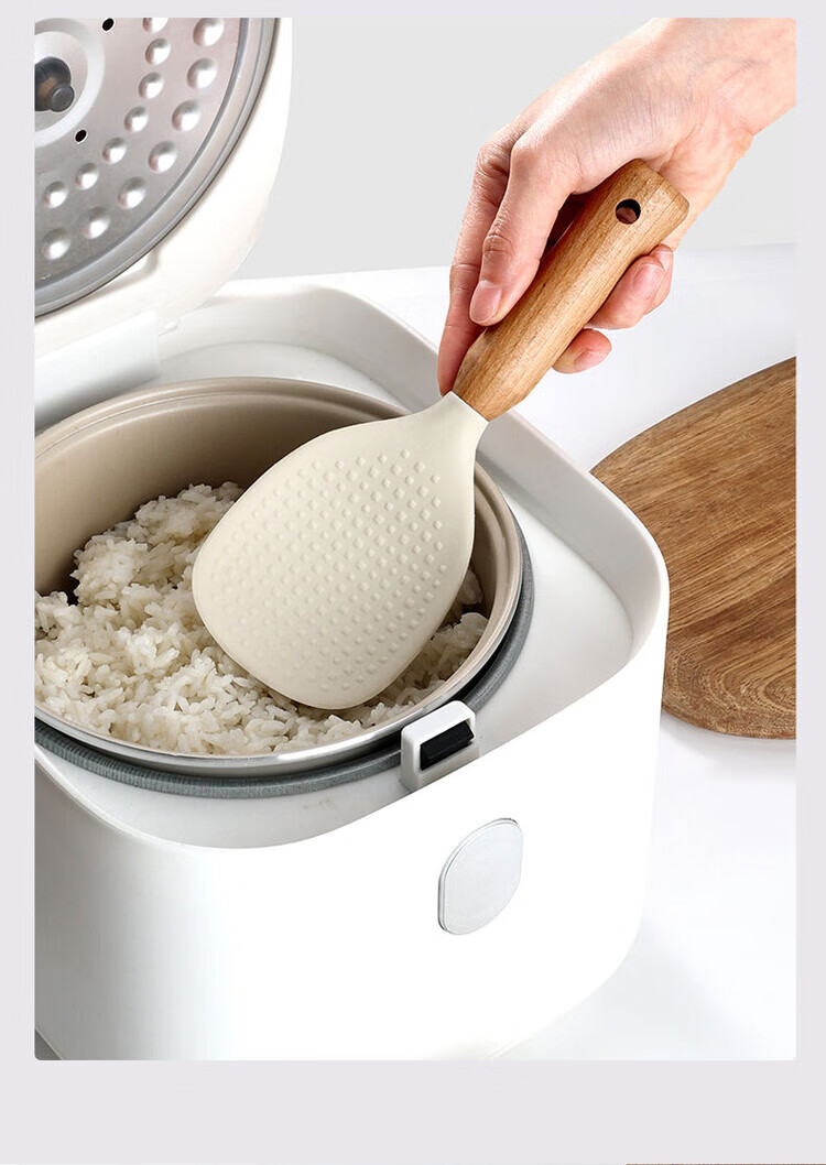 花沐禧硅胶饭勺子不粘米饭精致高档家用可立式电饭煲专用盛饭铲子食品级 (硅胶饭勺-可站立-防烫木柄】