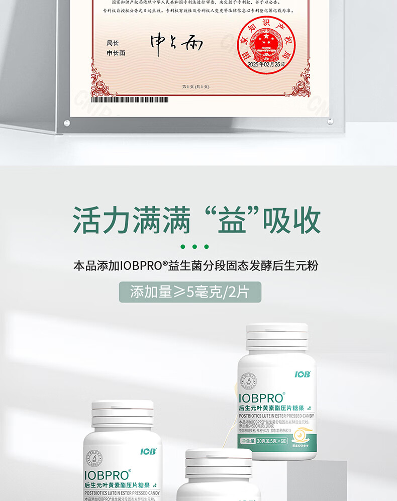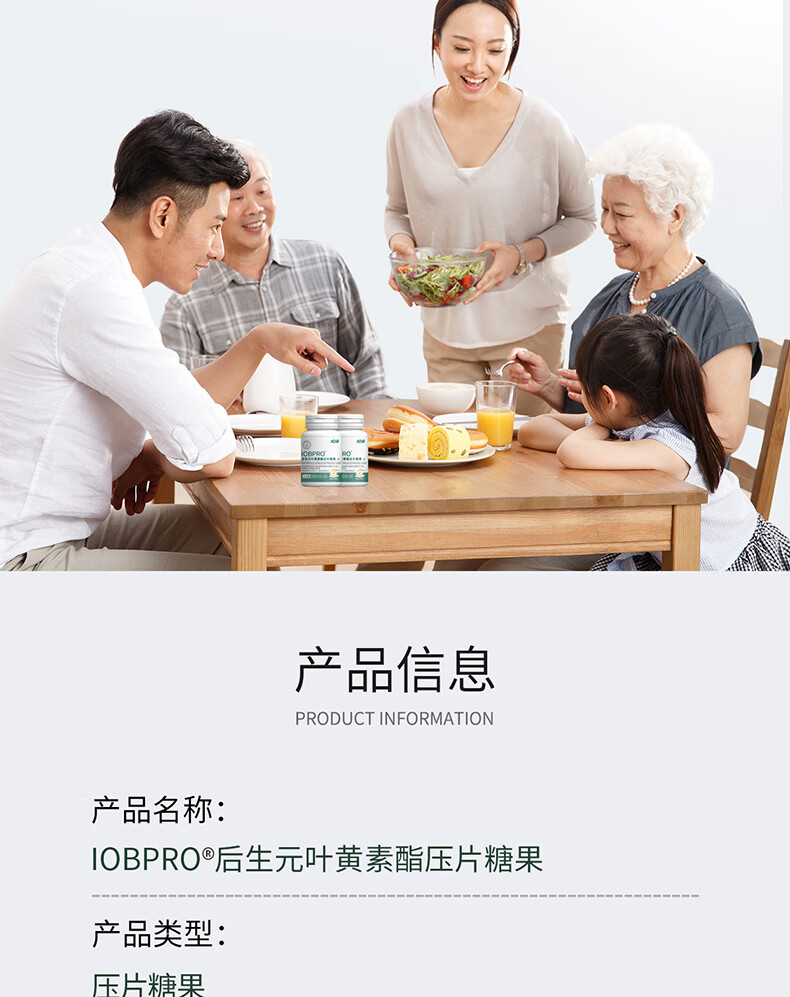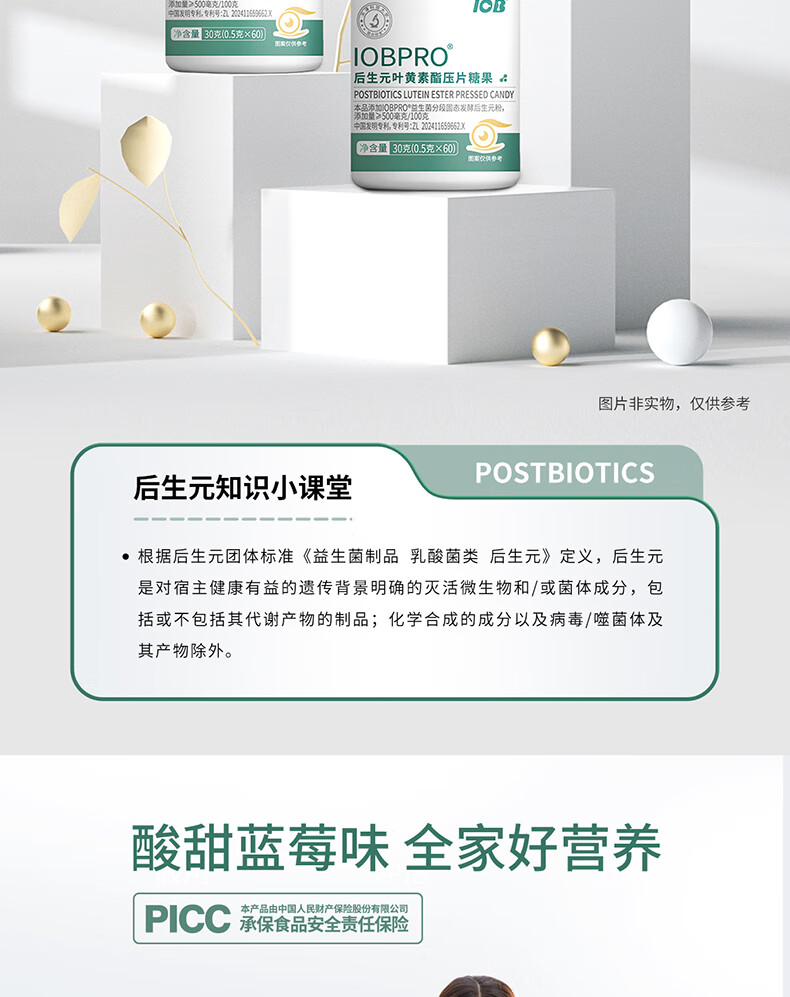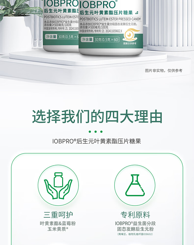 IOBPRO后生元叶黄素酯压片糖果蓝莓粉玉米黄质胡萝卜素 1瓶装新客立减/0.5g*60片