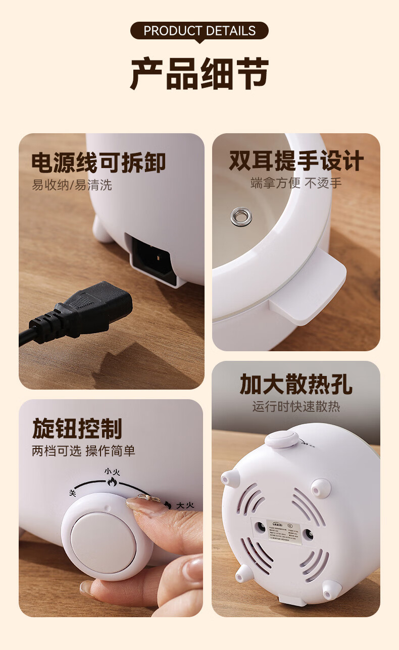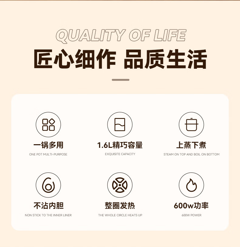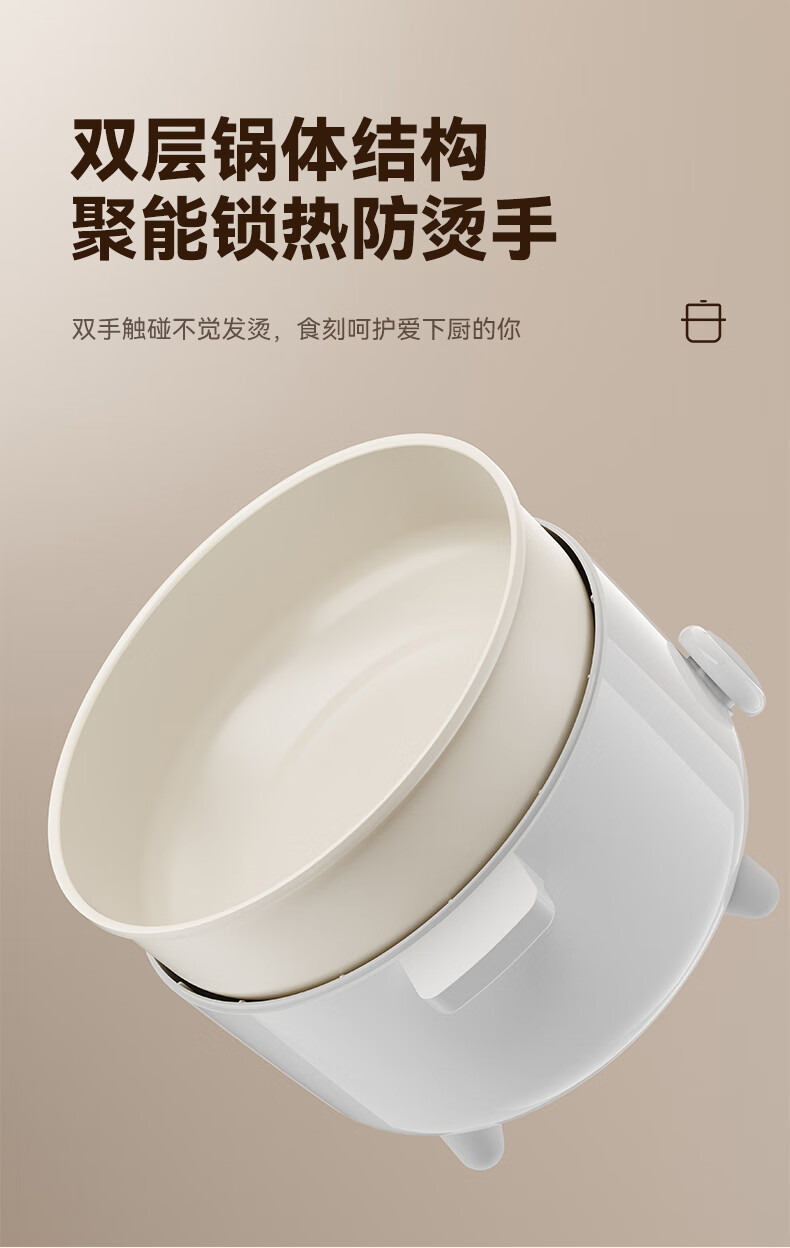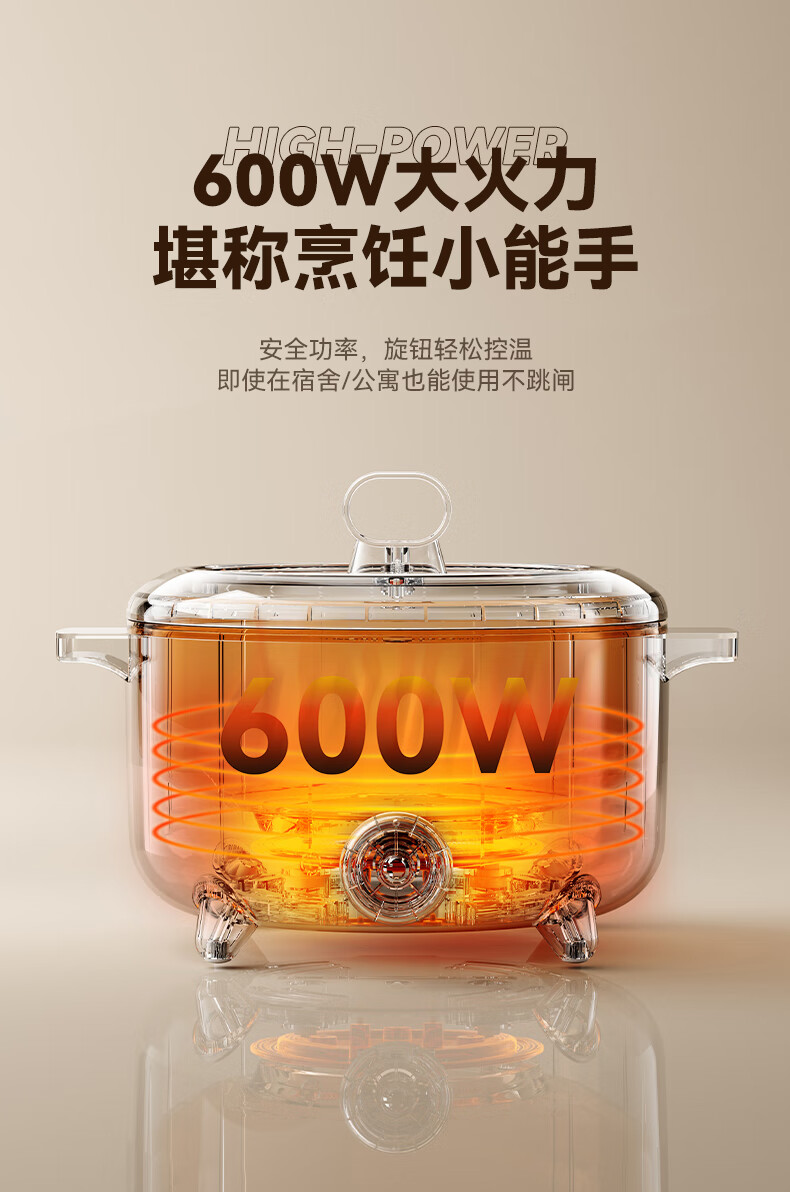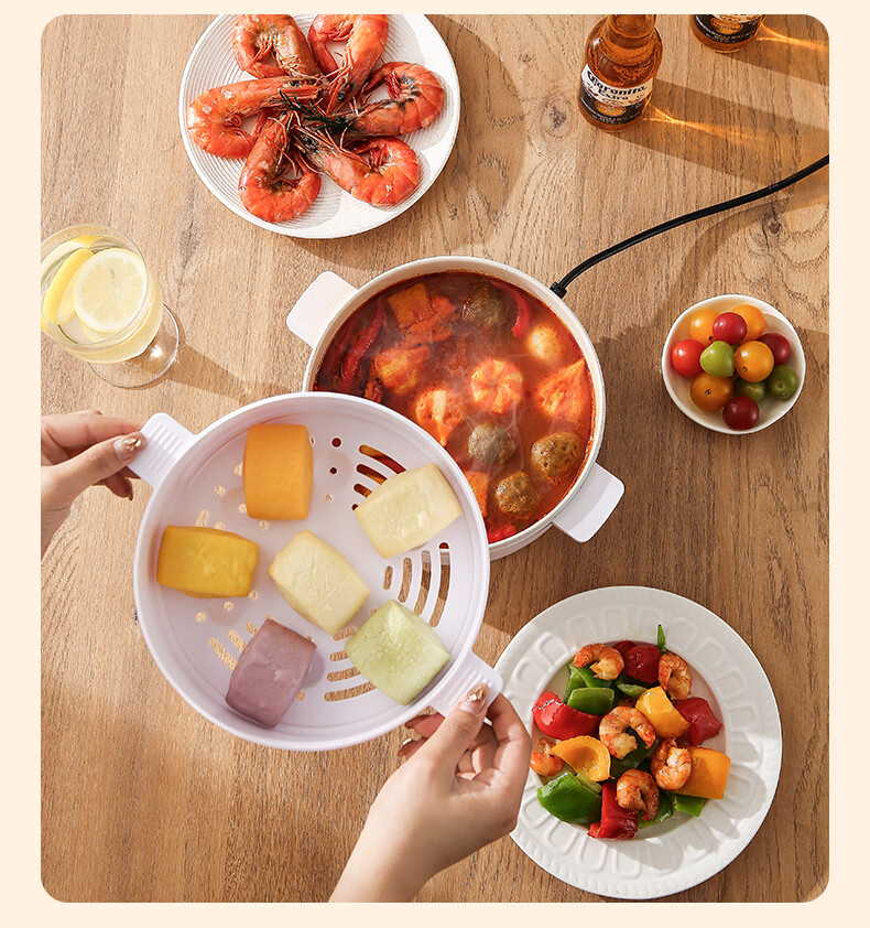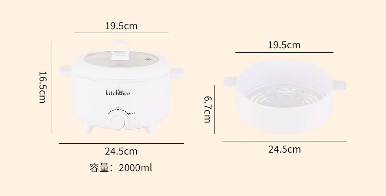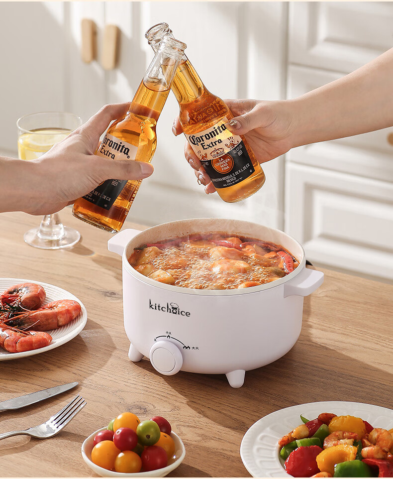 KITCHOICE电煮锅 电热锅 小电锅 宿舍小锅 学生寝室一体泡面小火锅多功能锅煮蛋器宿舍用小电锅煮泡面小锅 2L 豪华款【带竹蒸笼】