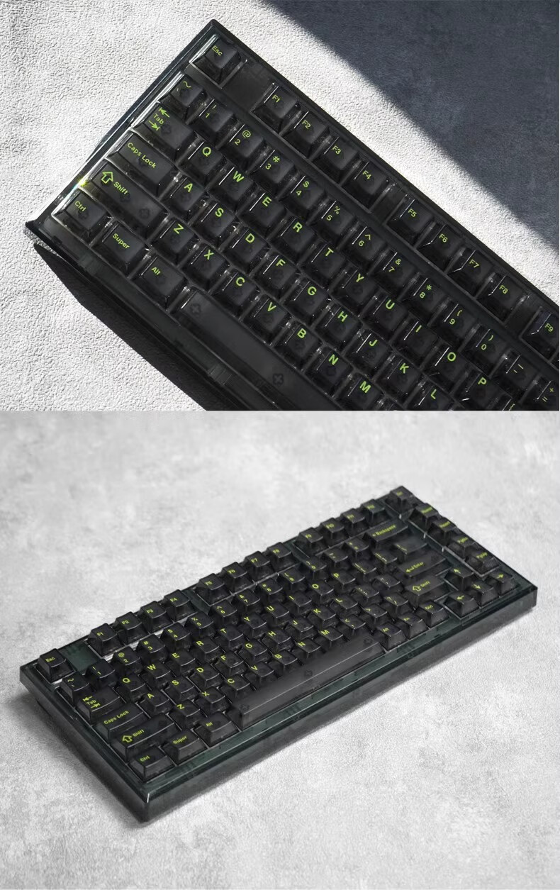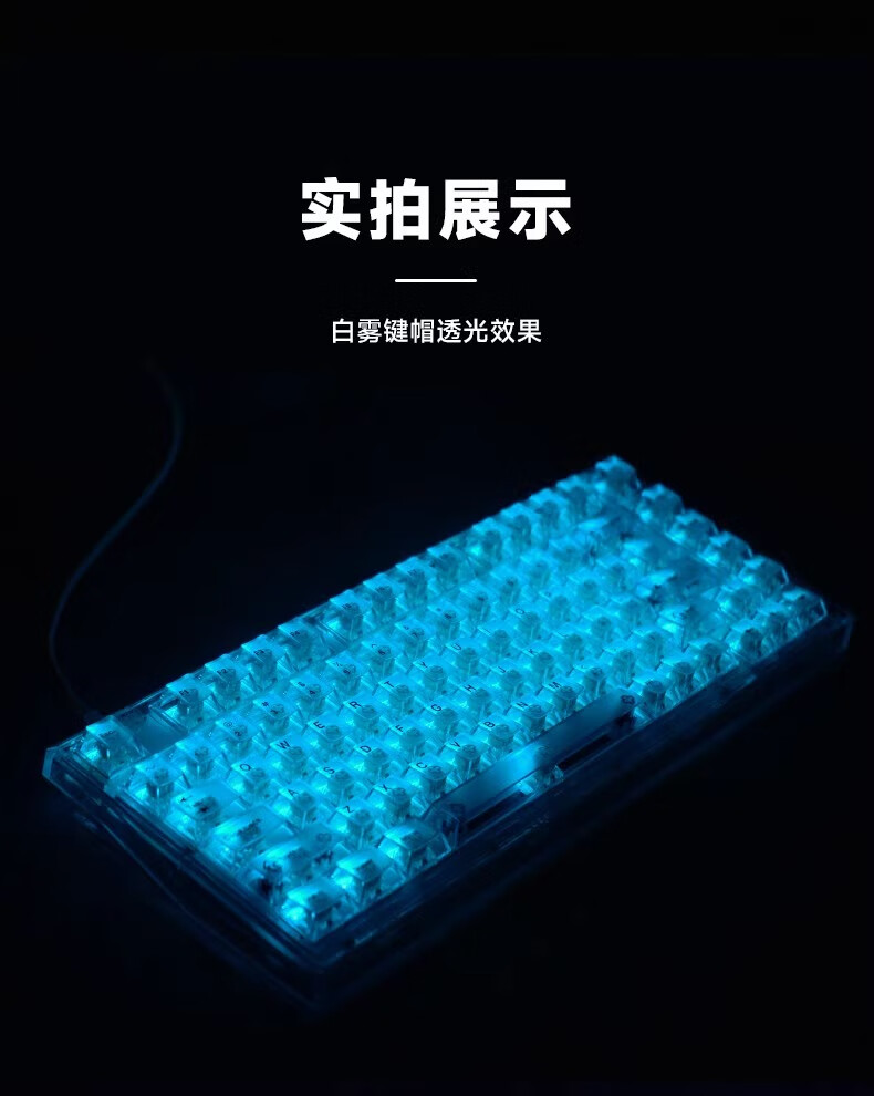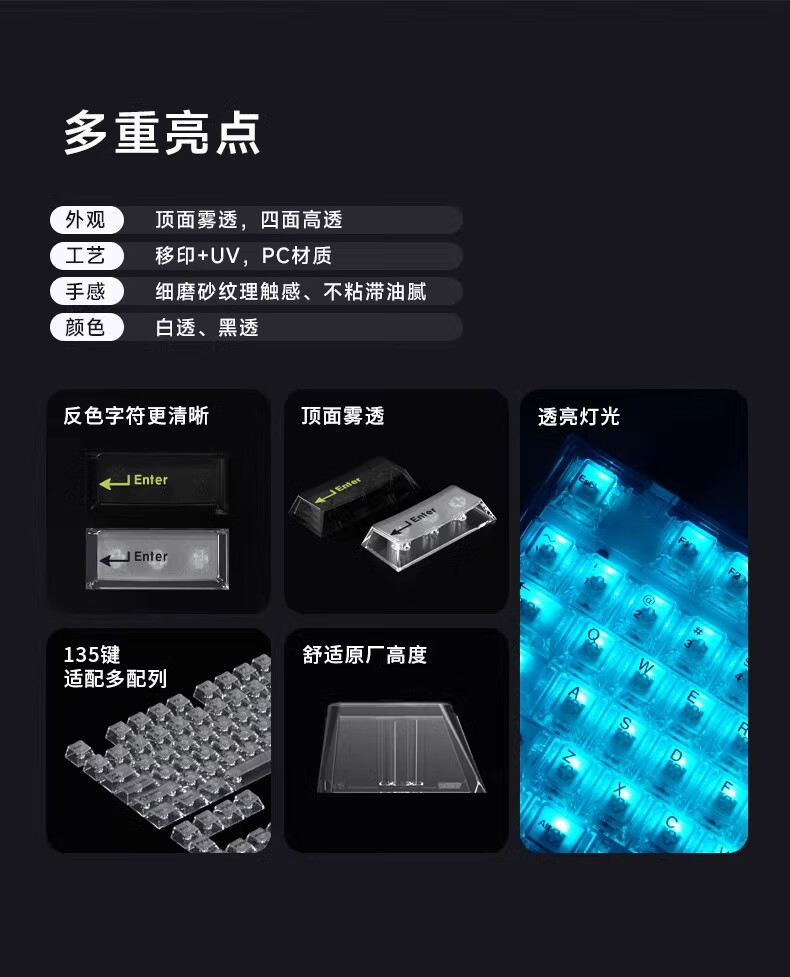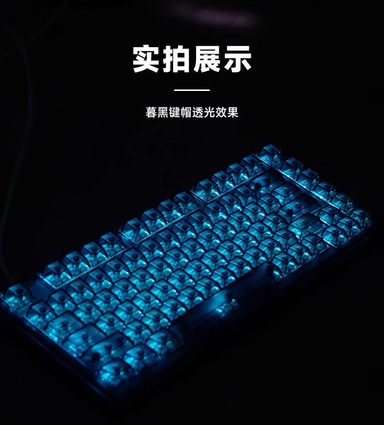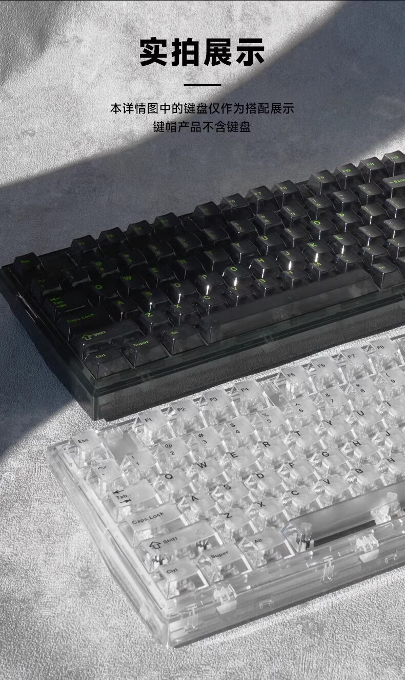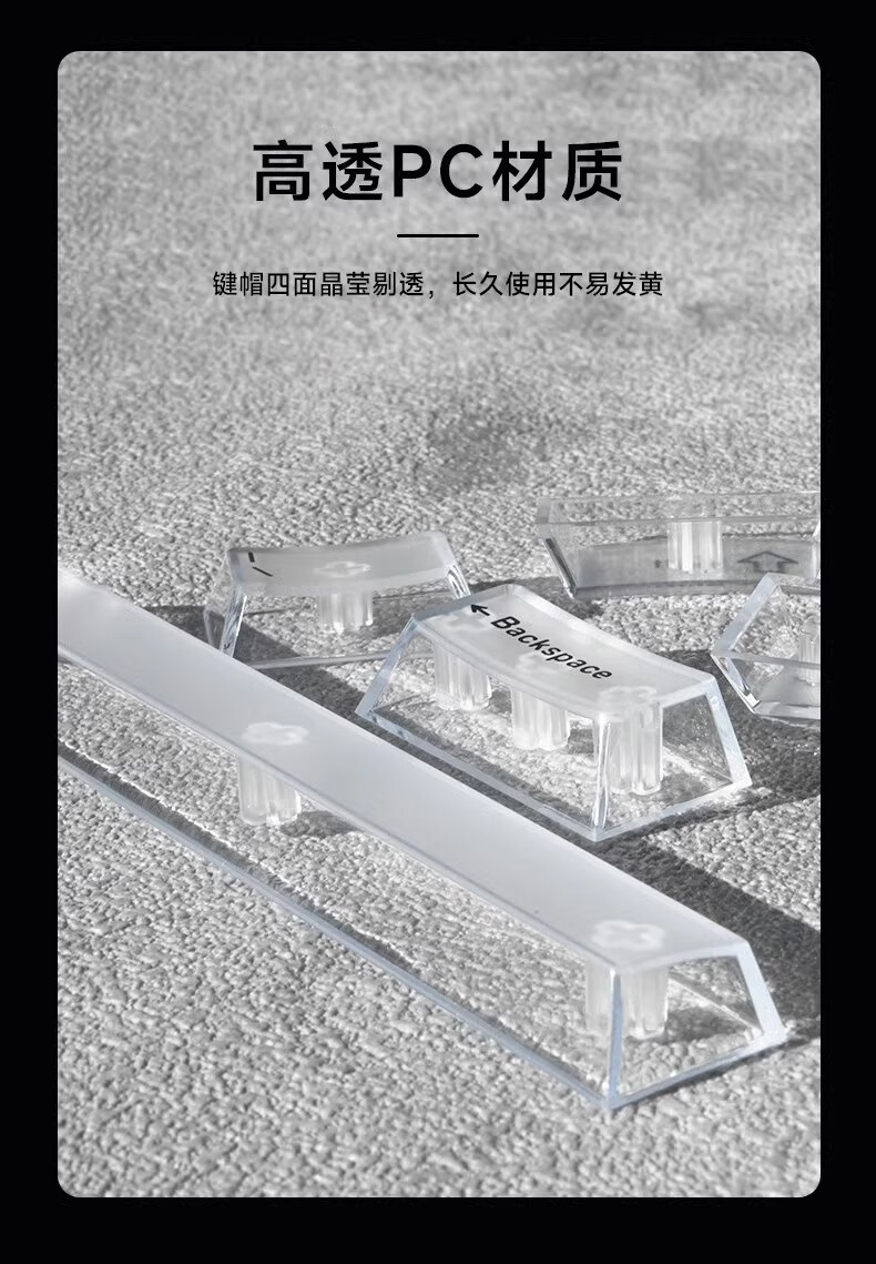 腹灵透明键帽白雾黑 PC材质原厂高度87键 全透不打滑不油键帽冰晶 白雾透灌装 87颗 【适配87键】
