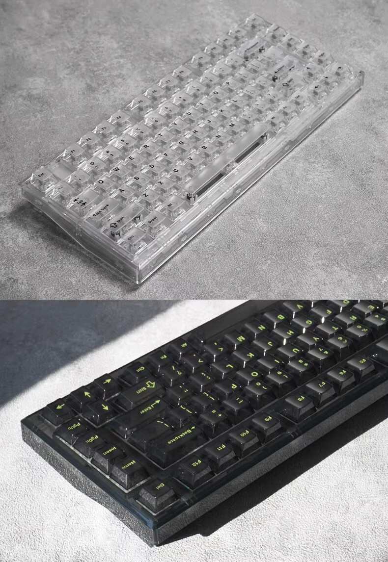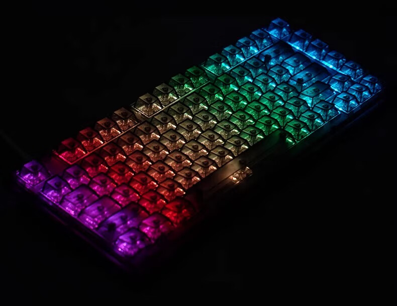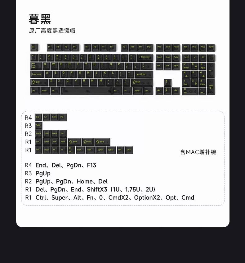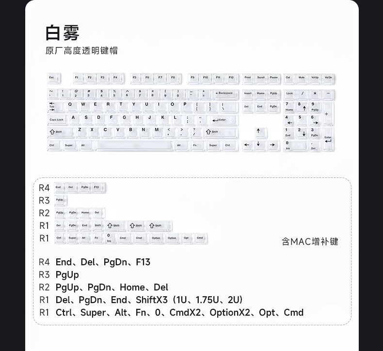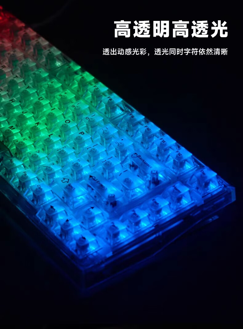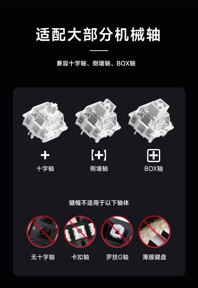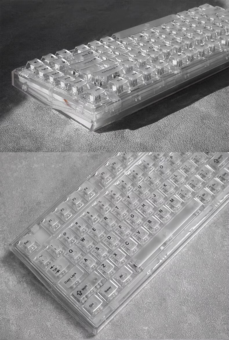 腹灵透明键帽白雾黑 PC材质原厂高度87键 全透不打滑不油键帽冰晶 白雾透灌装 87颗 【适配87键】