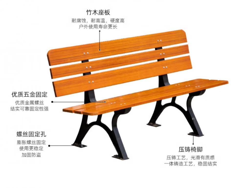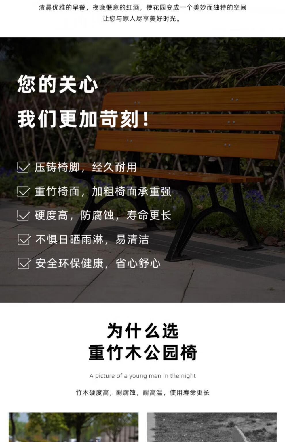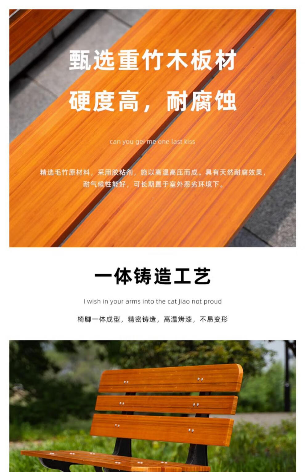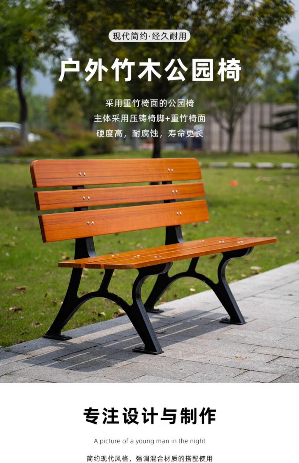 语森忆室外防腐木竹木休闲座椅户外公园椅长椅庭院双人靠背长条凳子 全竹木椅面有靠背120cm 防腐会更