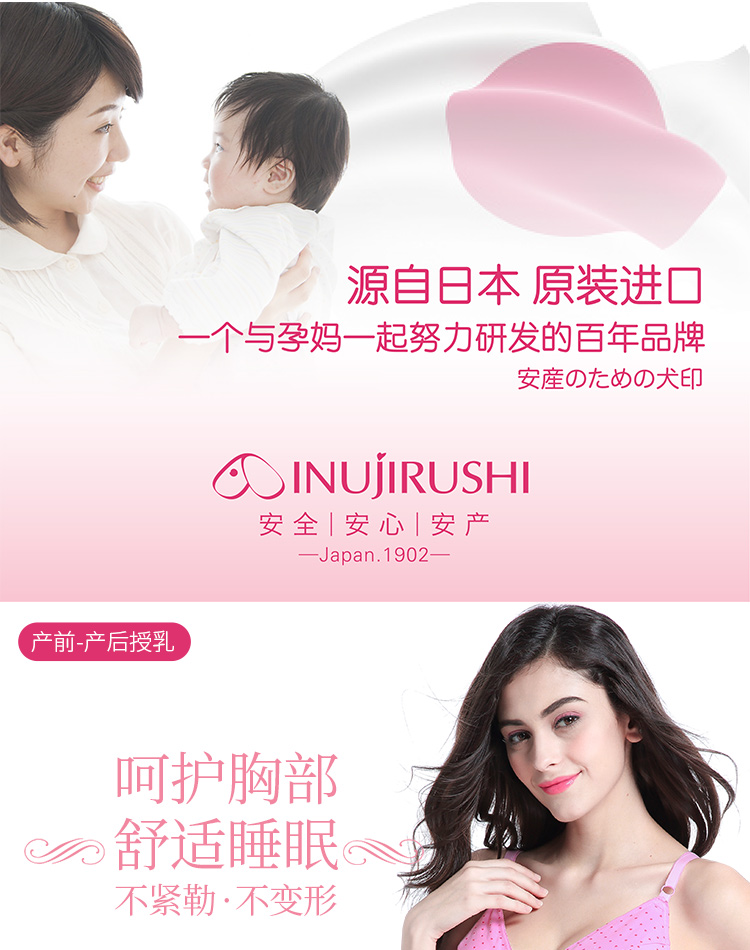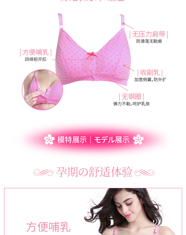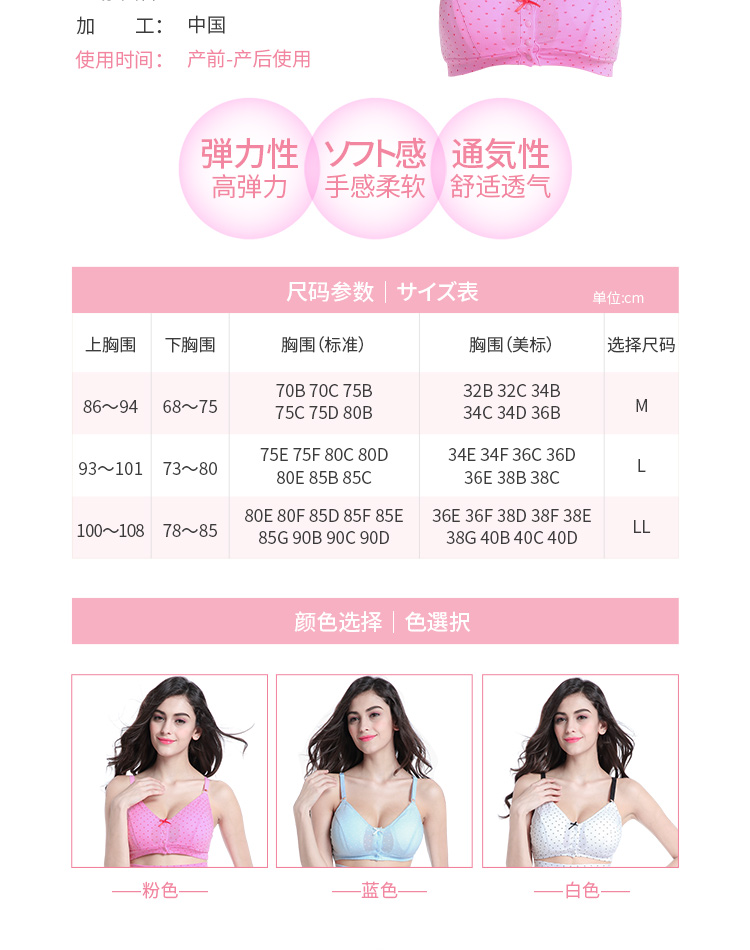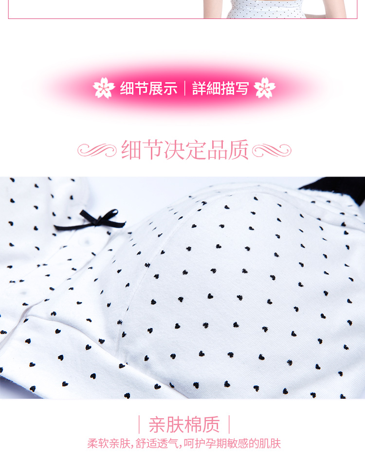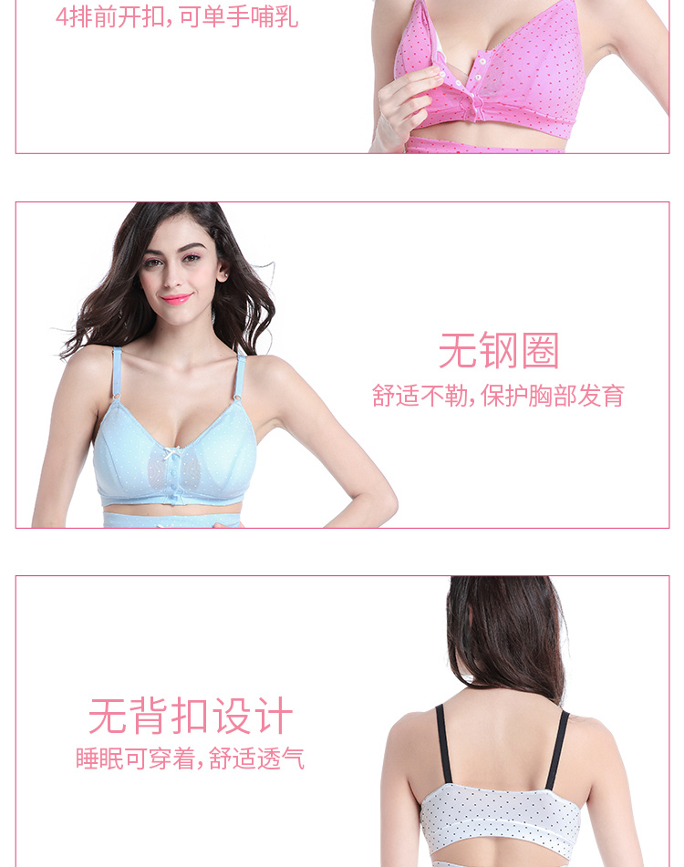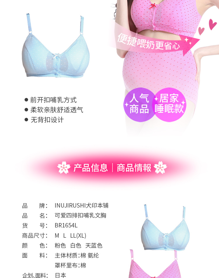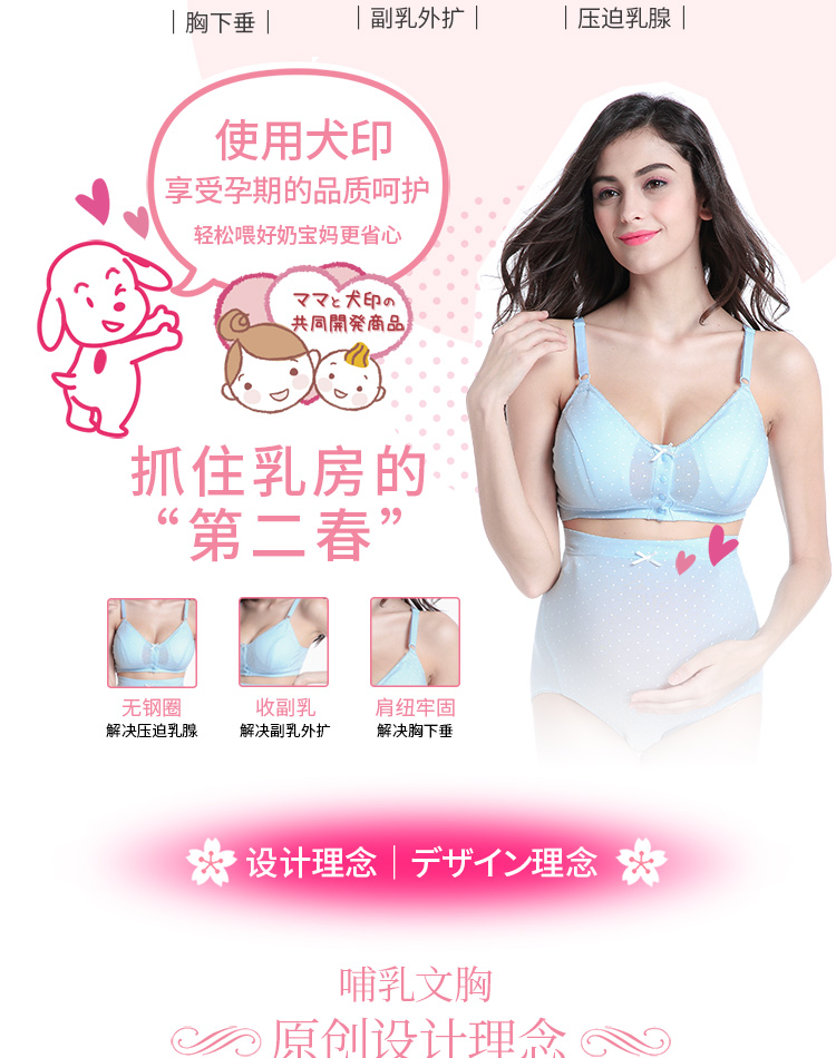 犬印本铺(INUjIRUSHI)孕产妇可爱波点哺乳文胸内衣产前产后通用无钢圈斜开式喂奶胸罩 天蓝色 M