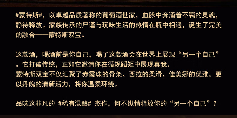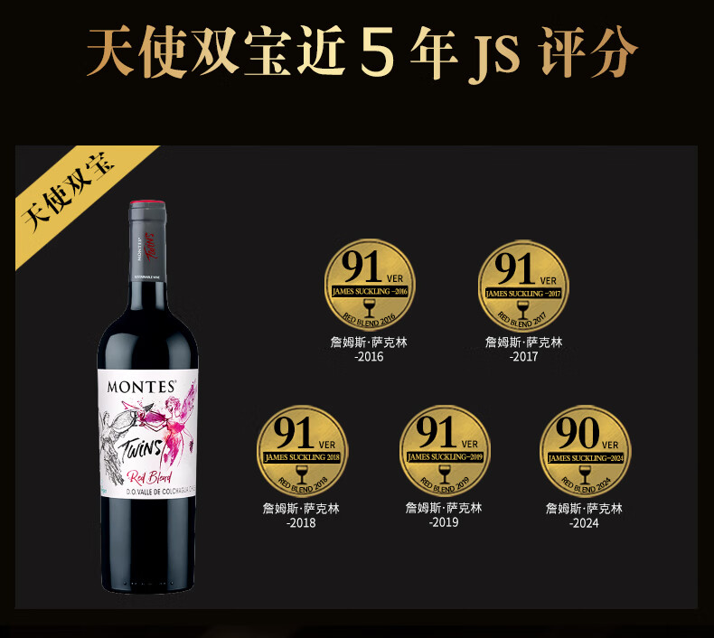 蒙特斯JS评分91双宝混酿干红葡萄酒750ml智利原瓶进口新年礼盒 双宝混酿750ml单支装