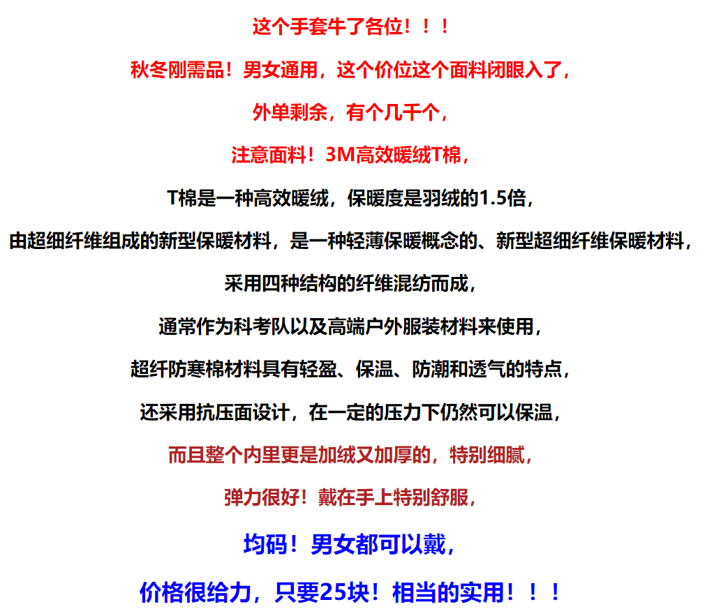 原单 3M高效暖绒抗寒零下20度 比羽绒更保暖户外防风男女手套 黑色 均码