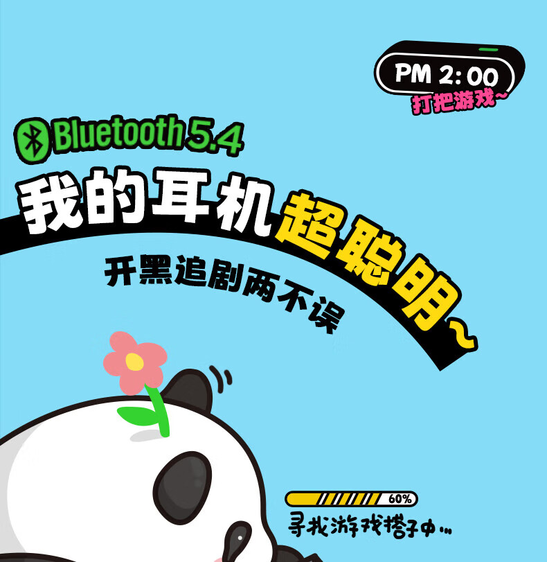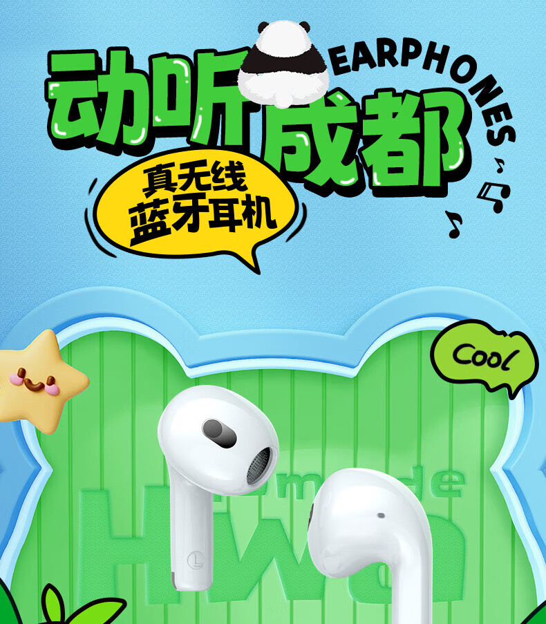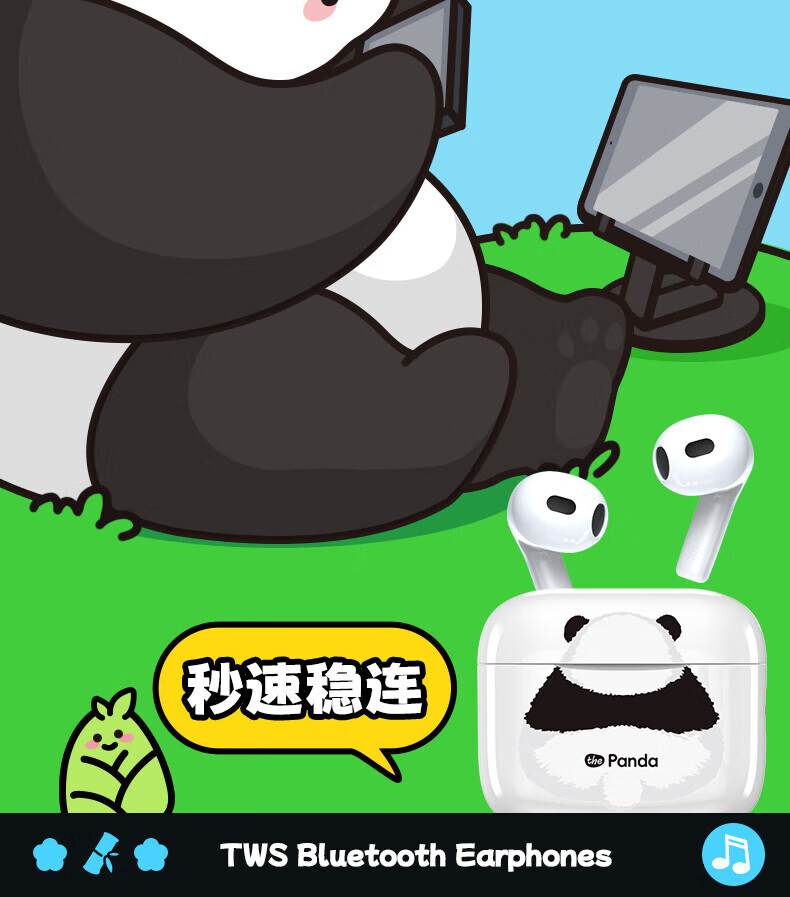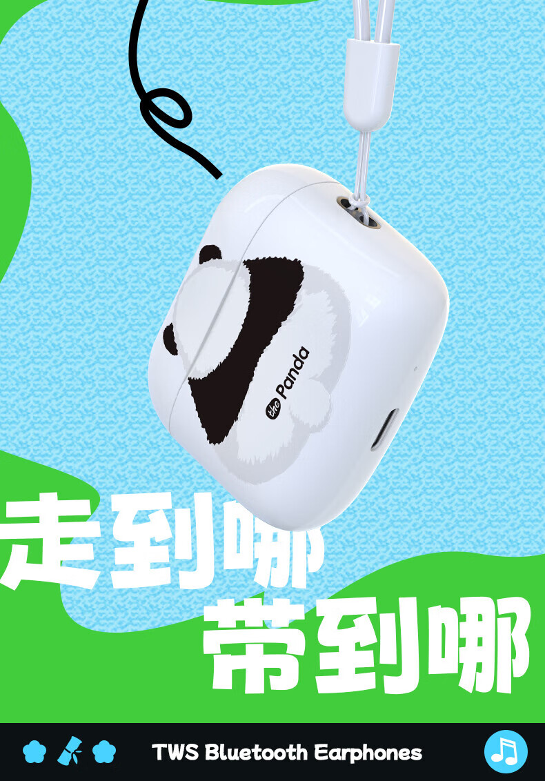 品胜动听成都 真无线蓝牙耳机 文创熊猫花花蓝牙5.4无线耳机 稳定通话降噪查找定位长续航 【文创版/熊猫卡通/动听成都】
