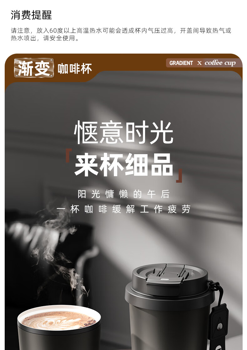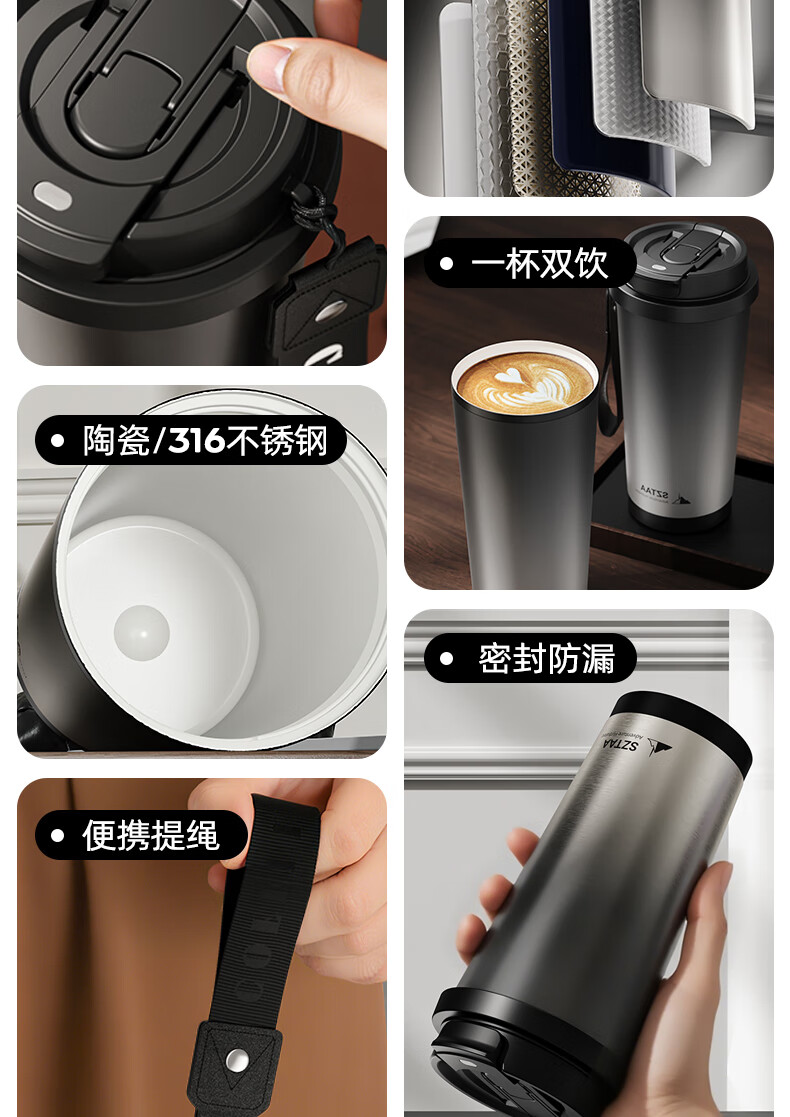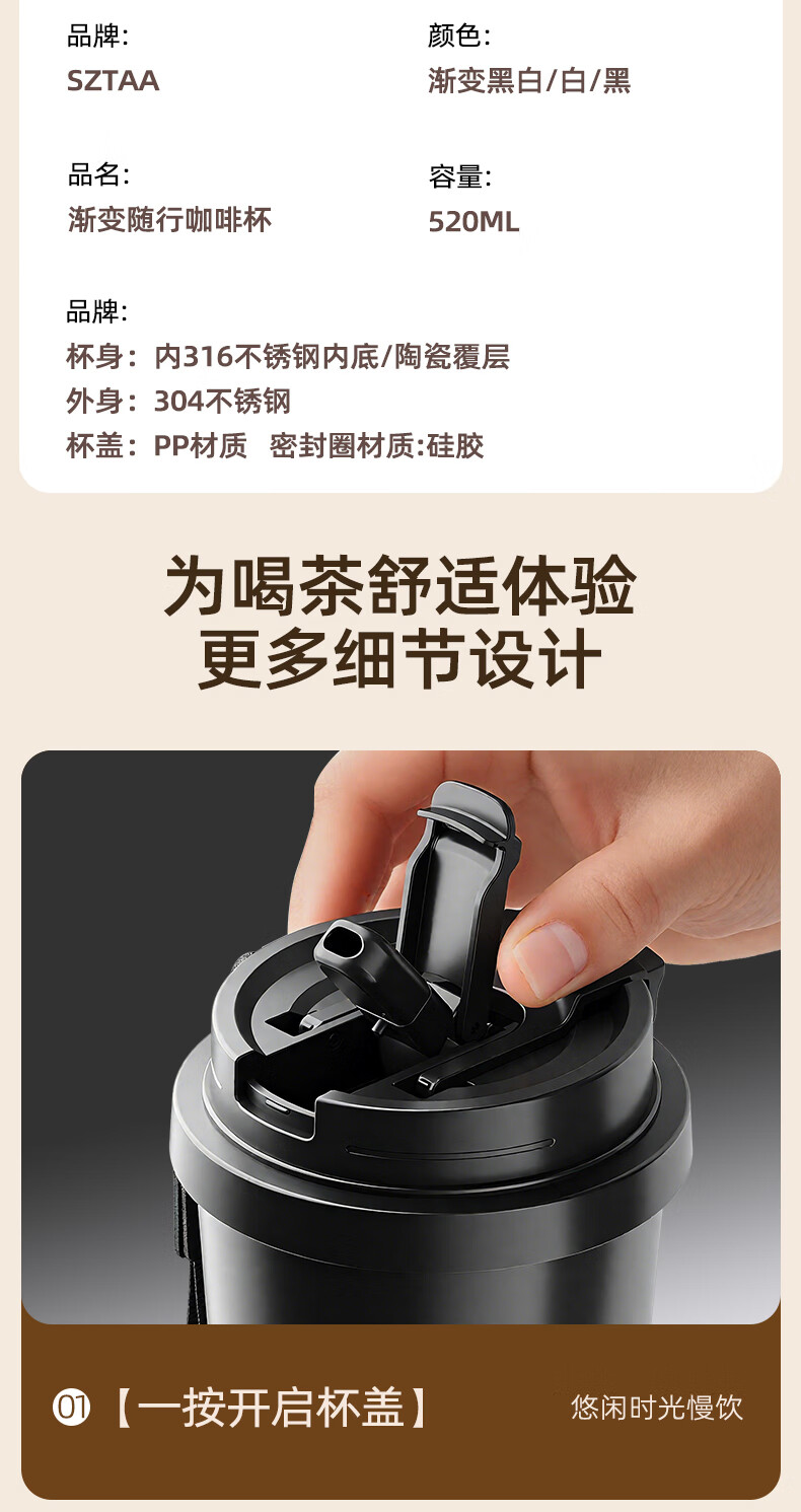 SZTAA保温杯咖啡杯大容量316不锈钢水杯高颜值男女学生杯子送生日礼物 渐变星空【抗菌316不锈钢】520ml