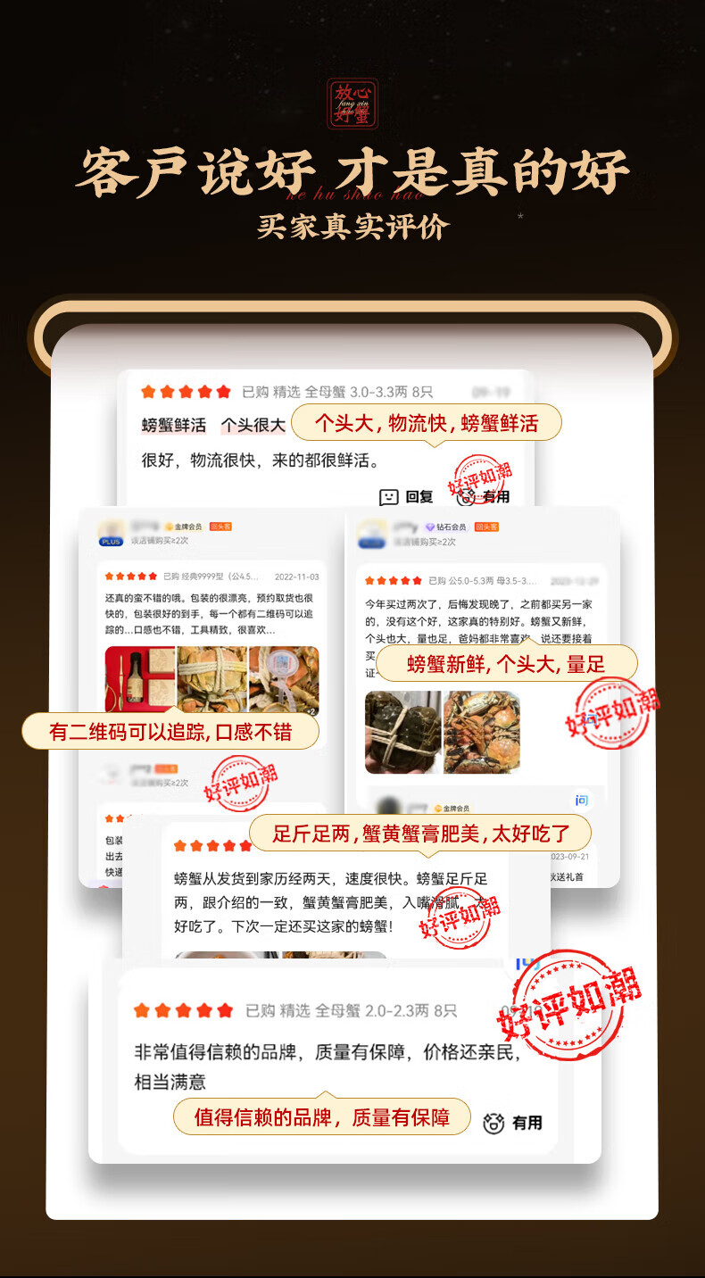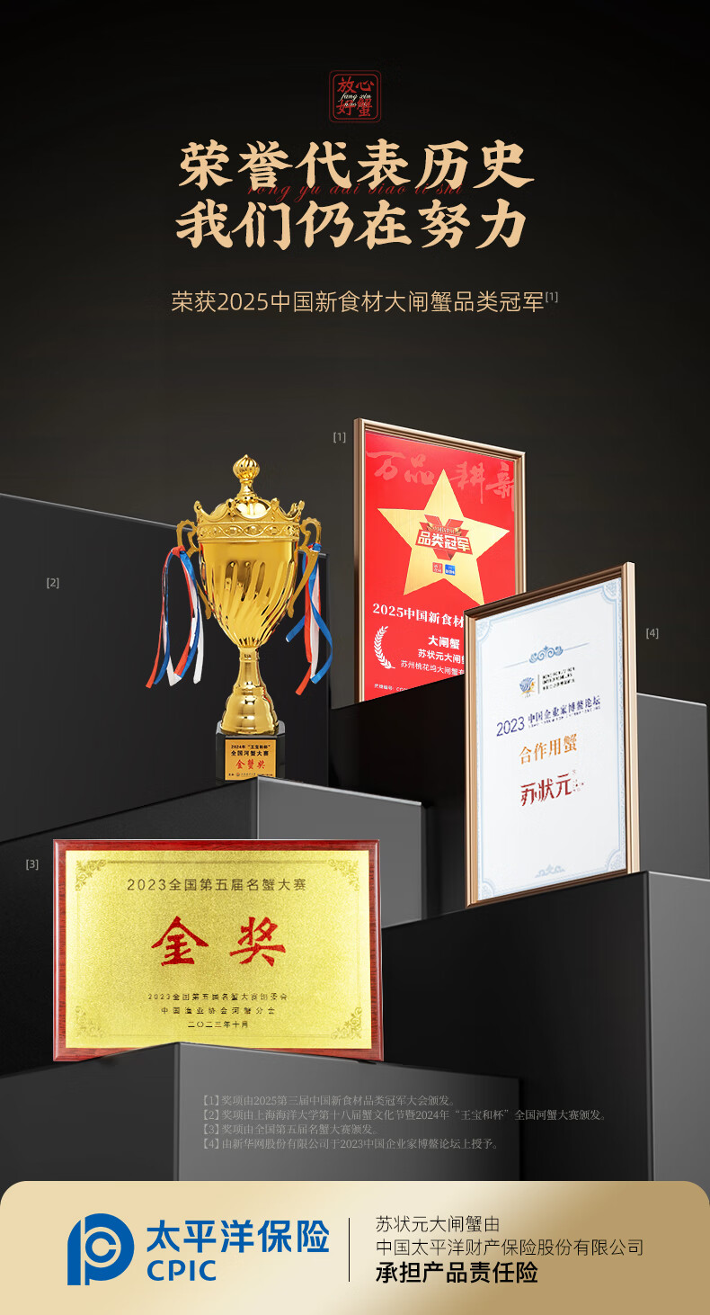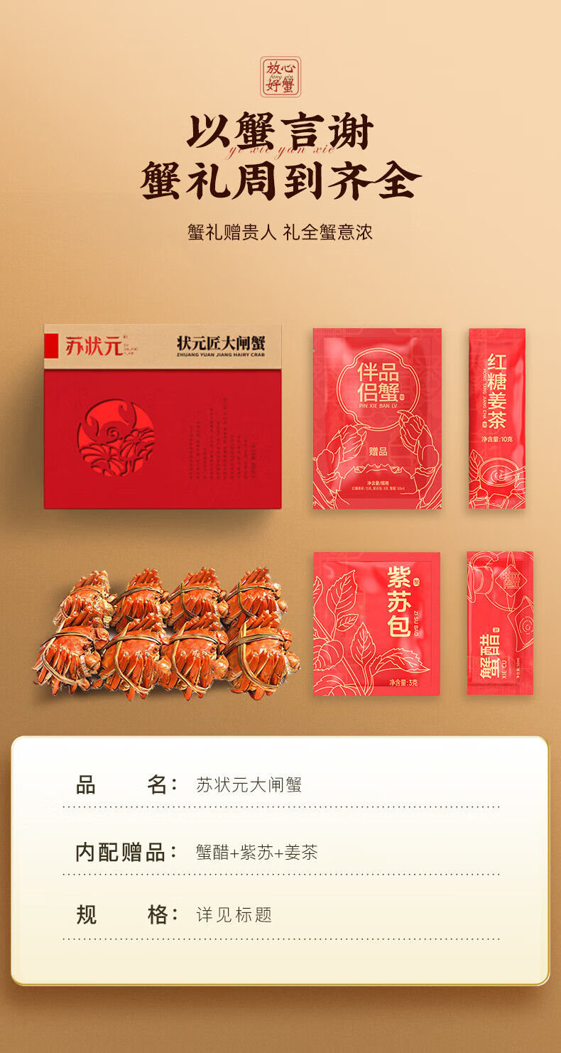 【活蟹】苏状元大闸蟹鲜活螃蟹现货去绳足重大蟹海鲜礼盒礼物 全母蟹3.0-3.3两 8只
