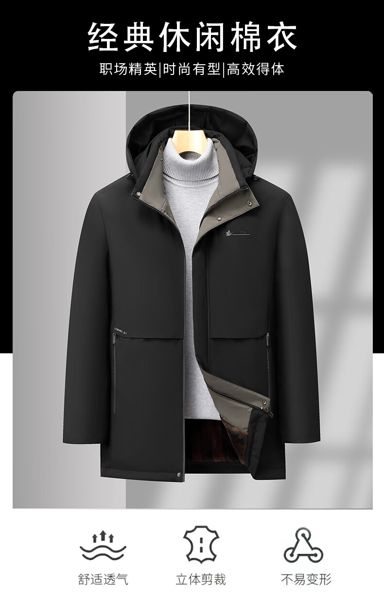 罗蒙(ROMON)棉衣外套男2025冬季中老年爸爸冬装男士加绒棉袄棉服保暖上衣服 黑色 2XL (建议体重130-145斤)