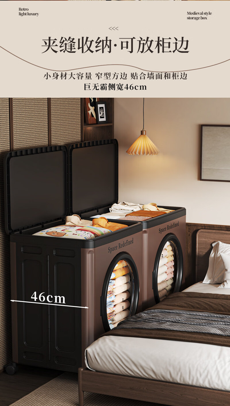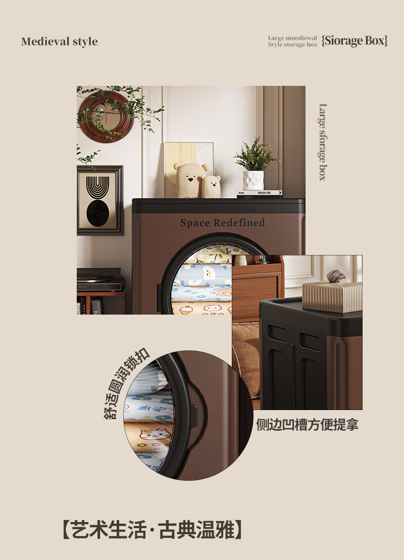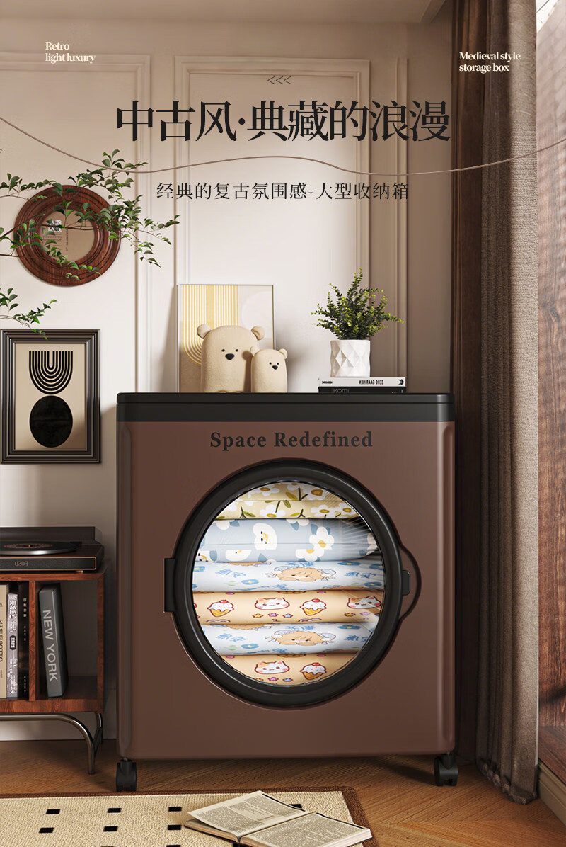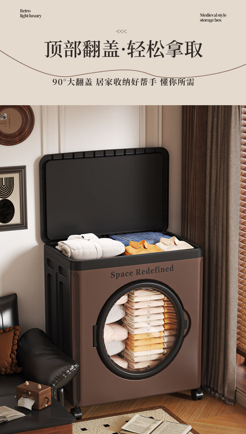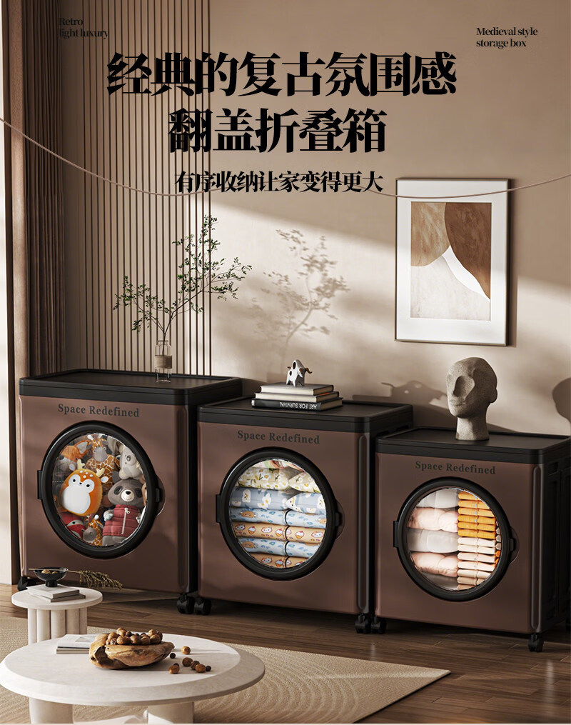 艾仕可(ASCOR)中古风收纳箱大容量家用储物箱卧室衣物客厅玩具零食可折叠翻盖箱 【顺丰包邮】中古色-大号-116L【可折叠】