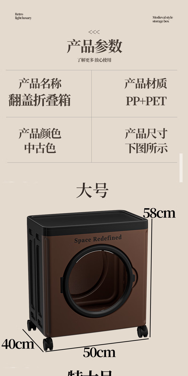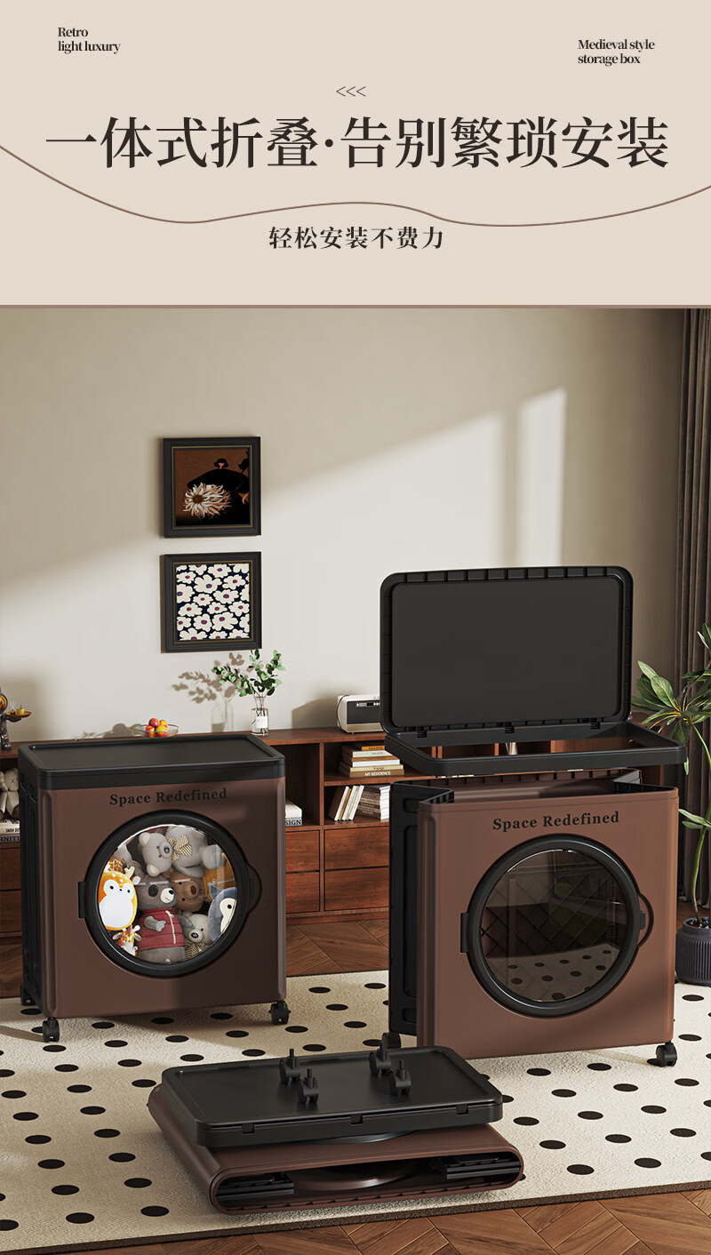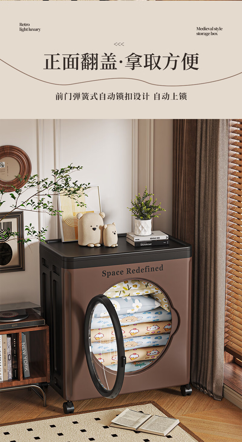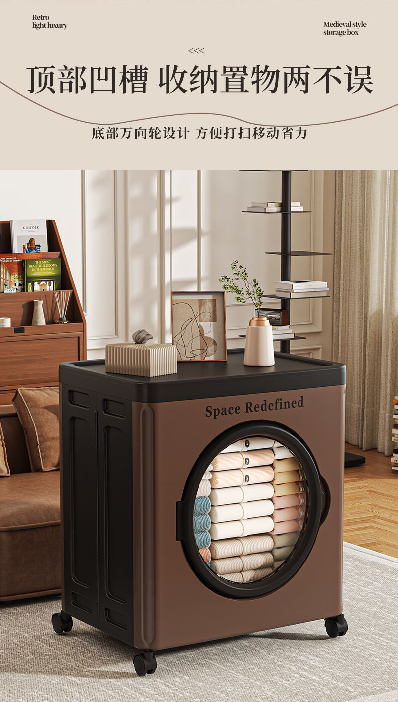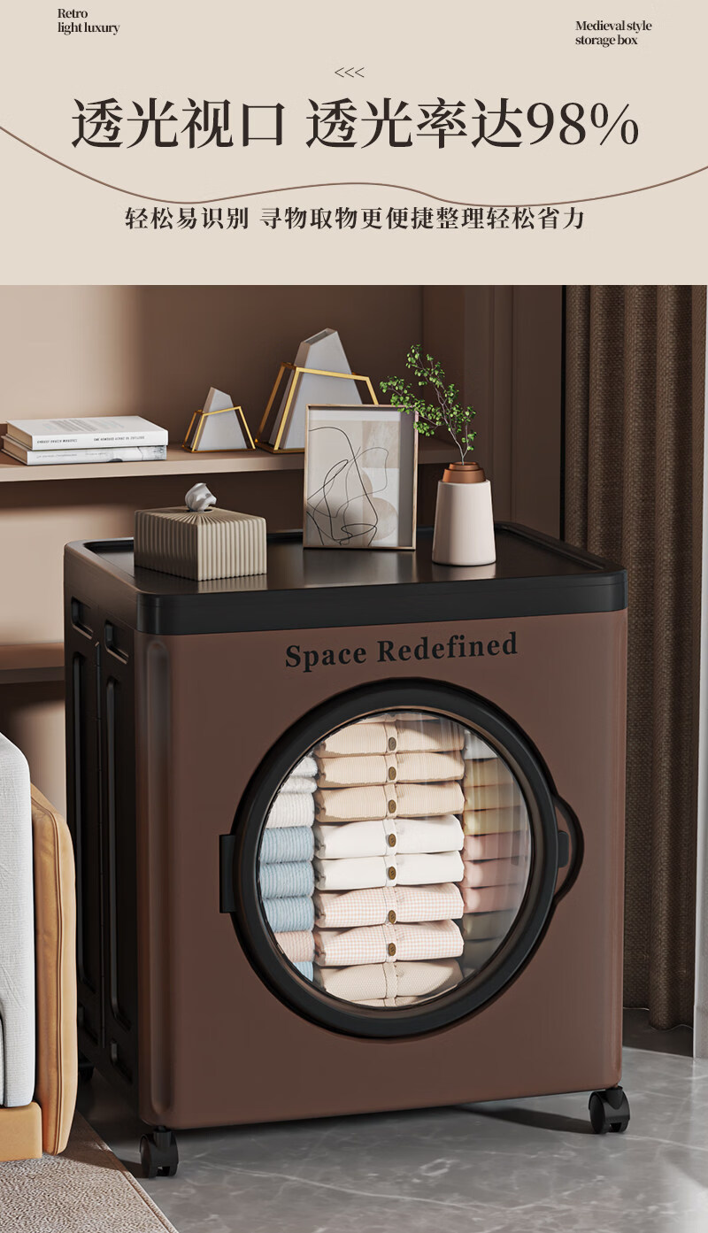 艾仕可(ASCOR)中古风收纳箱大容量家用储物箱卧室衣物客厅玩具零食可折叠翻盖箱 【顺丰包邮】中古色-大号-116L【可折叠】