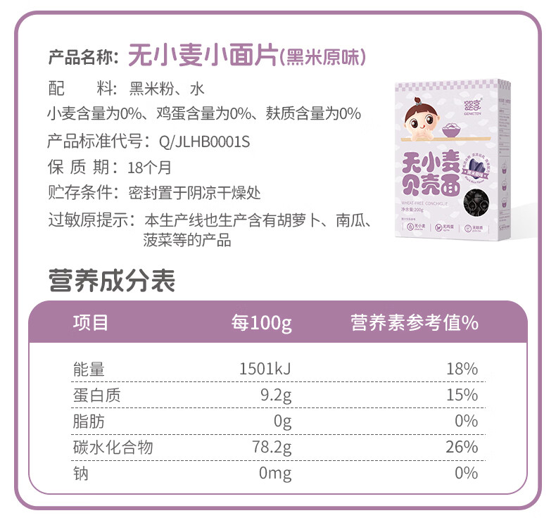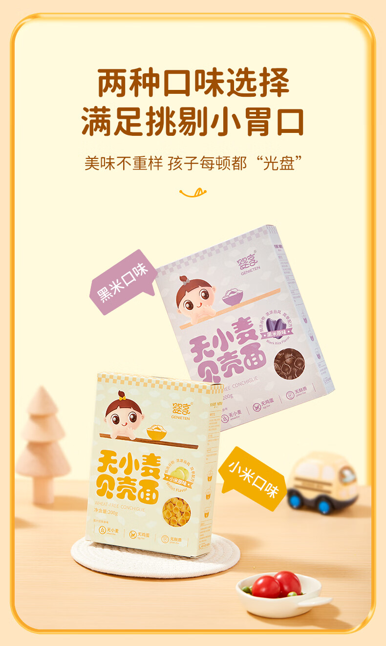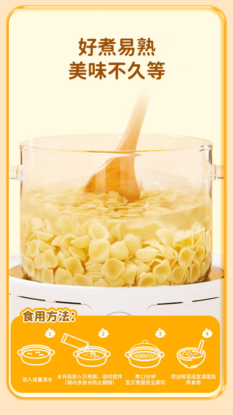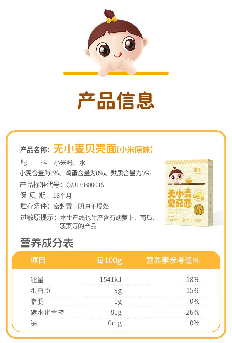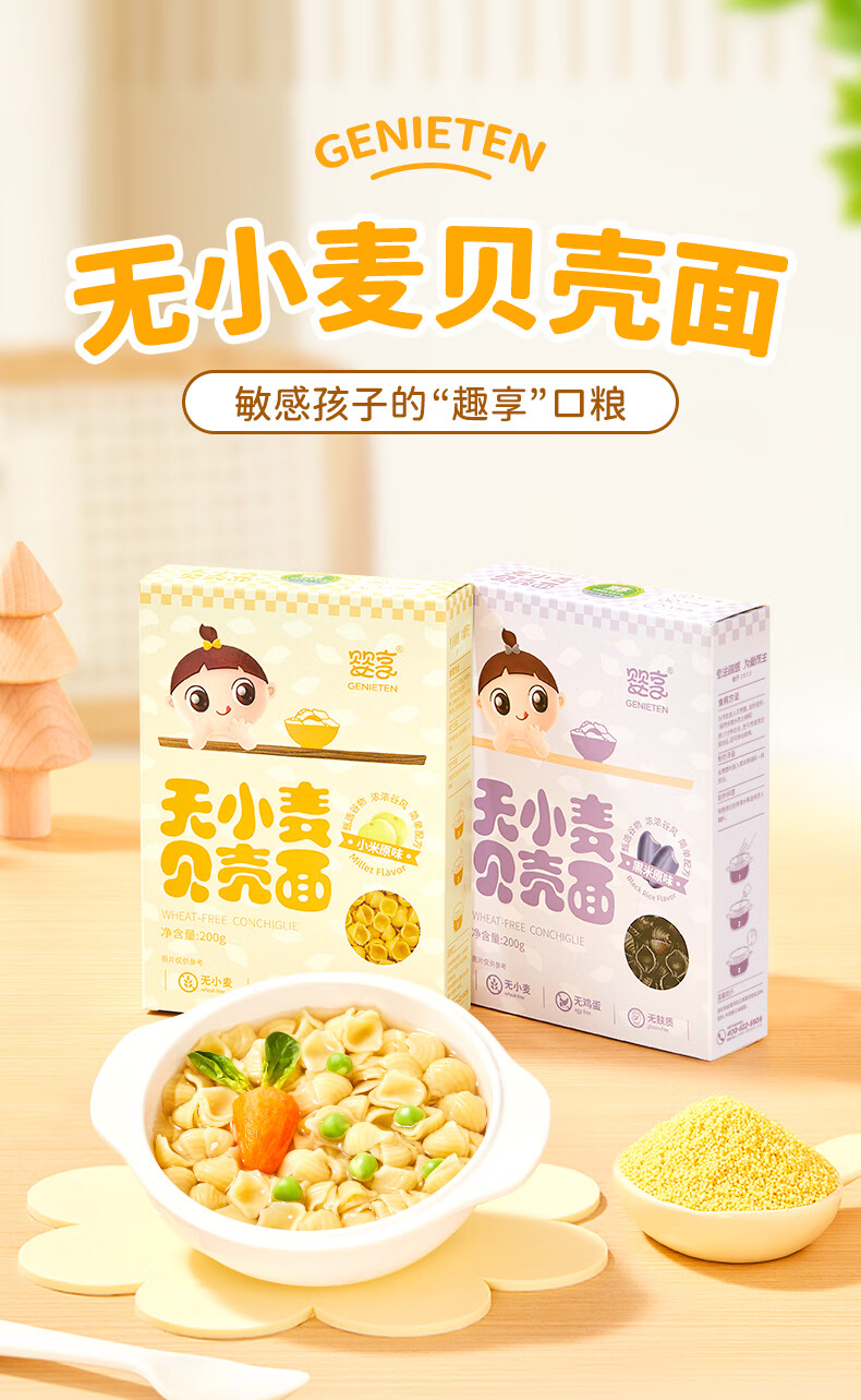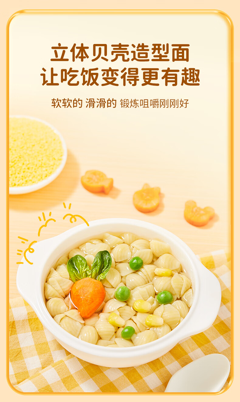 婴享无小麦无麸质儿童贝壳面造型面含婴儿宝宝辅食谱 小米原味200g