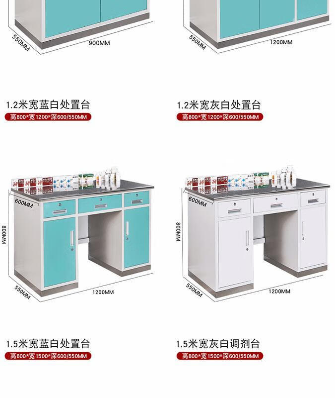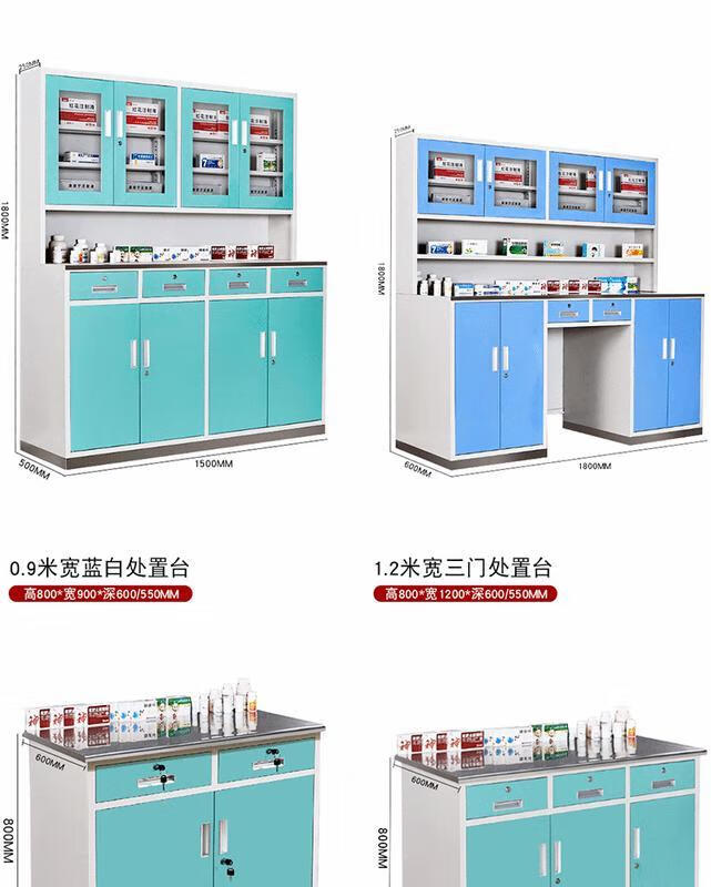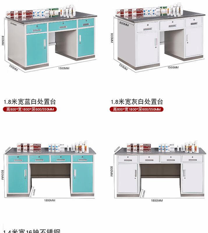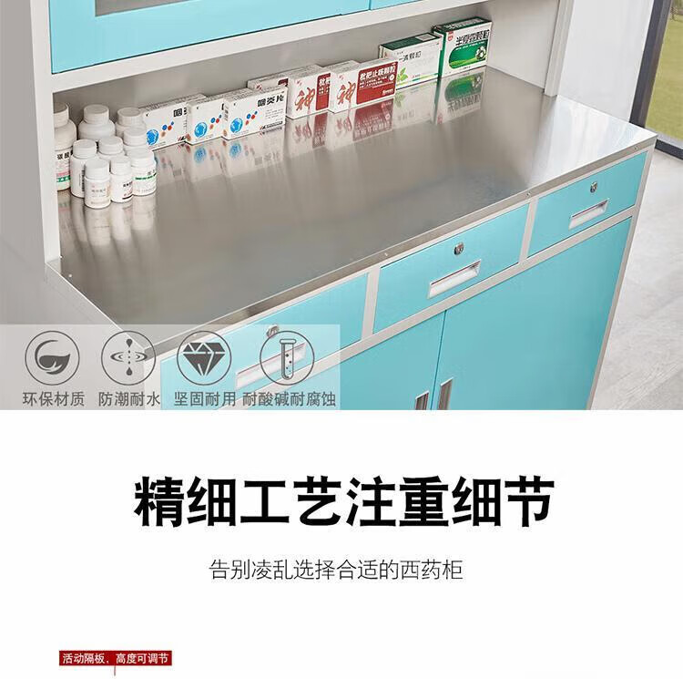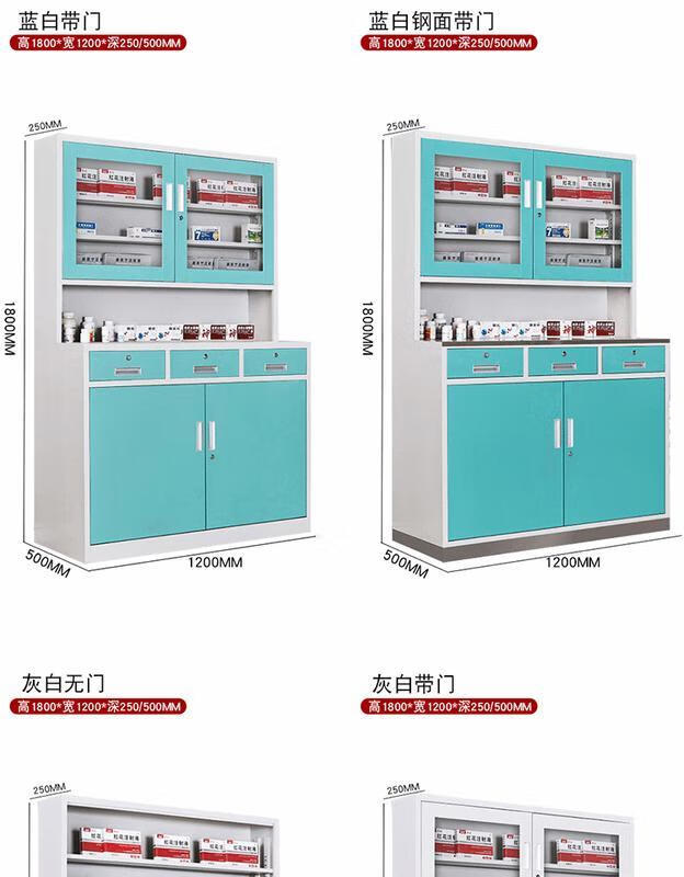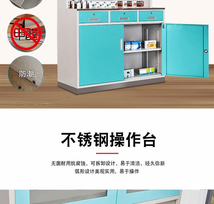 倘然之家新款不锈钢诊所中西药柜医用处置台调剂配药台药房西药柜医生办公 1.5宽蓝白钢面西药柜 整装
