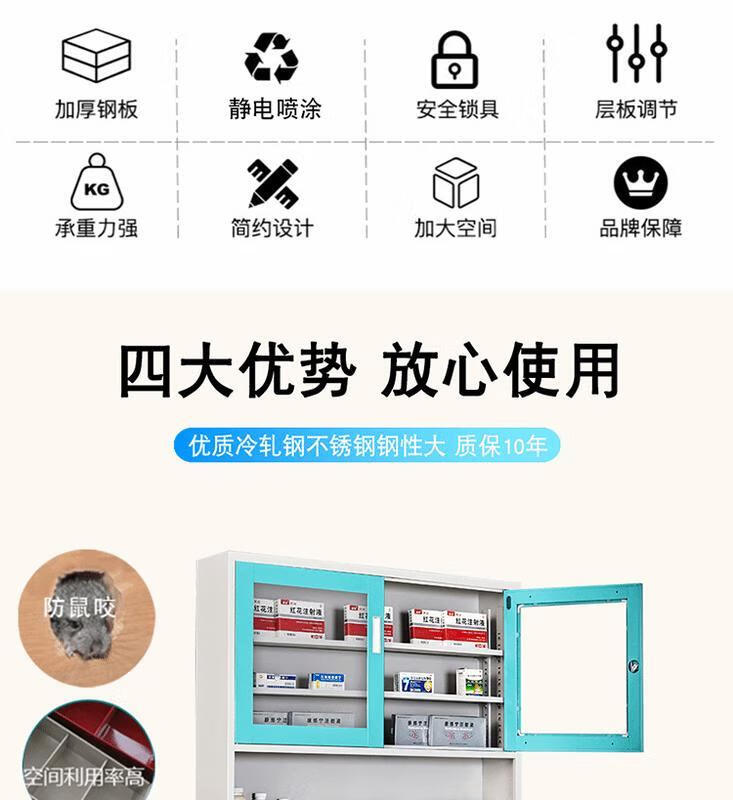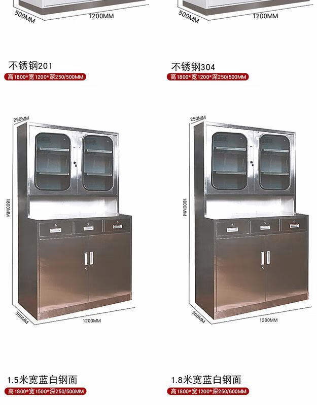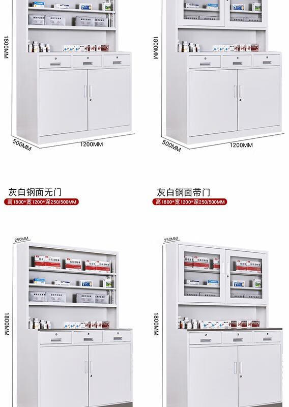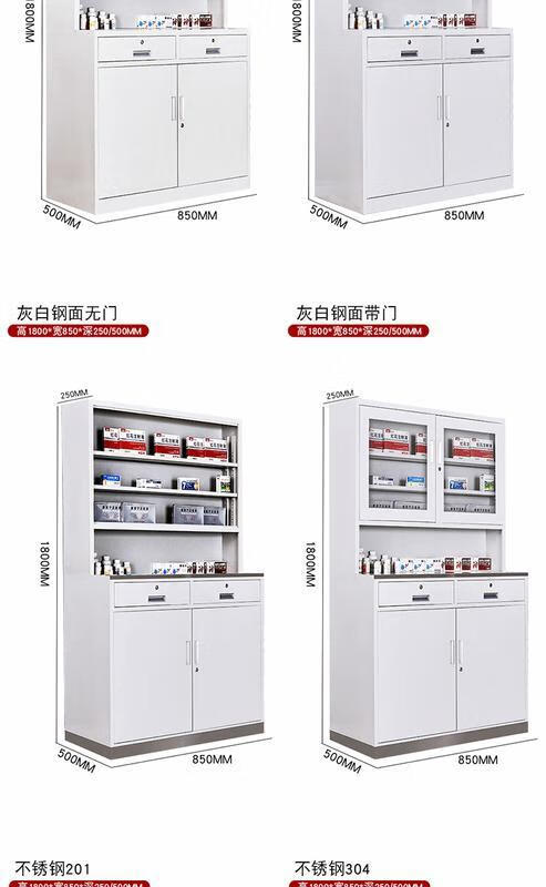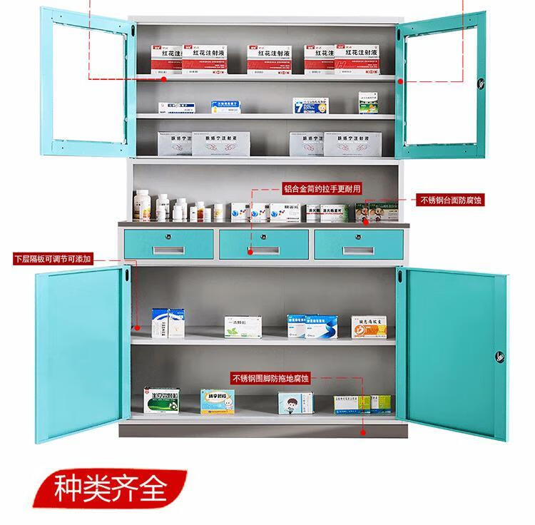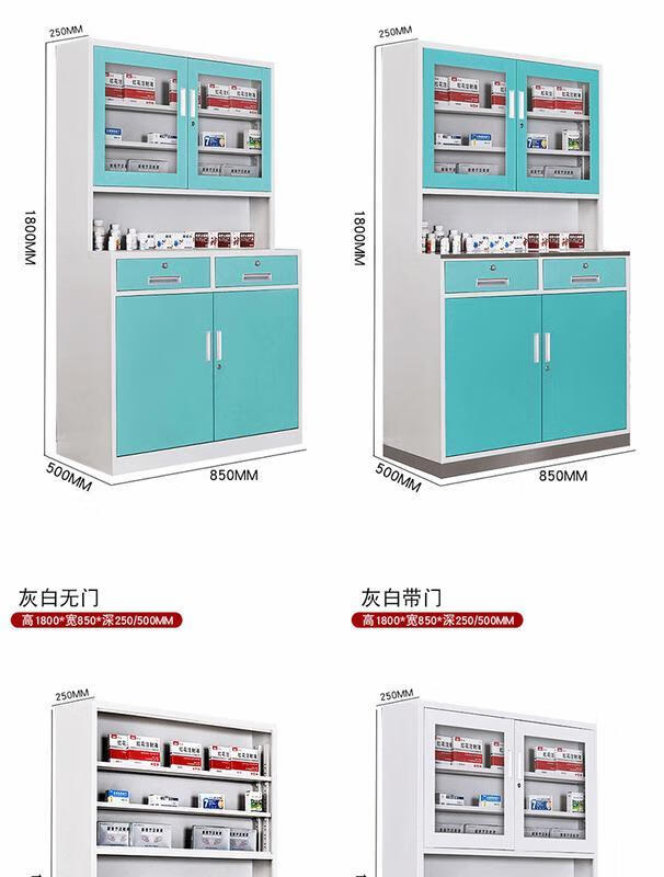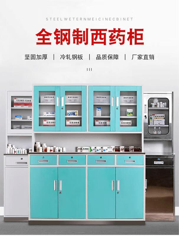 倘然之家新款不锈钢诊所中西药柜医用处置台调剂配药台药房西药柜医生办公 1.5宽蓝白钢面西药柜 整装