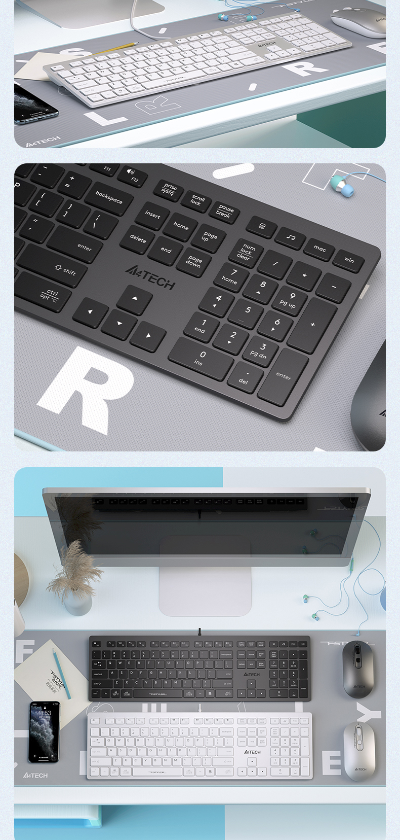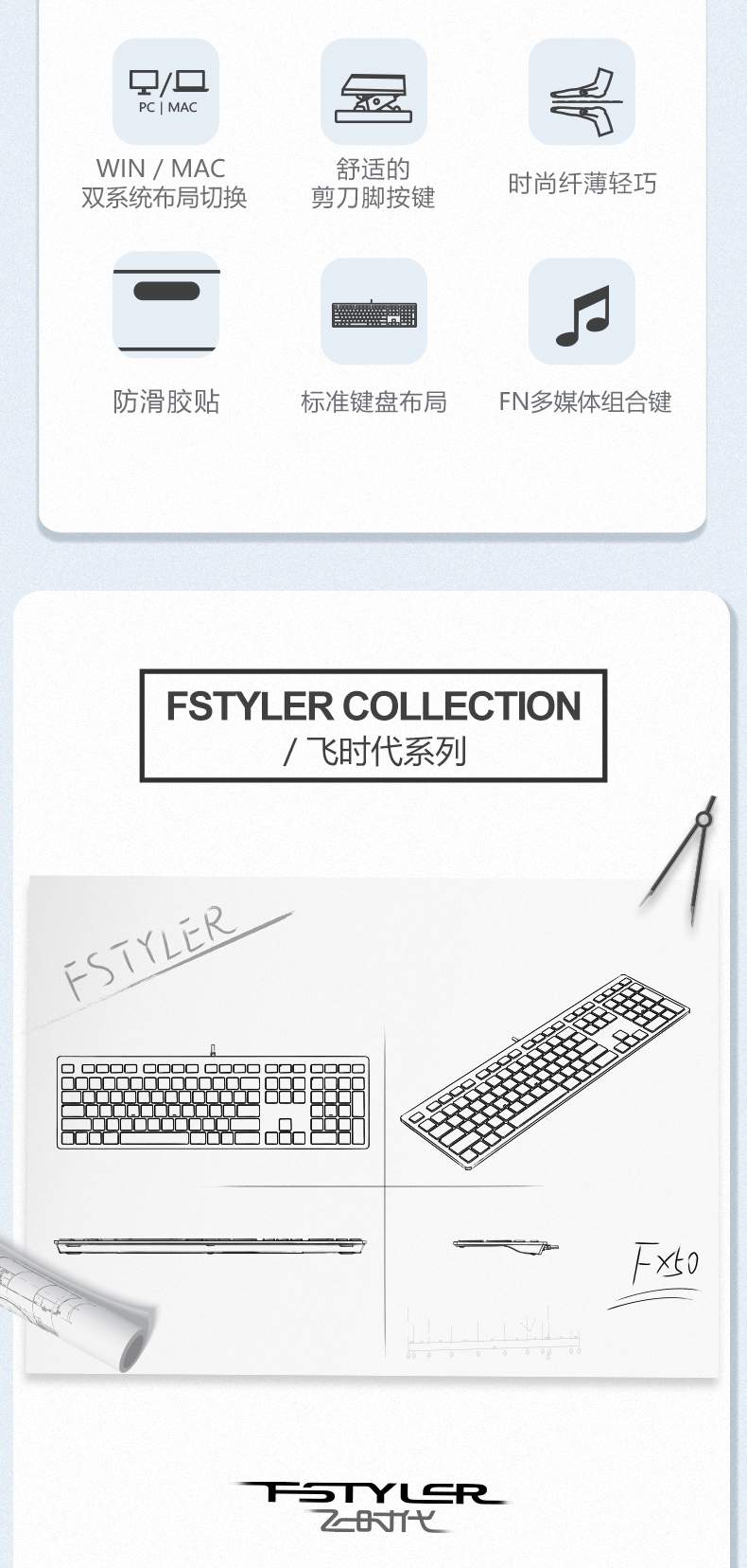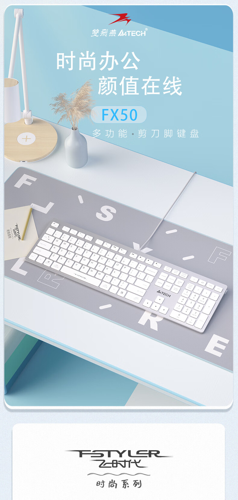 双飞燕(A4TECH)FX50 有线键盘剪刀脚轻音笔记本电脑外接台式家用办公打字专用飞时代薄膜键盘 白色