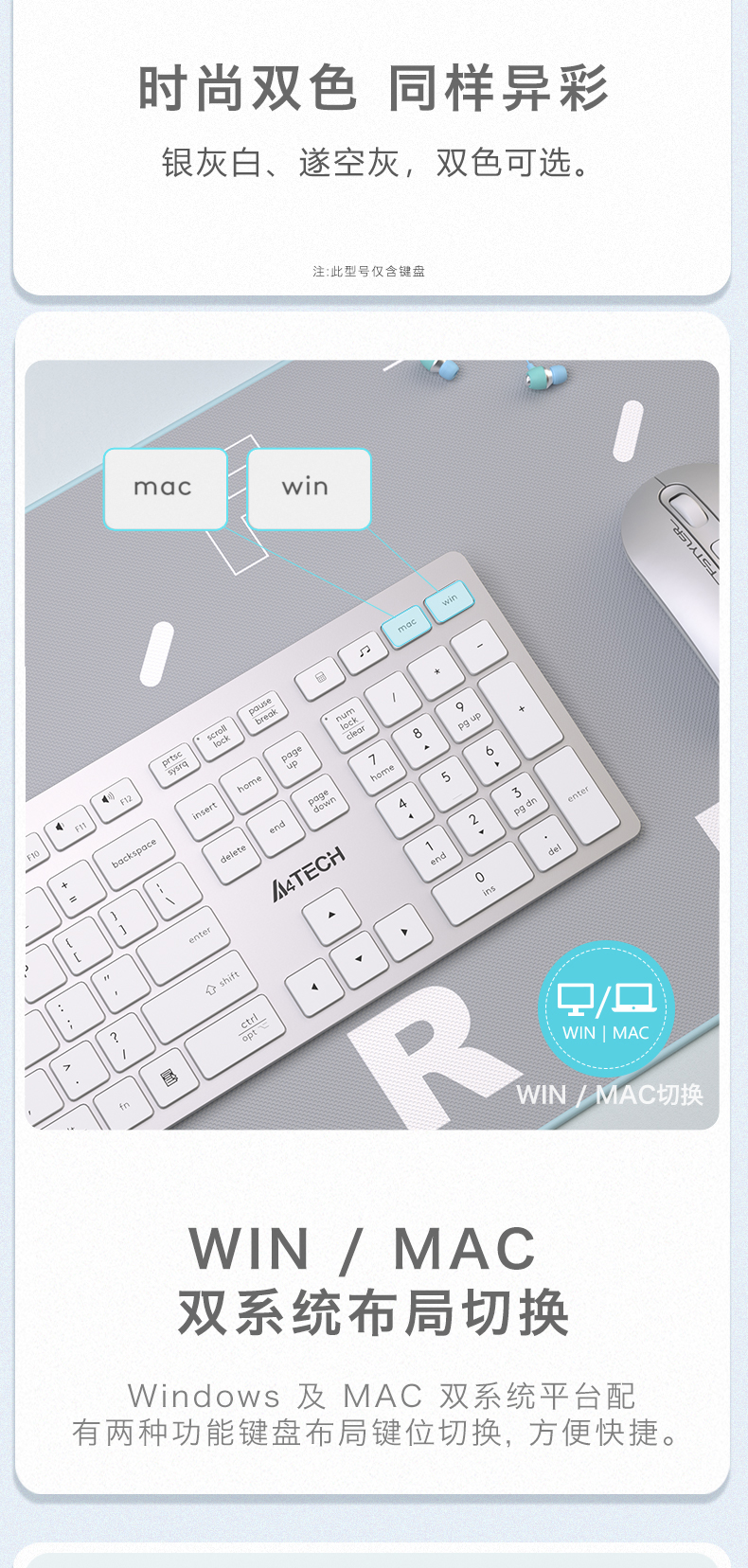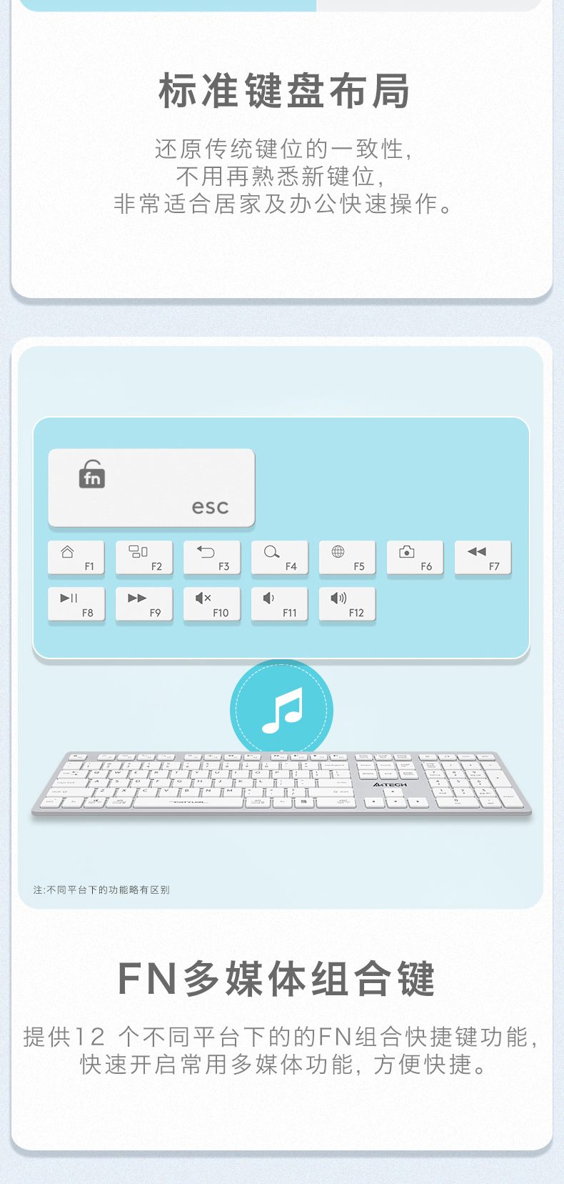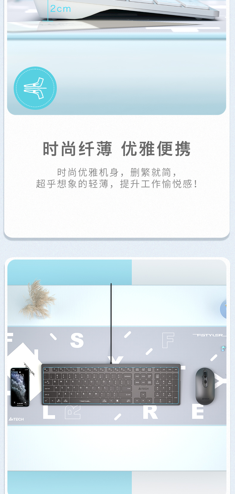双飞燕(A4TECH)FX50 有线键盘剪刀脚轻音笔记本电脑外接台式家用办公打字专用飞时代薄膜键盘 白色