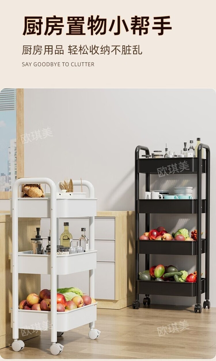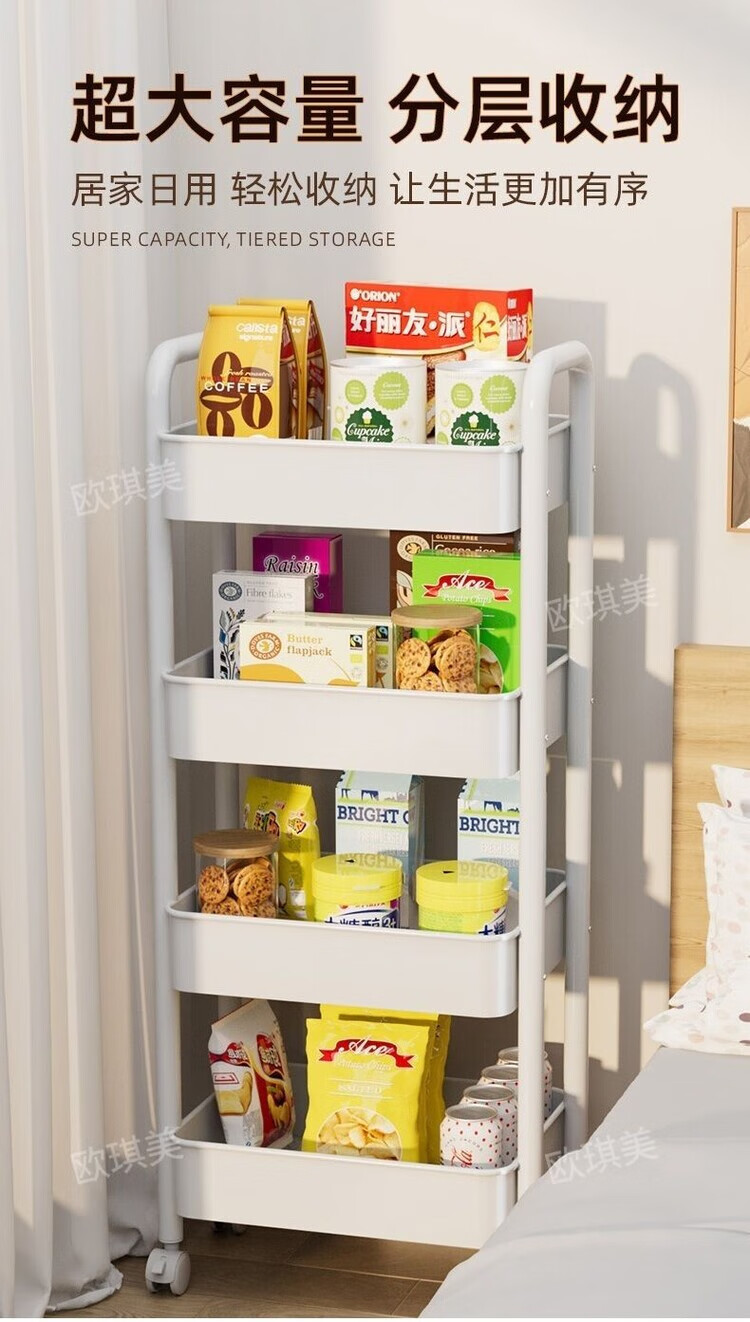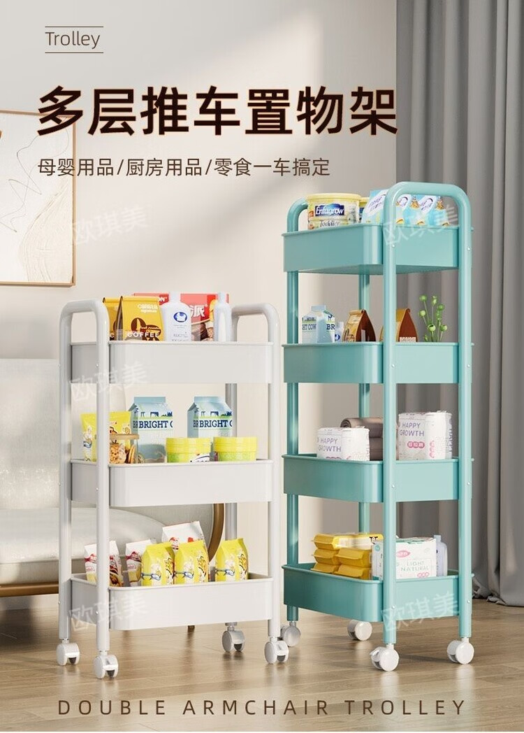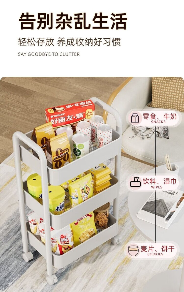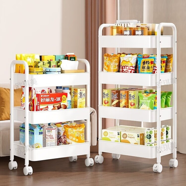 倘然之家推车置物架落地多层收纳架宿舍移动零食架厨房架子铁艺带轮储物架 清仓处理【活动仅剩99】手慢没 小置物3层白色30*20*60【筐高3CM】