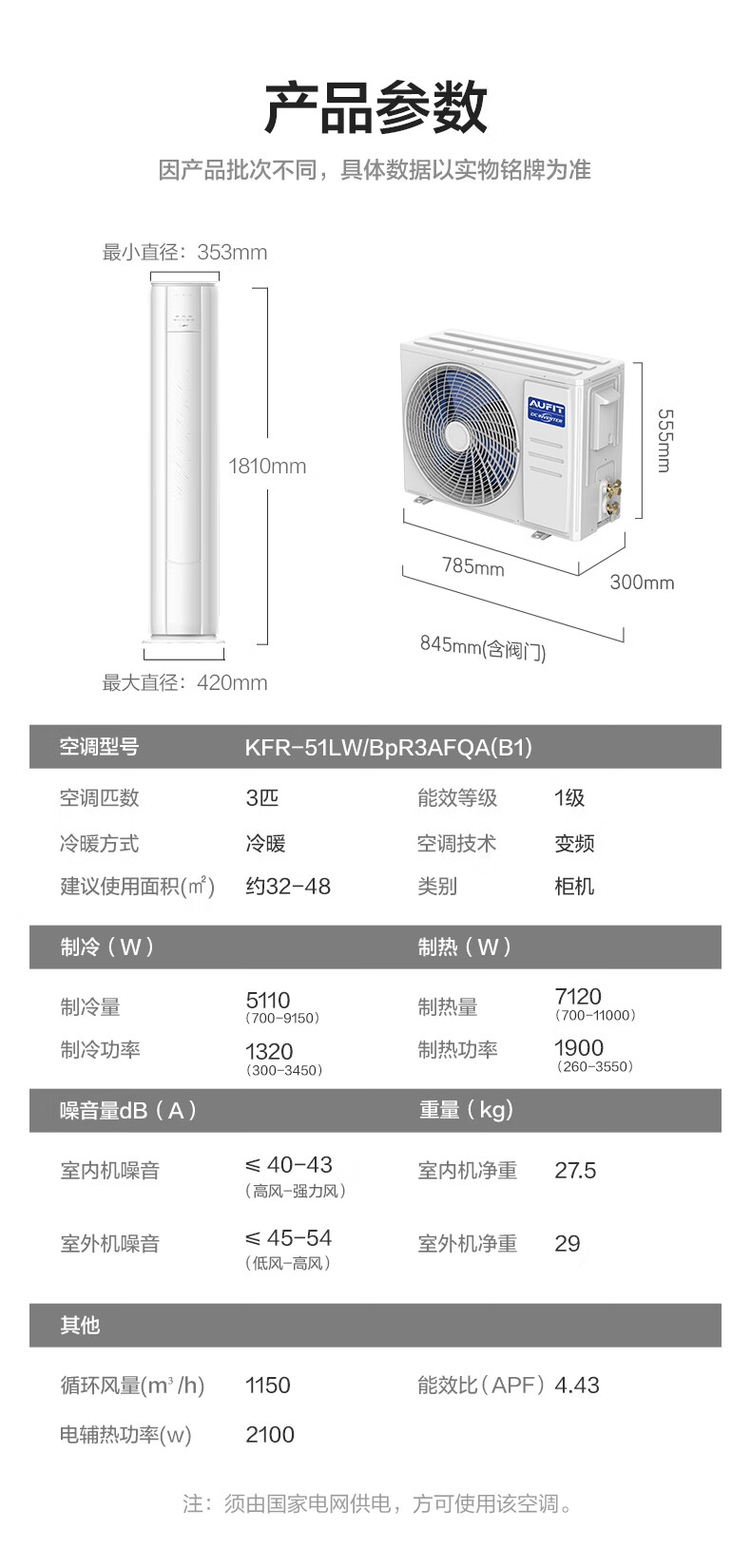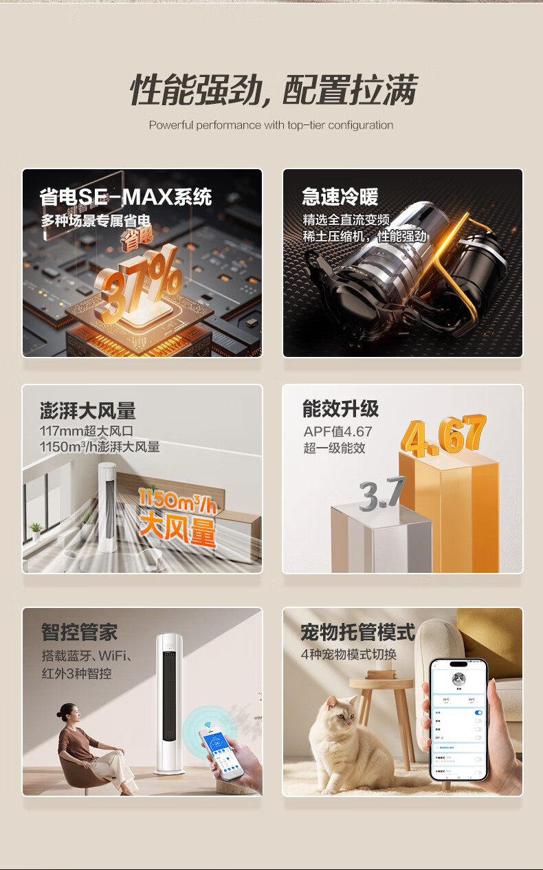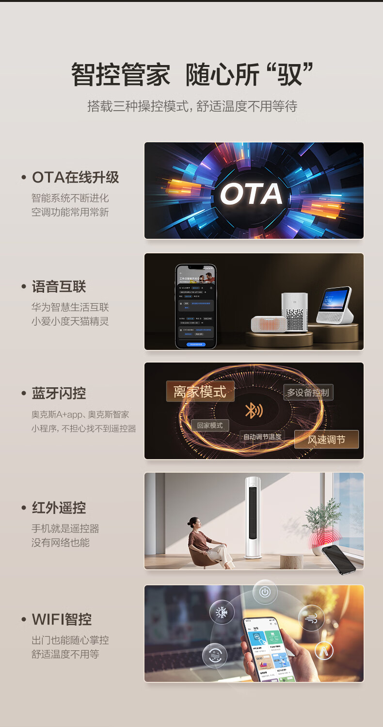 AUFIT空调AUX奥克斯出品大2匹柜机挂机家用新一级能效变频冷暖WiFi智控客厅大卧室立柜式以旧换新家电 2匹 一级能效 挂机新一级WiFi智控+双排铜管
