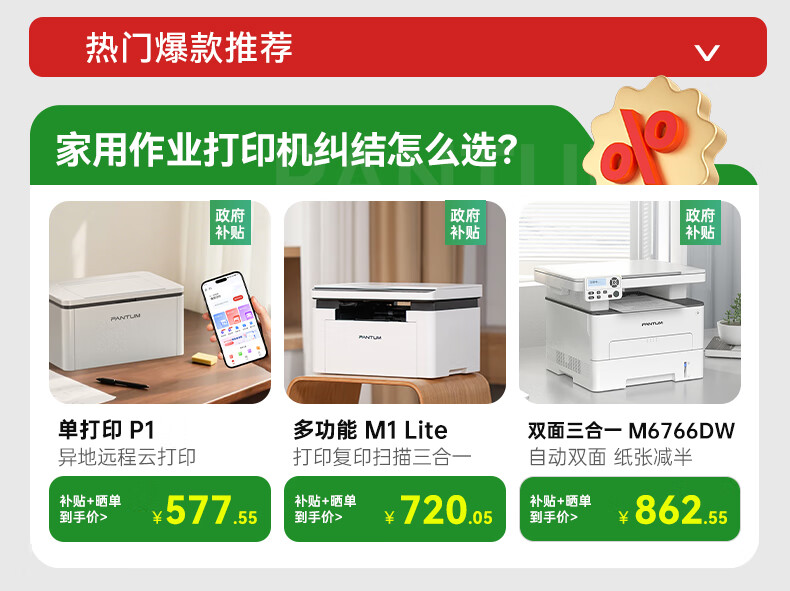 奔图(PANTUM)P2200W激光打印机家用办公 手机无线打印电脑打印 硒鼓简易可加粉低成本打印