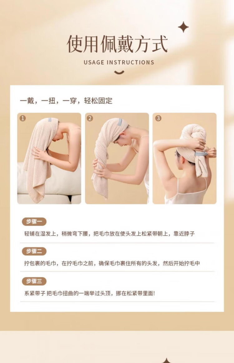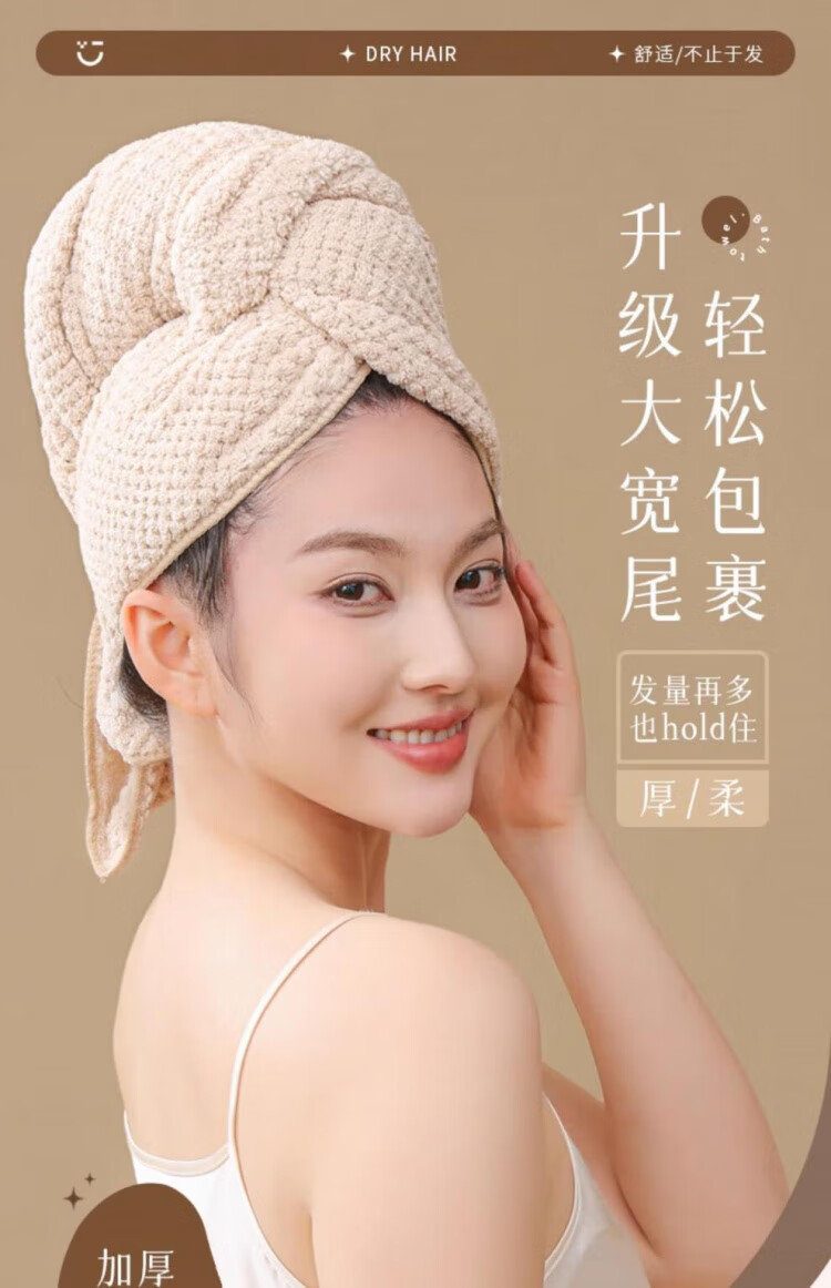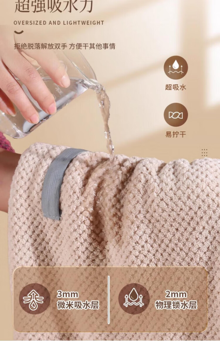 WCZ德国长发干发帽吸水速干2025新款洗头擦头包头发大毛浴巾 玉粉【1条装】超吸水速干发