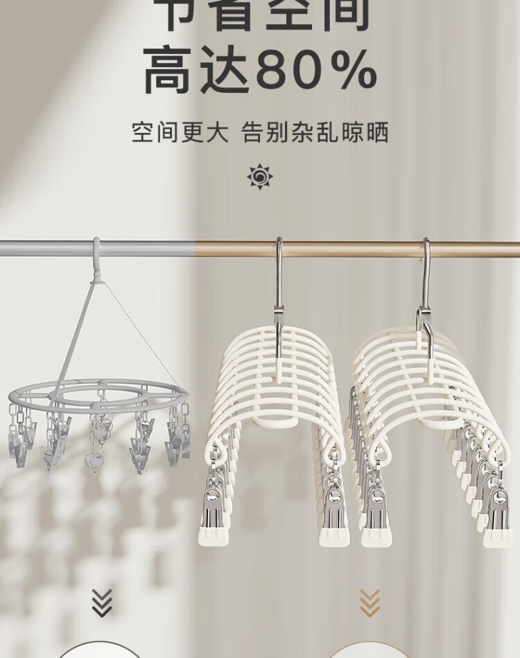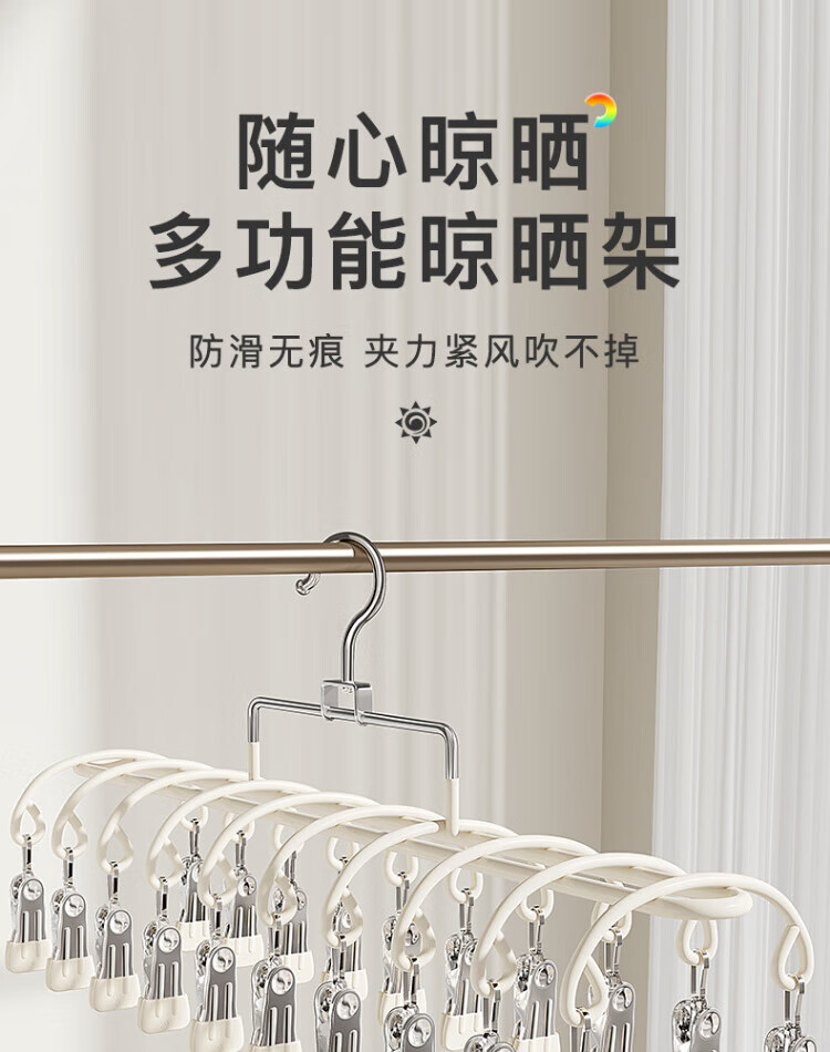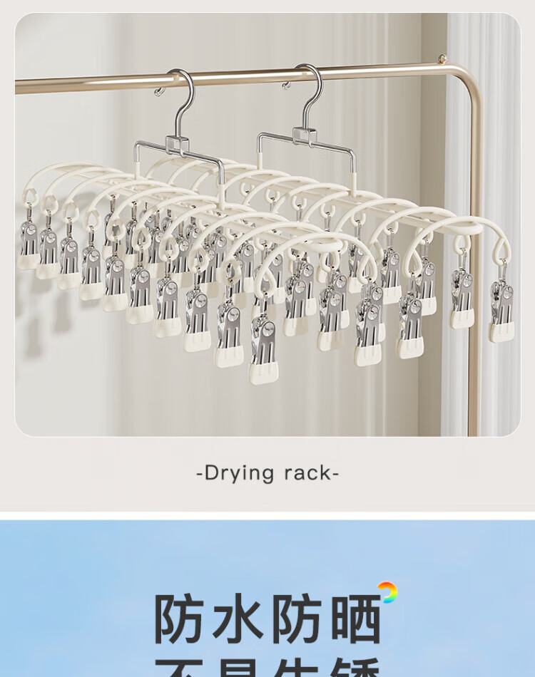 WCZ德国多夹子袜子晾晒架不锈钢家用阳台晾内衣内裤神器防风衣架婴儿 淡雅蓝-2个装(20夹)防风不掉生锈