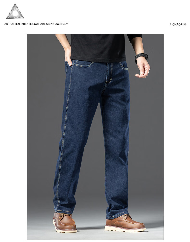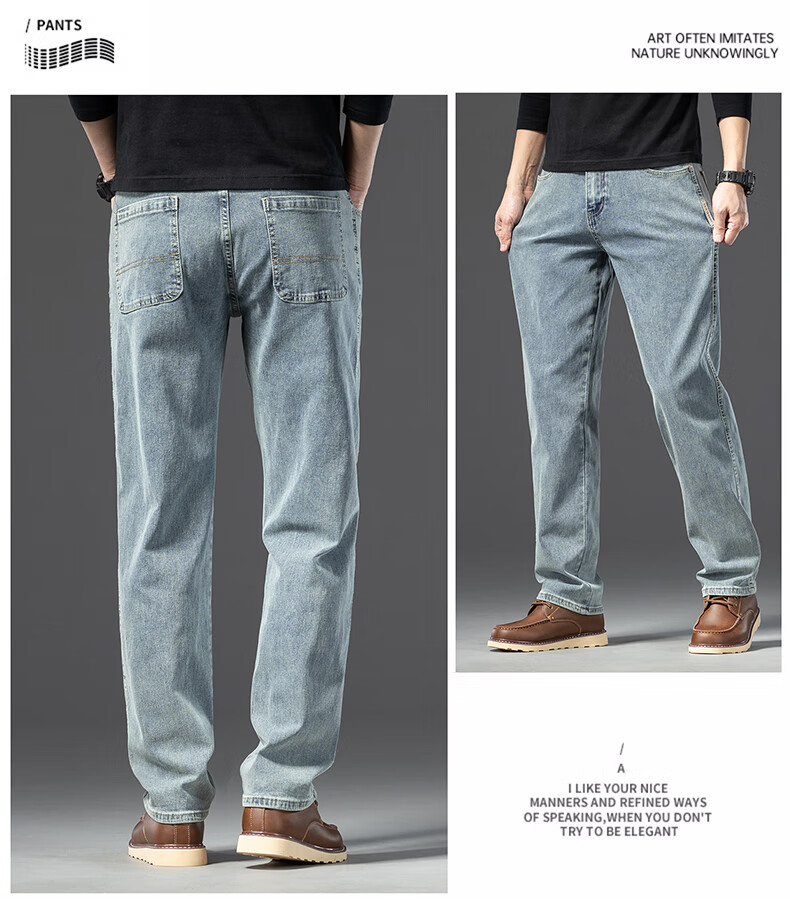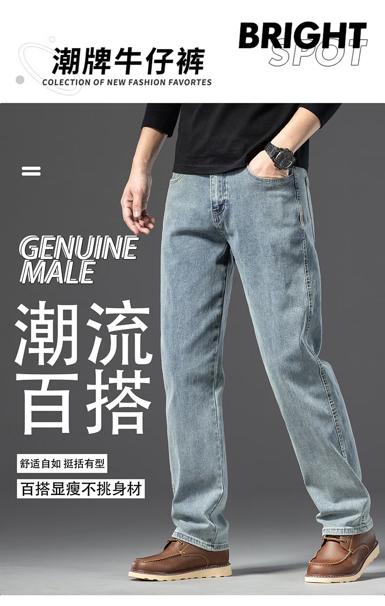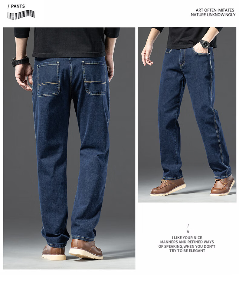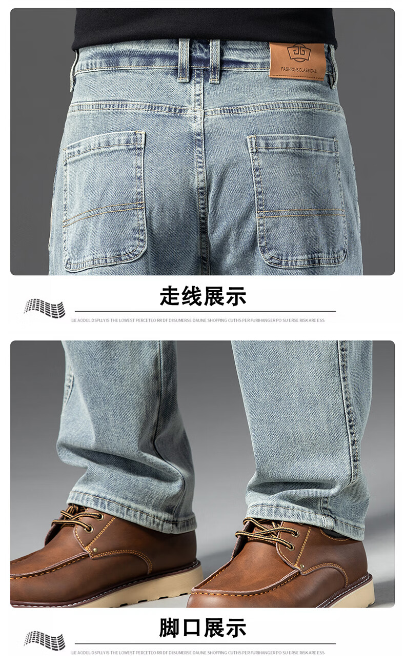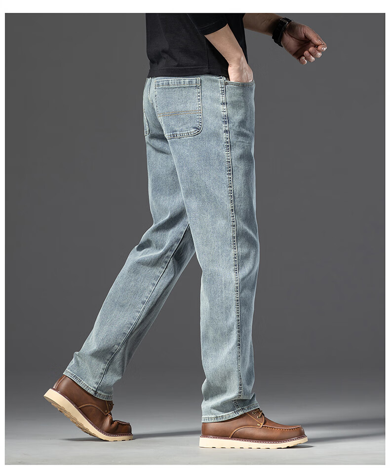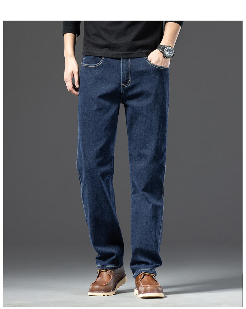 罗蒙【棉弹显瘦】牛仔裤男冬商务休闲宽松潮流直筒裤子复古蓝33