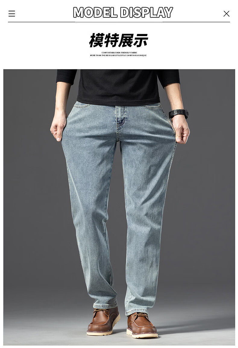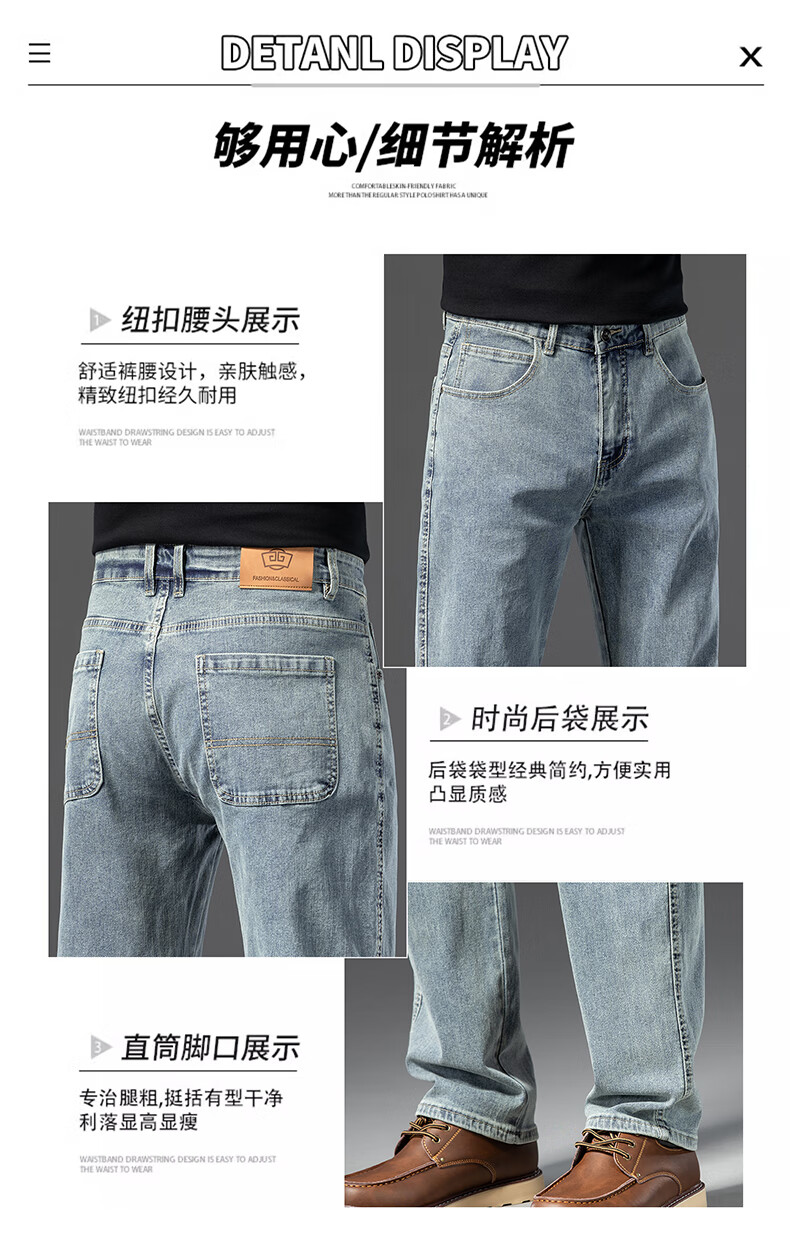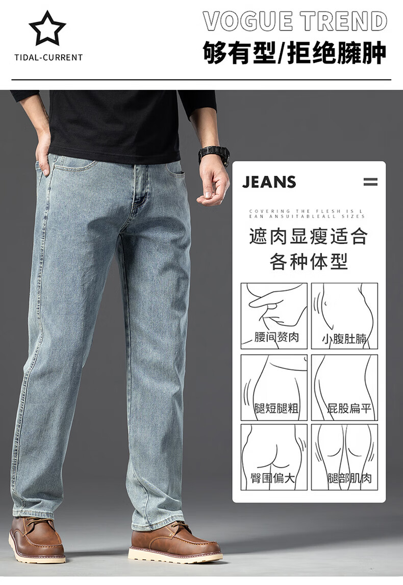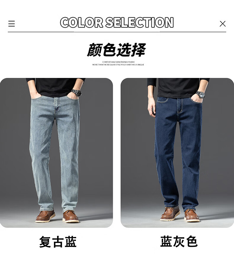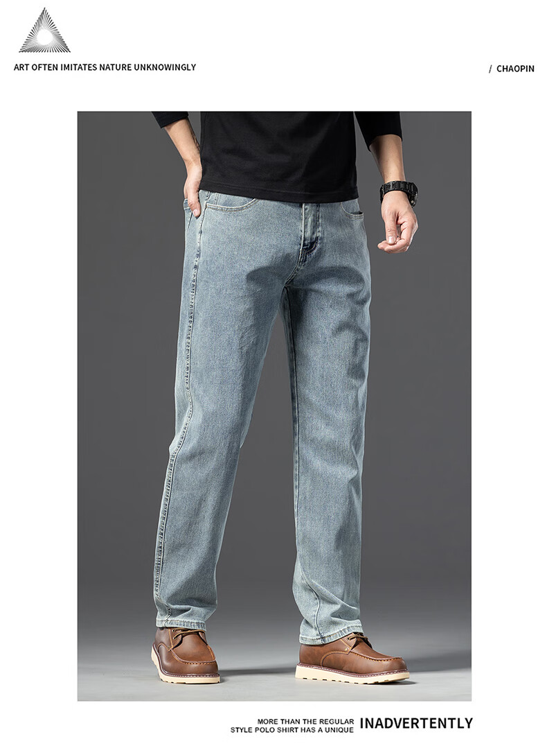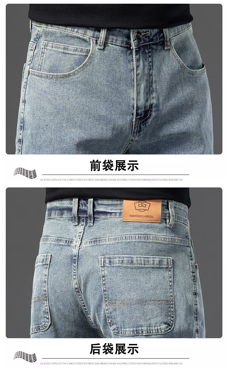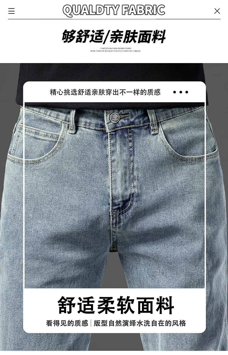 罗蒙【棉弹显瘦】牛仔裤男冬商务休闲宽松潮流直筒裤子复古蓝33